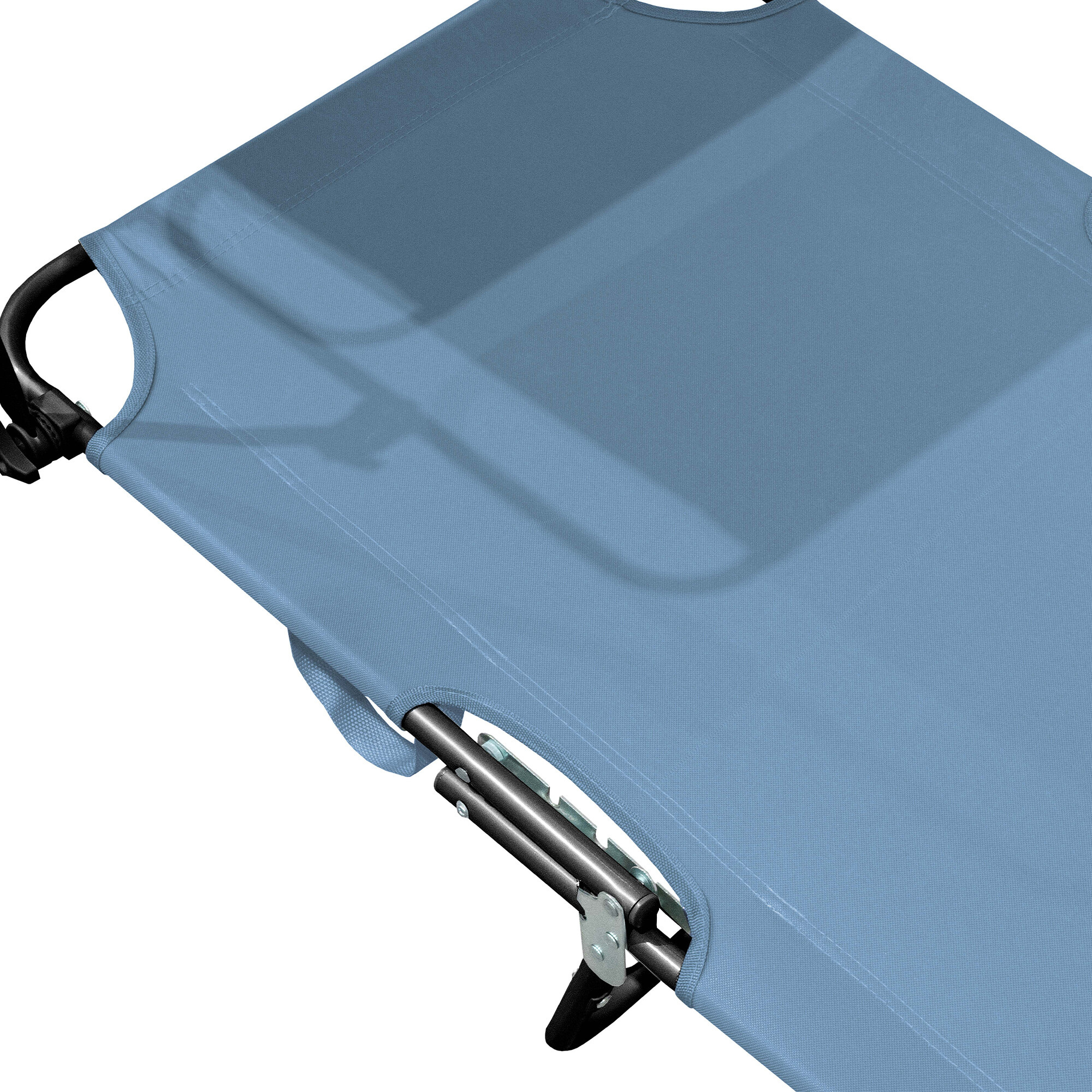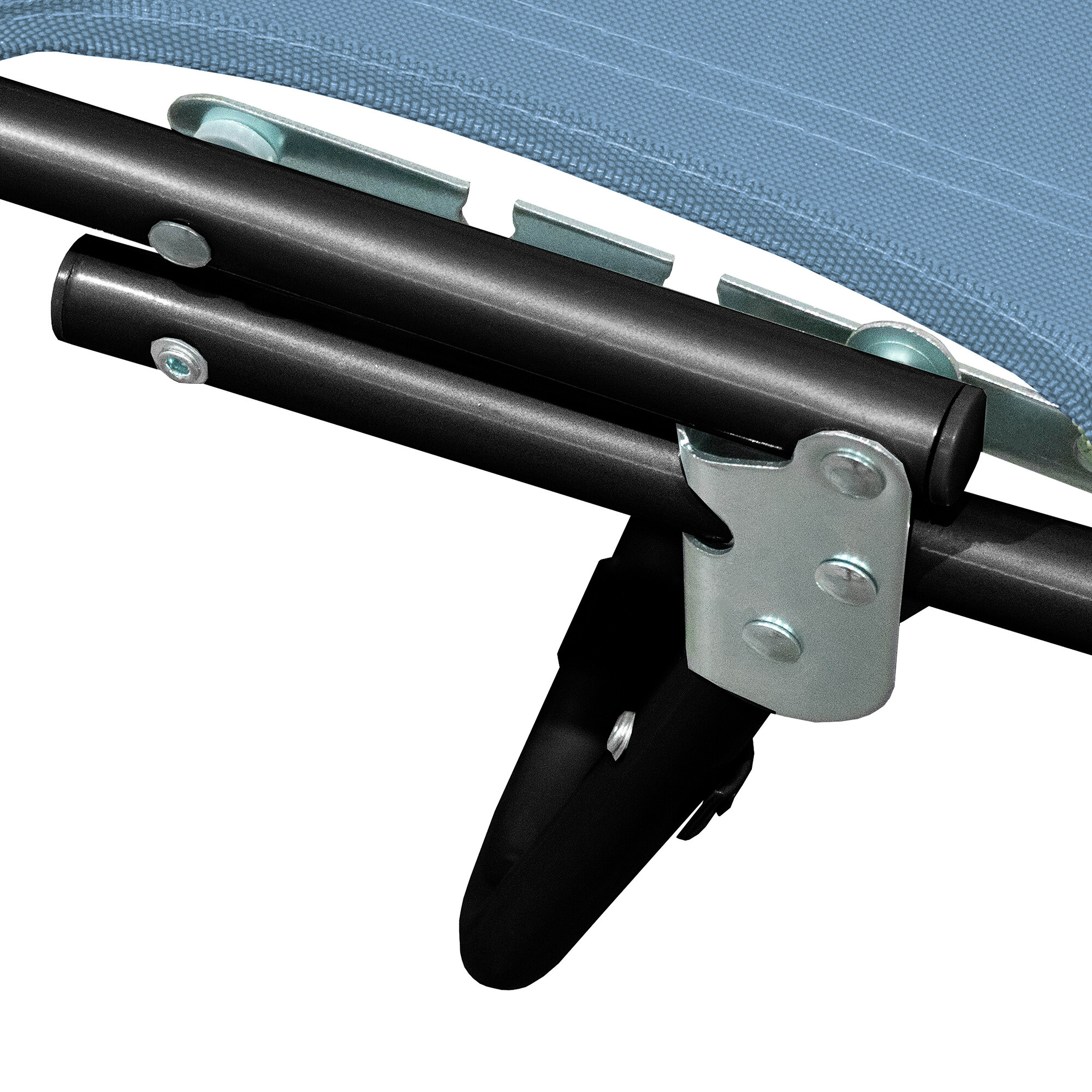 Construcția pliabilă a șezlongului permite o desfășurare și pliere ușoară. Țevile de oțel cu un diametru de 18 mm asigură o rezistență ridicată, durabilitate, stabilitate și o capacitate de încărcare de până la 120 kg.