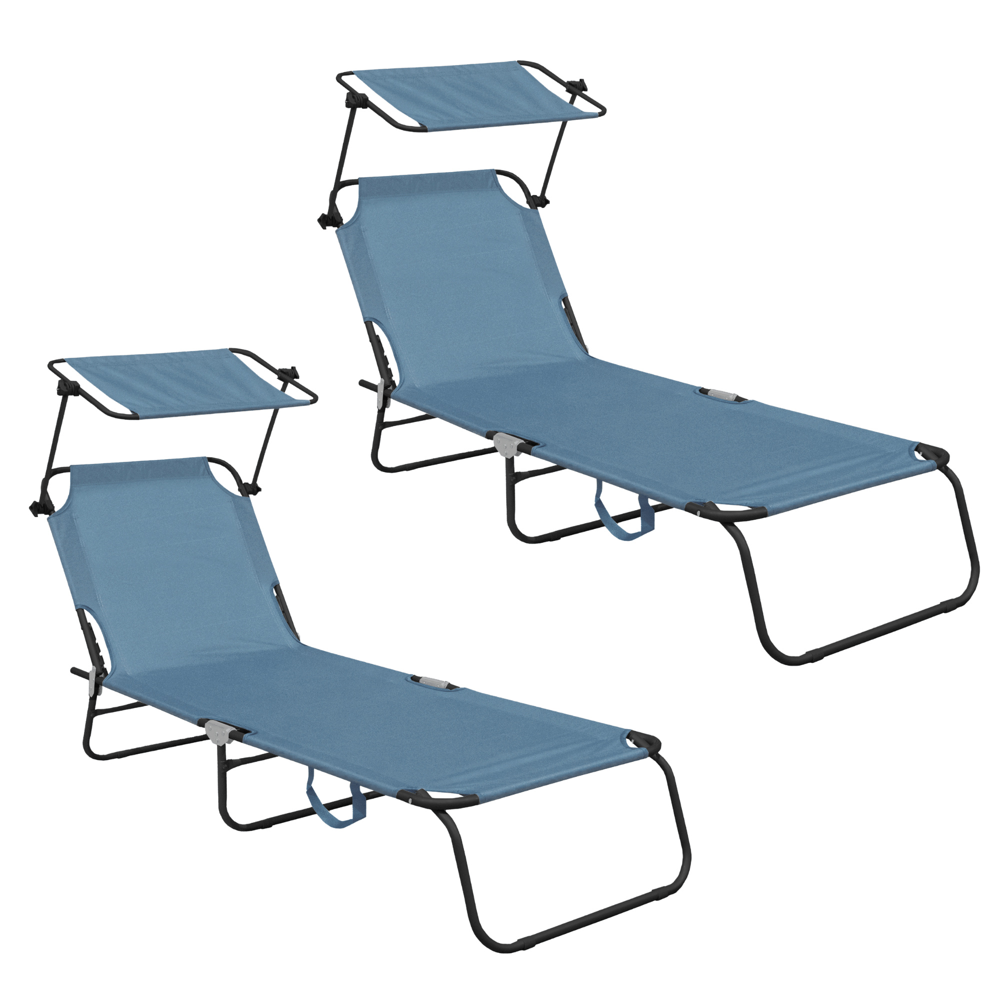 Aga 2x Șezlong de grădină reglabil cu acoperiș Albastru deschis
