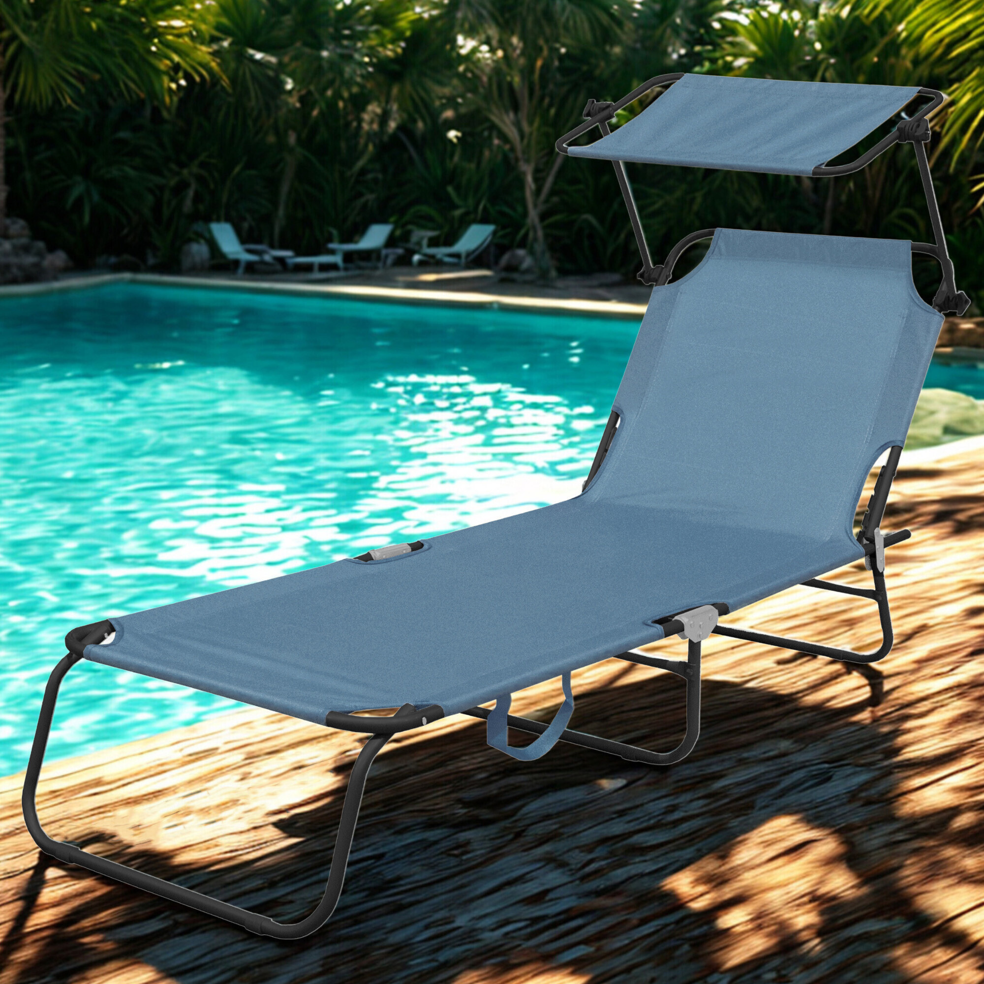 Șezlong de grădină pliabil cu structură din oțel întărit, cu un design modern, potrivit pentru grădini, camping sau plaje.
