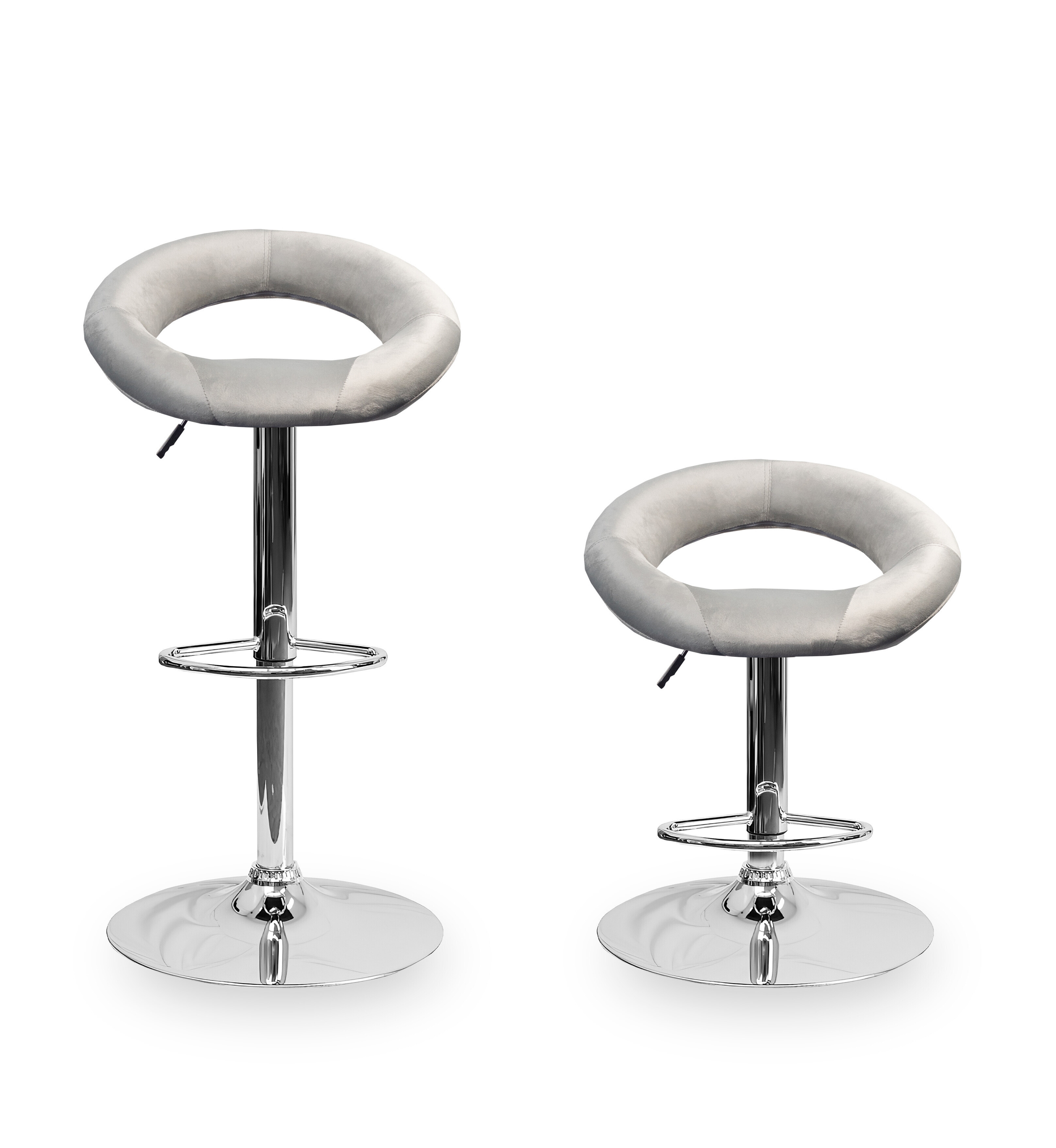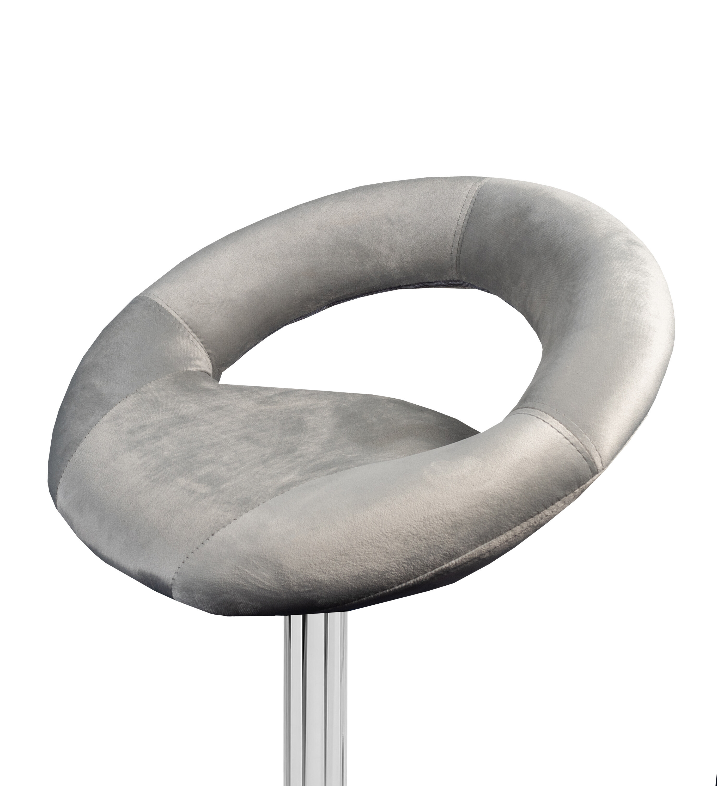 Scaunul se remarcă prin formele sale circulare, șezutul circular fiind conectat cu spătarul circular.Suprafața părții de șezut a scaunului de bar este din catifea.