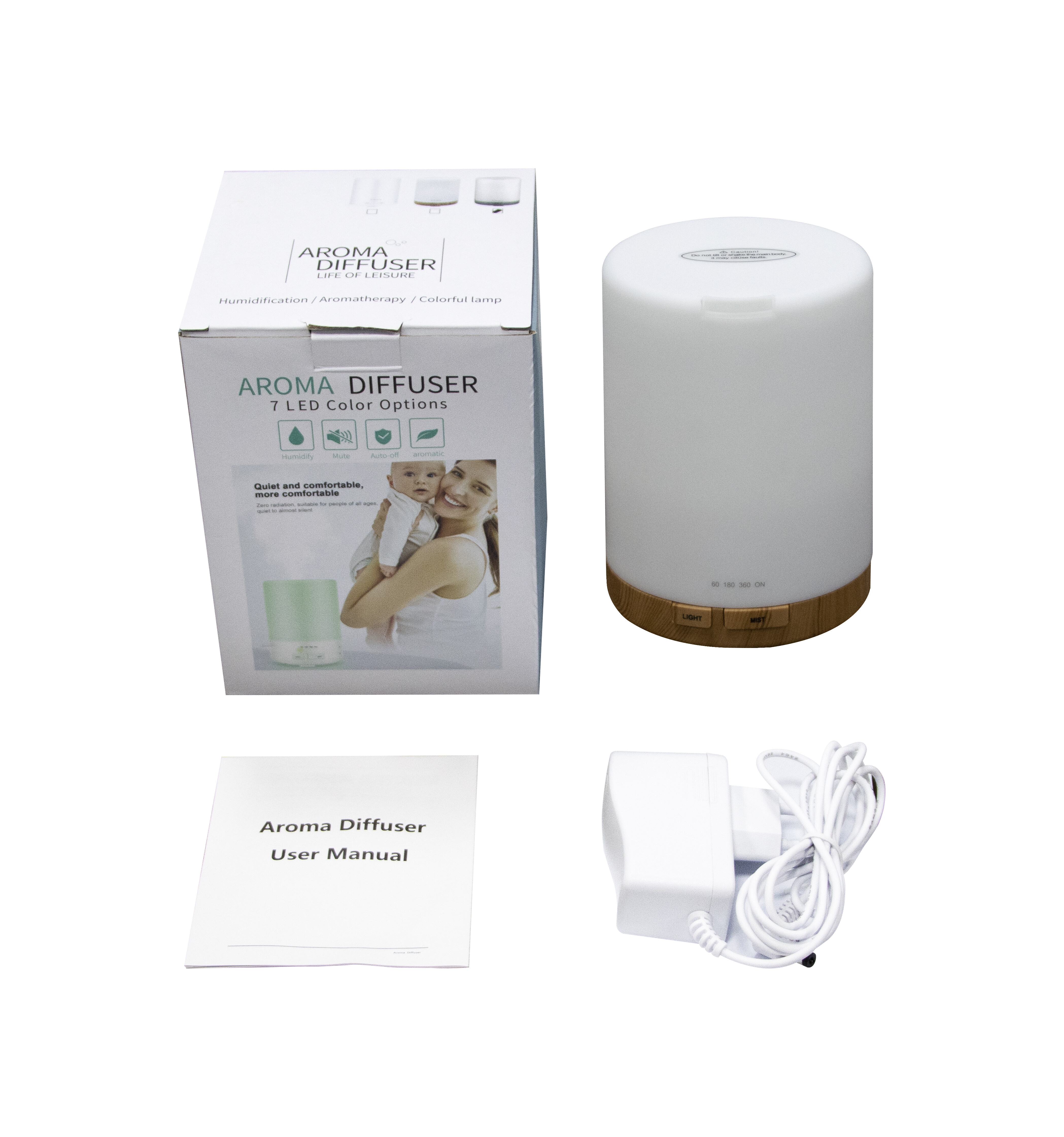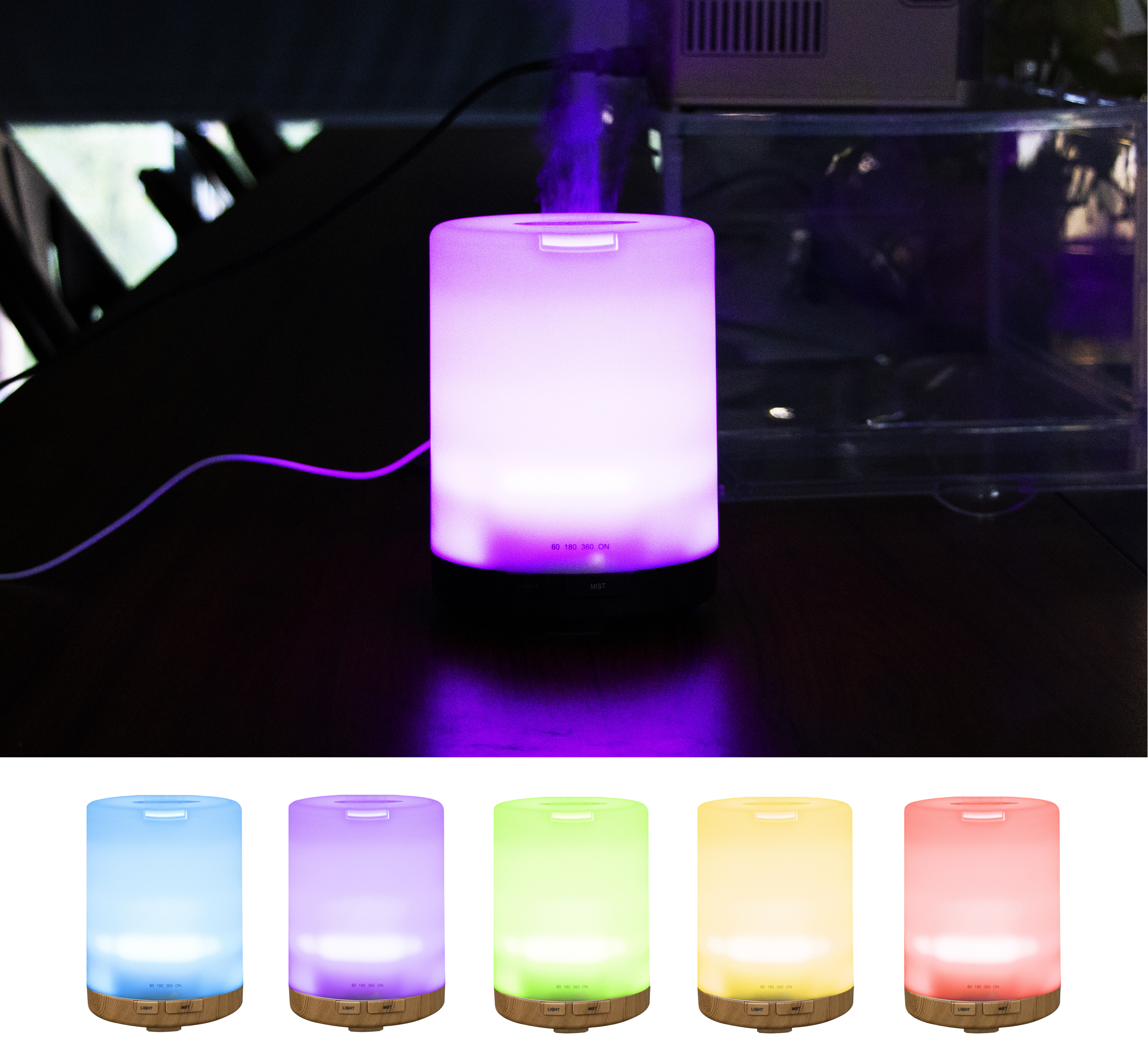 Difuzorul este completat cu iluminare LED colorată, care oferă până la șapte culori diferite.