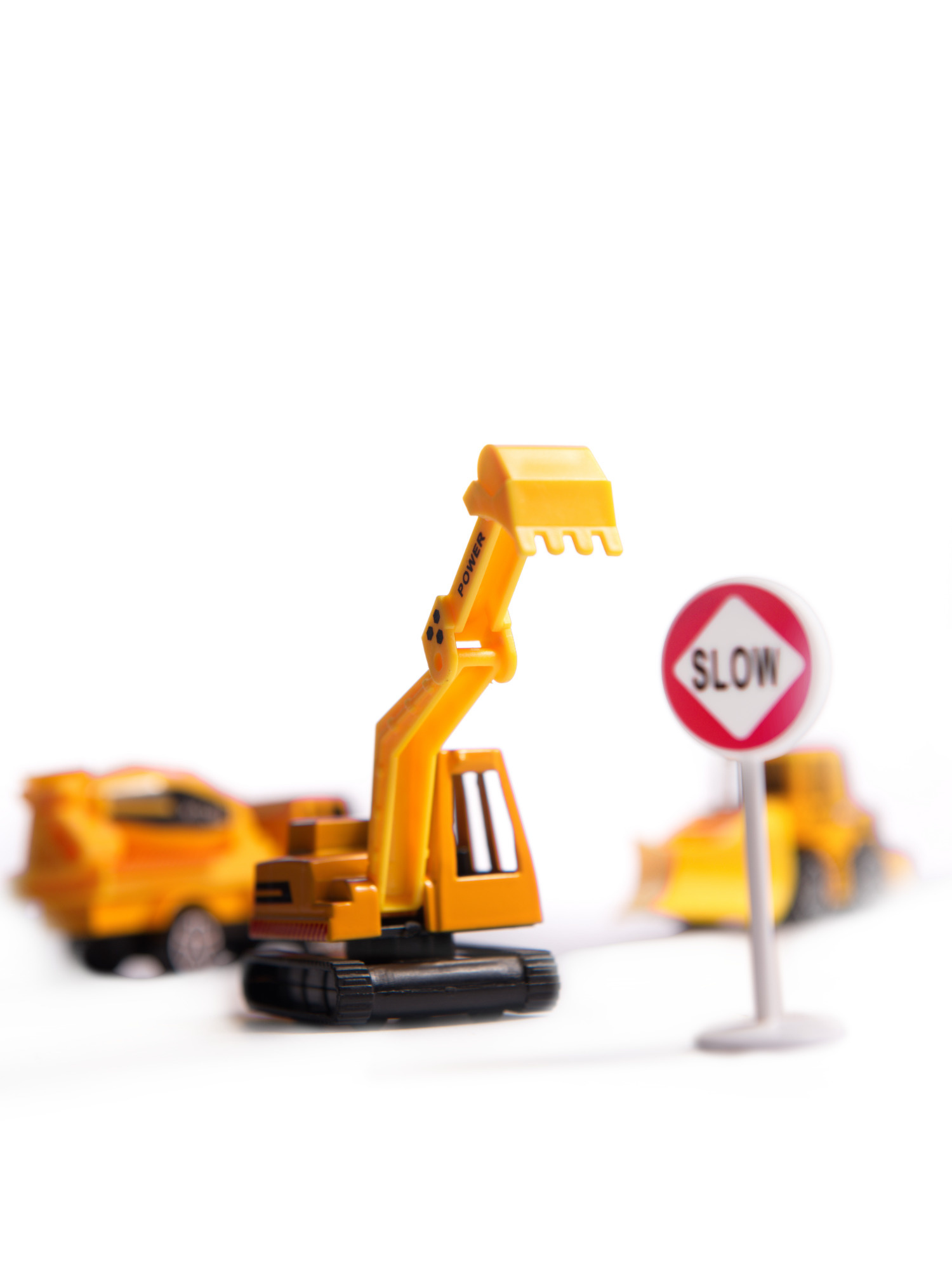 - 3 utilaje de construcții de culoare galbenă