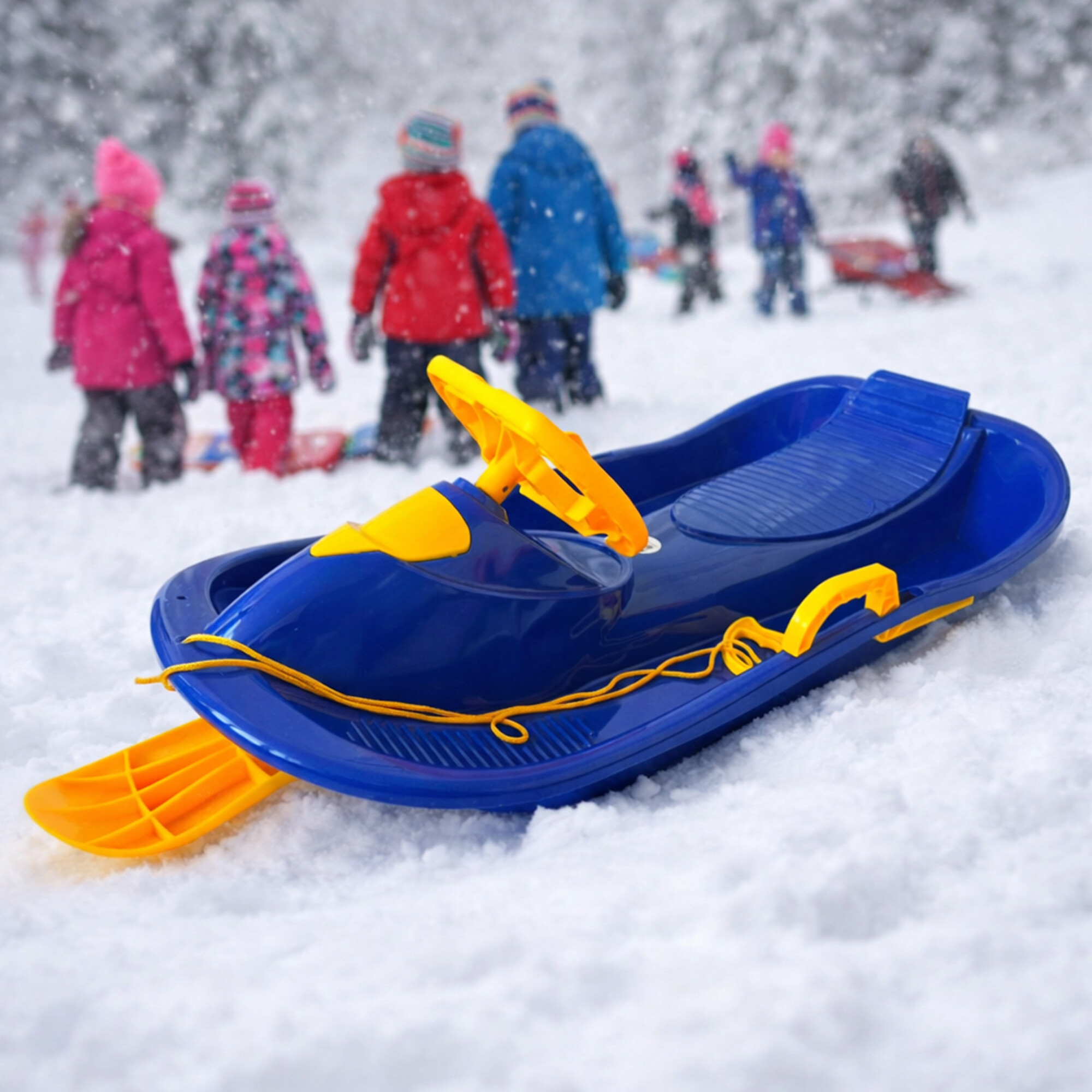 Manetele de frânare vă permit să opriți rapid și ușor săniile, astfel încât să nu trebuie să depuneți atât de mult efort în cazul unei opriri imediate. Construcția săniilor este realizată din plastic solid și durabil, asigurând o alunecare perfectă pe orice tip de zăpadă.
