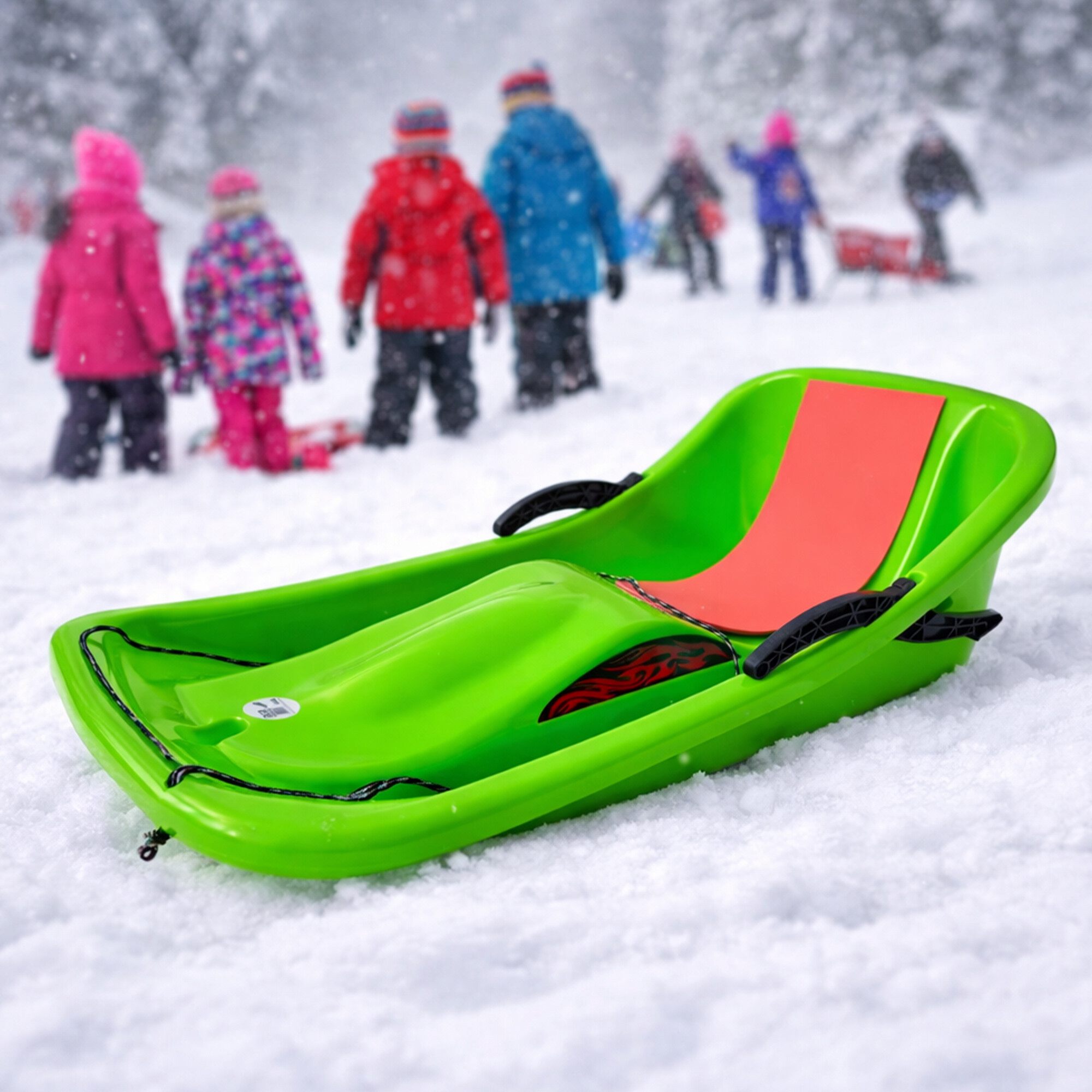 Săniuțe clasice pentru copii într-un design modern, fără margini ascuțite, cu două frâne independente.