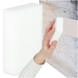 Curăță murdăria rezistentă fără a folosi detergenți, este suficient să-l umeziți cu puțină apă. Se descurcă cu petele de pe dulapuri, urmele de pix și chiar și cu petele de pe tapițerie.