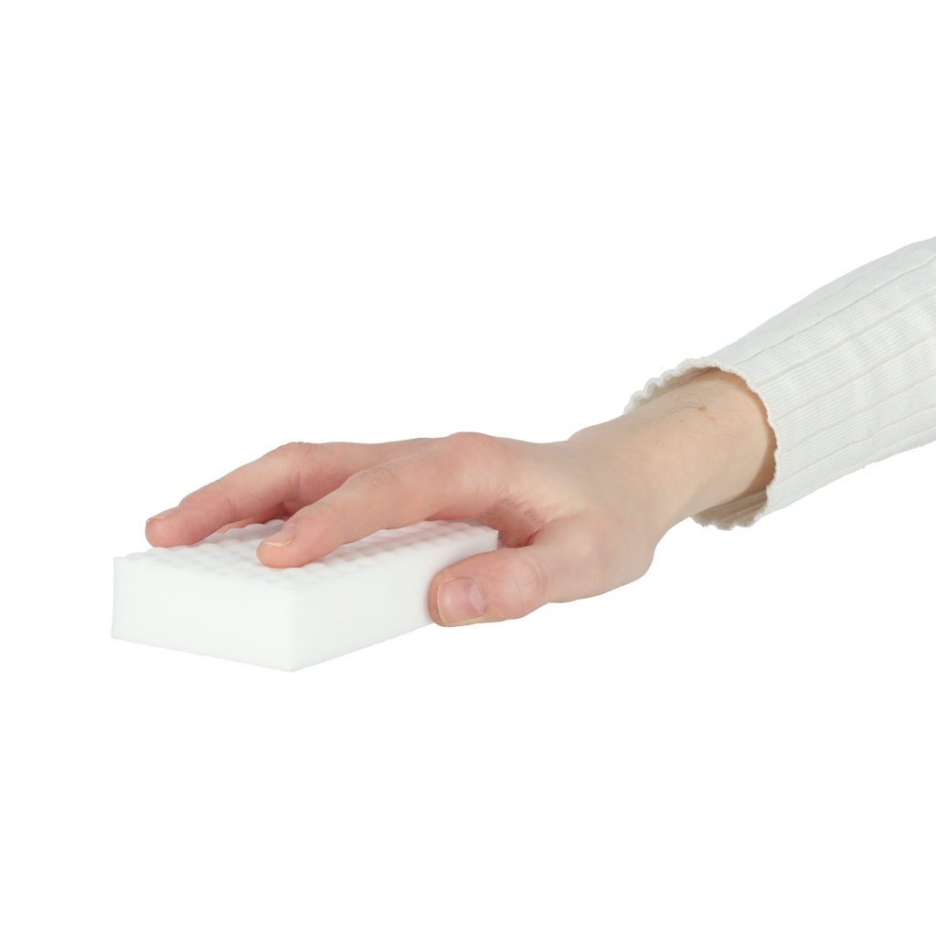 Eficiența ridicată a buretelui este dată de proprietățile sale abrazive fine. În timpul curățării se uzează ca o gumă.