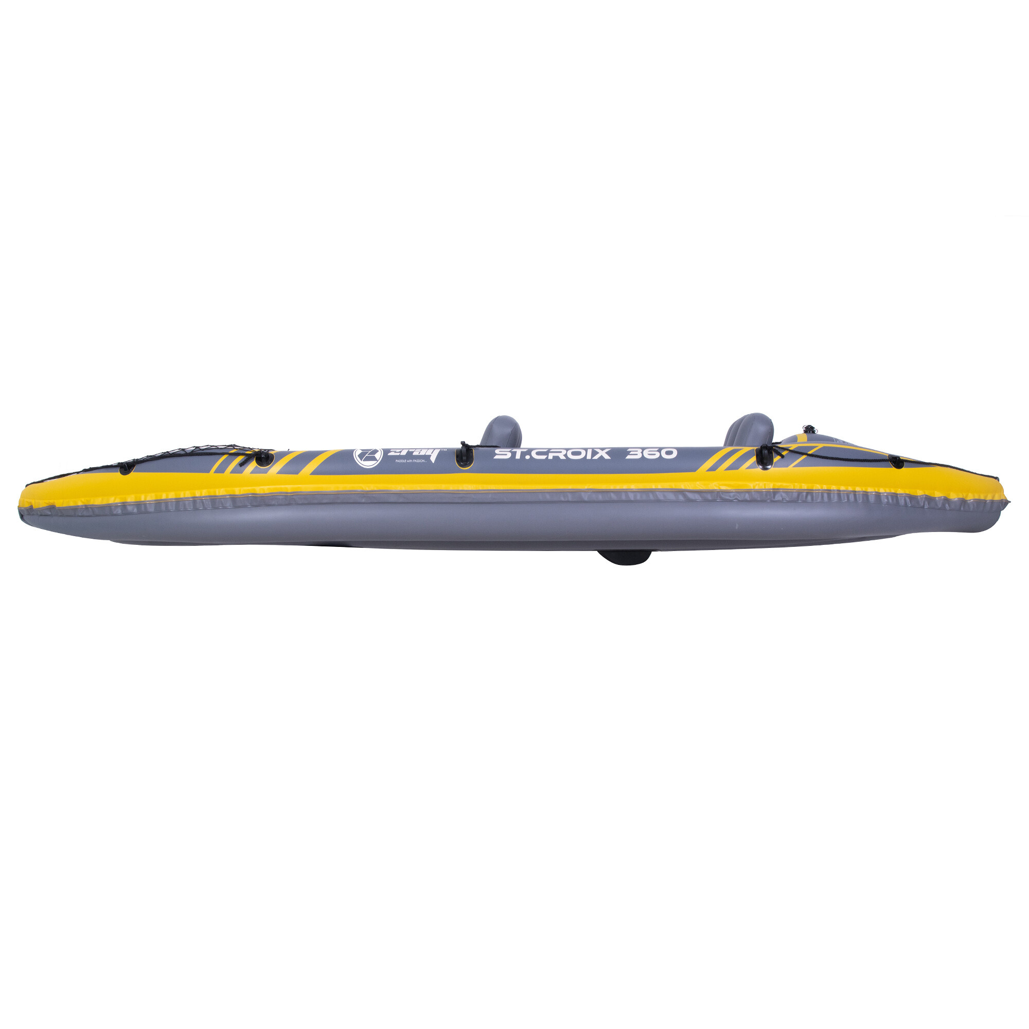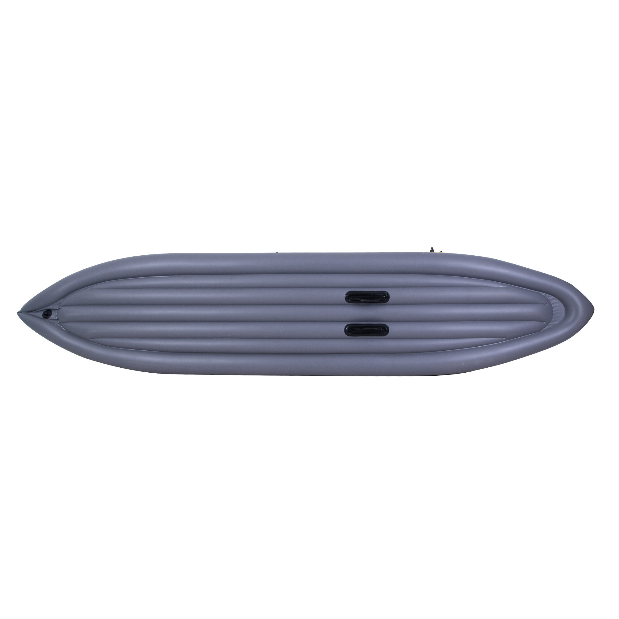 Caiacul gonflabil este fabricat din PVC rezistent cu o grosime de 0,55 mm, ceea ce asigură durabilitatea sa îndelungată și rezistența la deteriorare.După umflare, are o lungime de aproximativ 350 cm, o lățime de 78 cm și o înălțime de 52 cm.