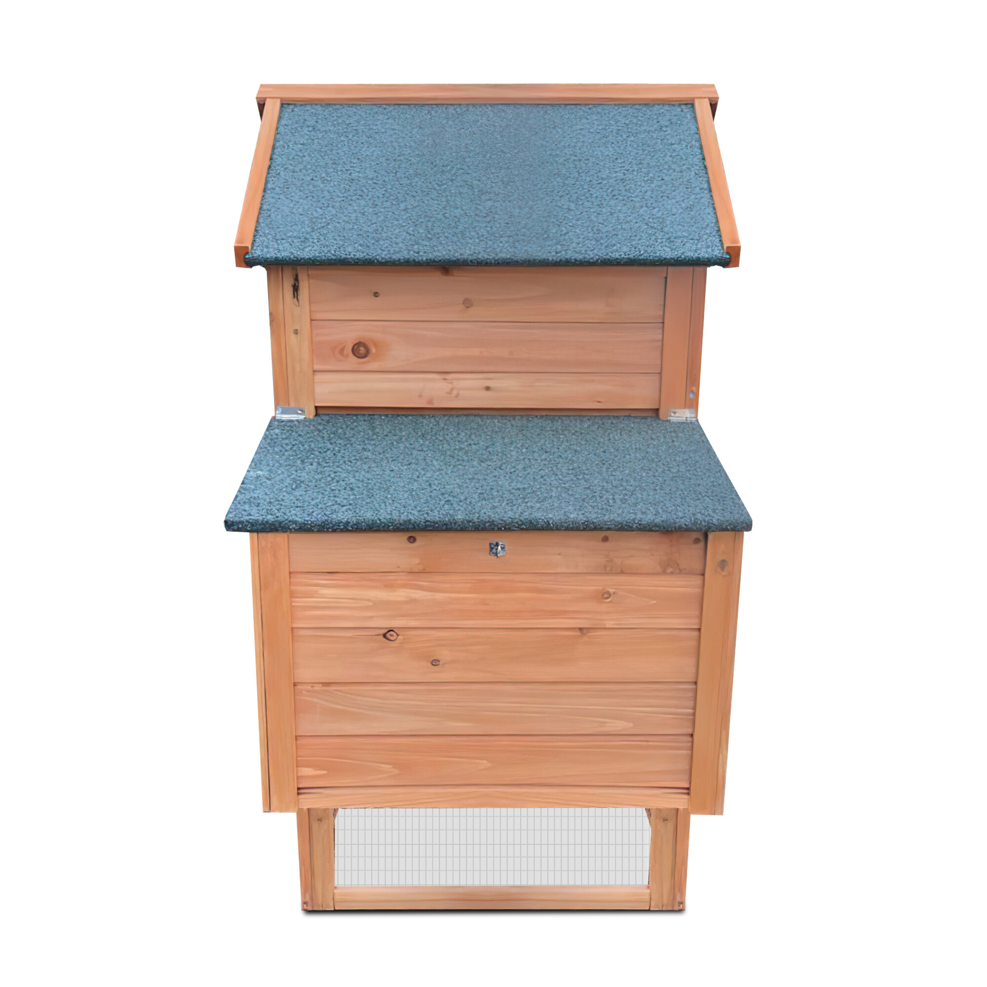 Unul dintre principalele avantaje ale acestui coteț este acoperișul rabatabil, care permite accesul ușor la ouă. Nu mai este nevoie de aplecări și întinderi complicate, pur și simplu ridicați acoperișul și ouăle sunt la îndemână.