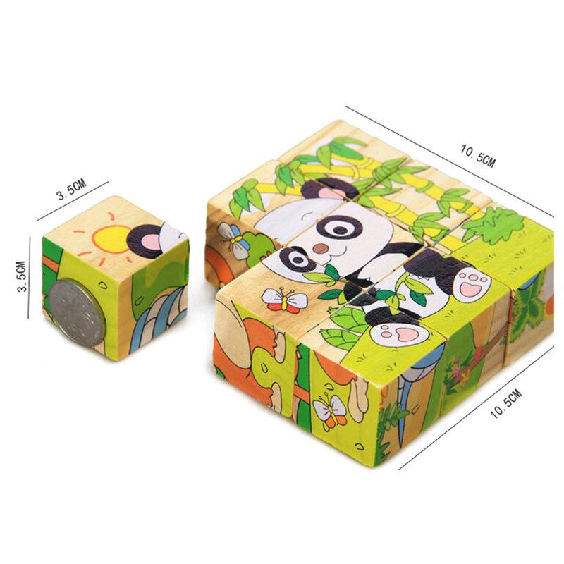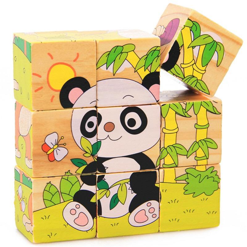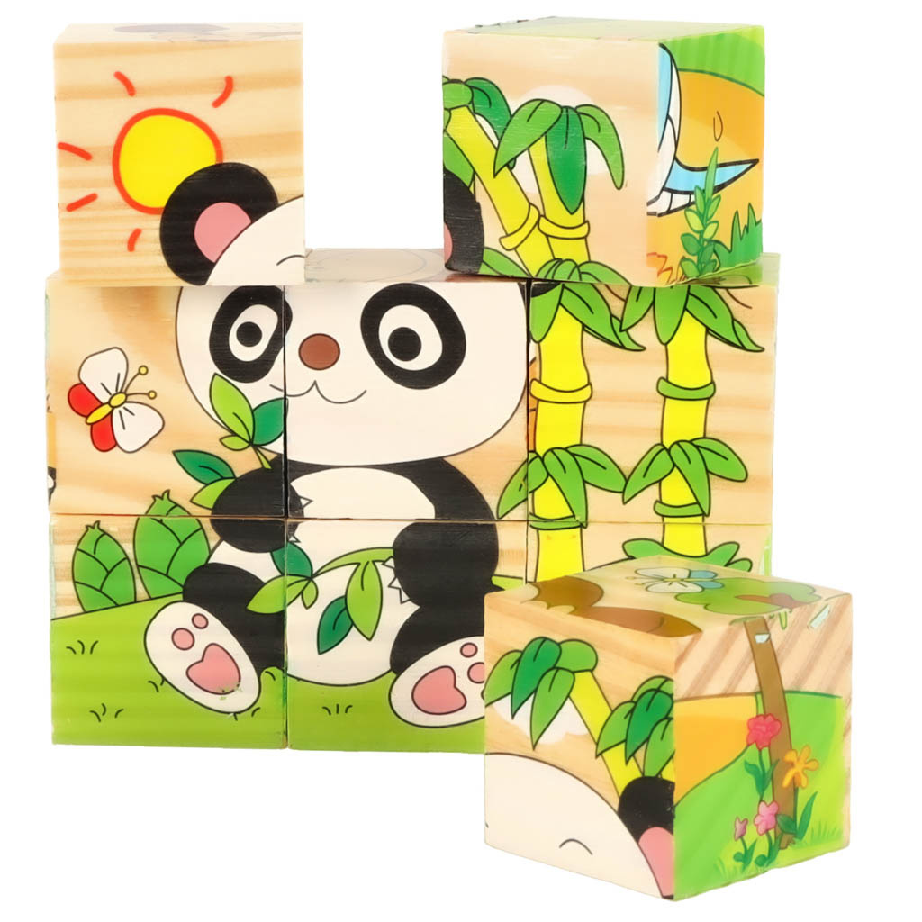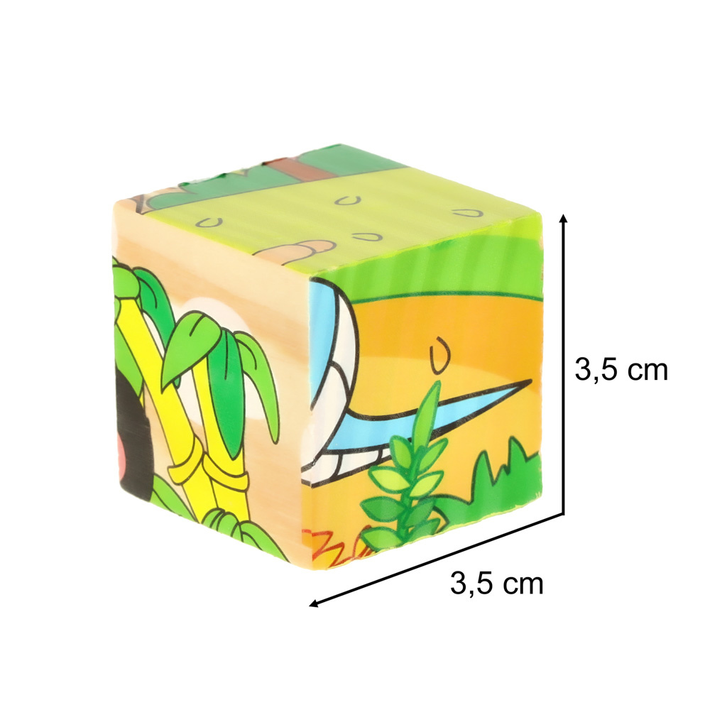 - Setul este compus din 9 cuburi de lemn colorate de aceeași dimensiune.