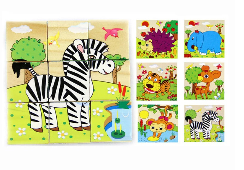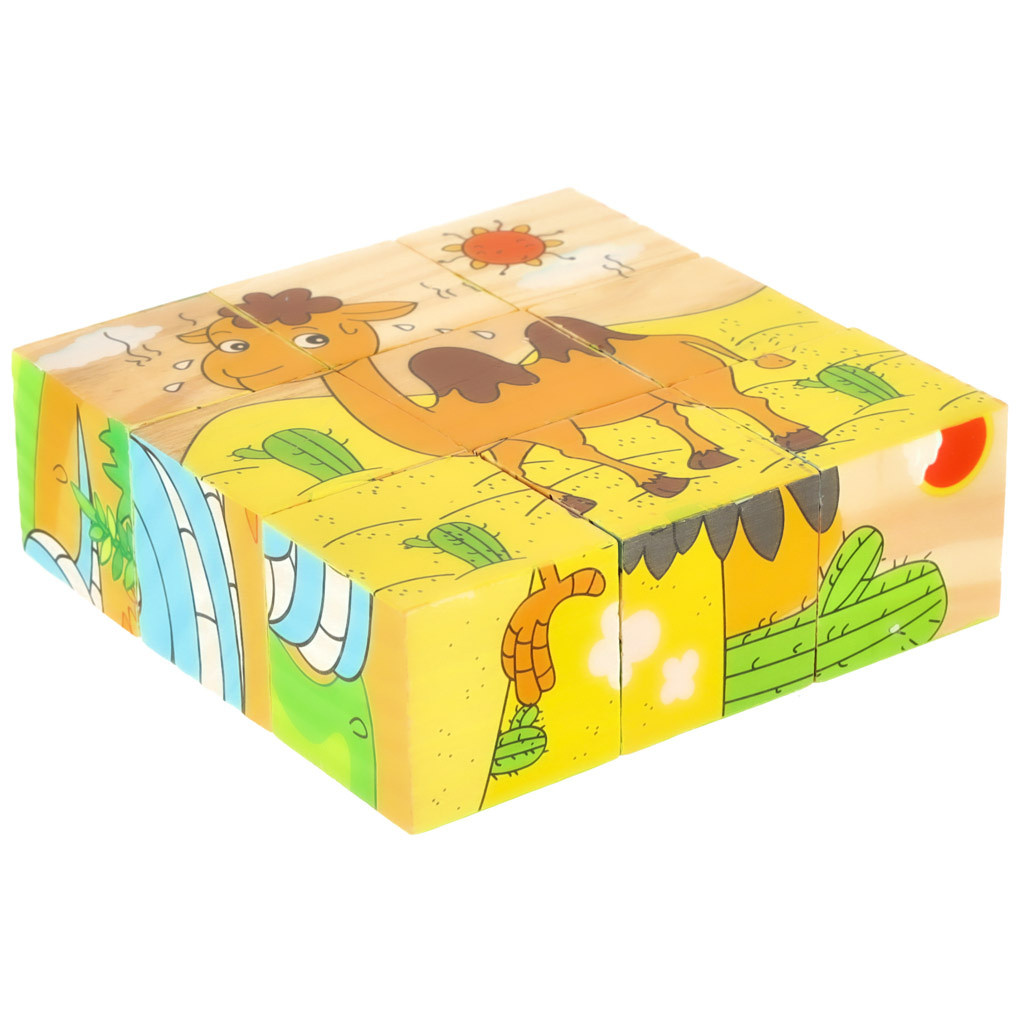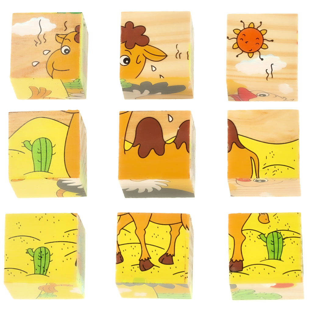 Puzzle fantastic sub formă de cuburi de lemn. Jocul constă în asamblarea unei imagini continue care ilustrează unul dintre animalele care trăiesc la fermă. Un puzzle are până la 6 modele diferite care trebuie asamblate: