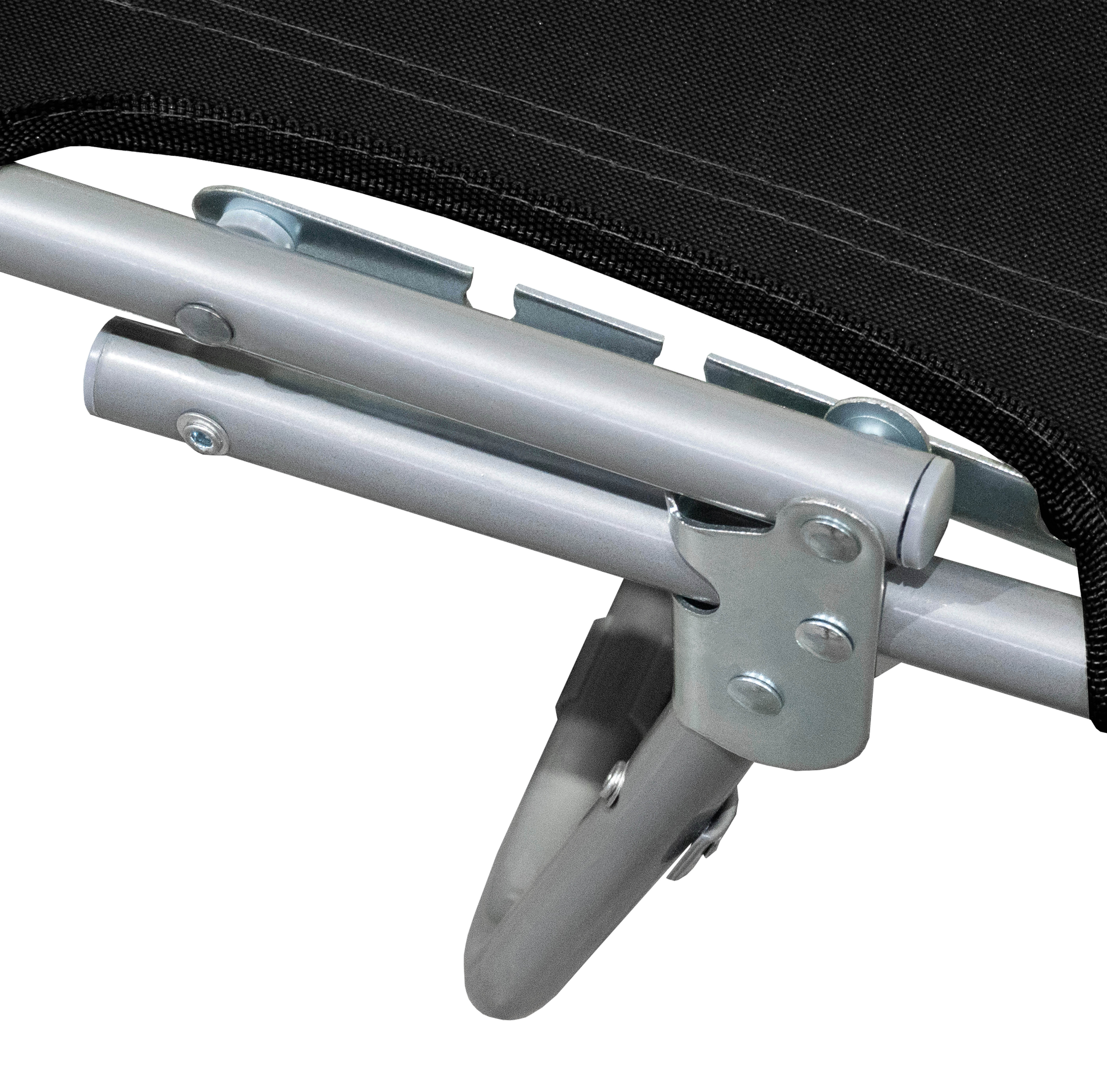 Construcția pliabilă a șezlongului permite o desfășurare și pliere ușoară. Țevile de oțel cu un diametru de 18 mm asigură o rezistență ridicată, durabilitate, stabilitate și o capacitate de încărcare de până la 120 kg.