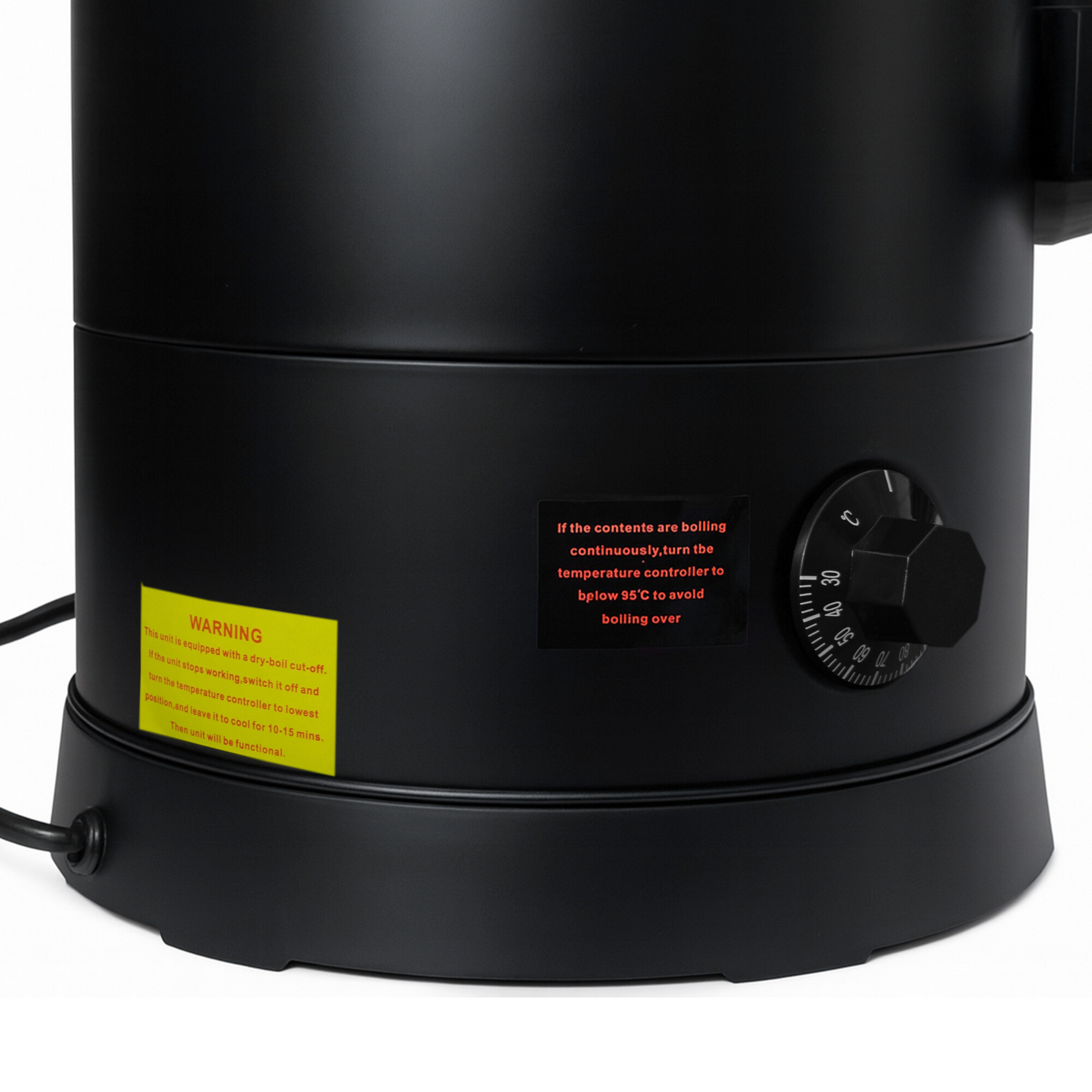 Recipientul și construcția sunt fabricate din oțel inoxidabil 304, care este igienic, foarte rezistent și ușor de întreținut. Datorită acestui fapt, acest încălzitor de băuturi calde din oțel inoxidabil este potrivit pentru utilizare intensă zilnică.