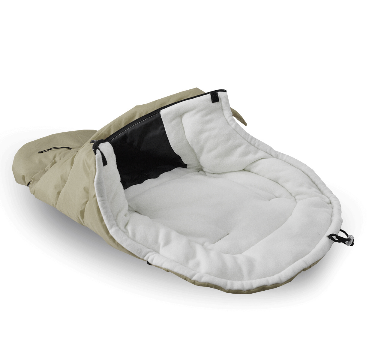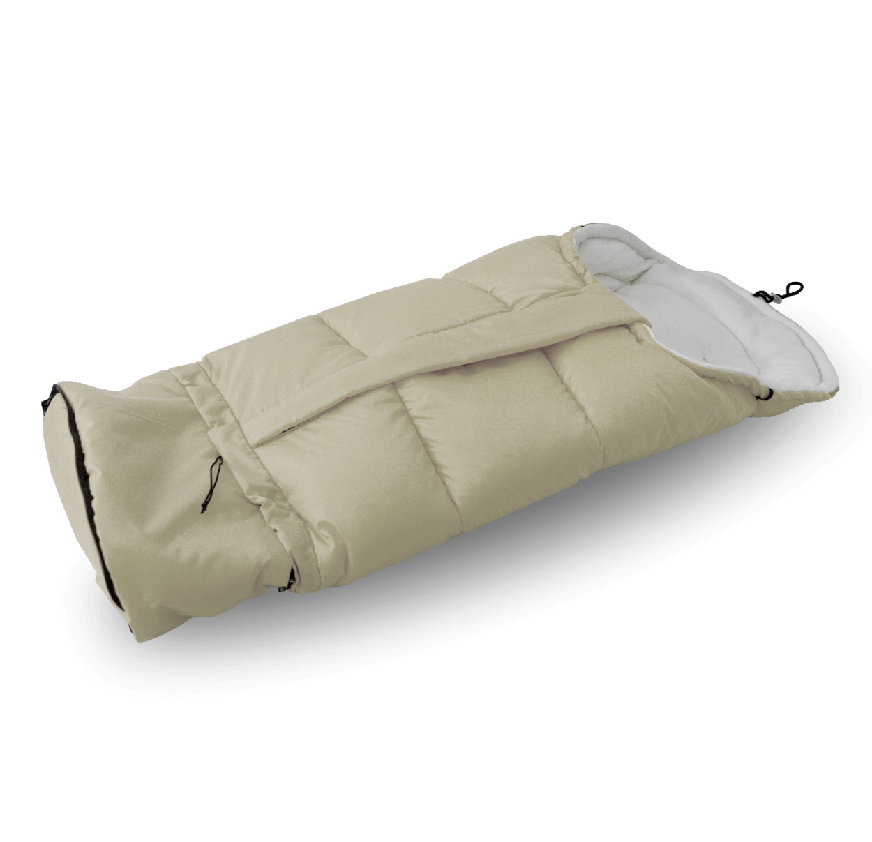 - Interiorul sacului de dormit este format dintr-un strat moale și plăcut din material fleece