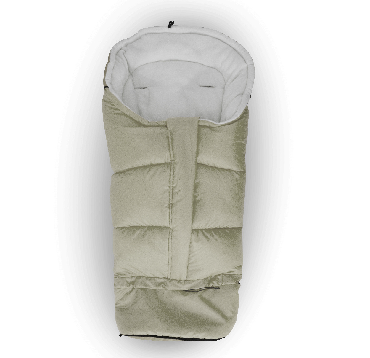 Sacul de dormit pentru copii are un fermoar care se poate deschide, orificii pentru centurile de siguranță în 5 puncte și prinderi elastice care permit fixarea de cărucior.