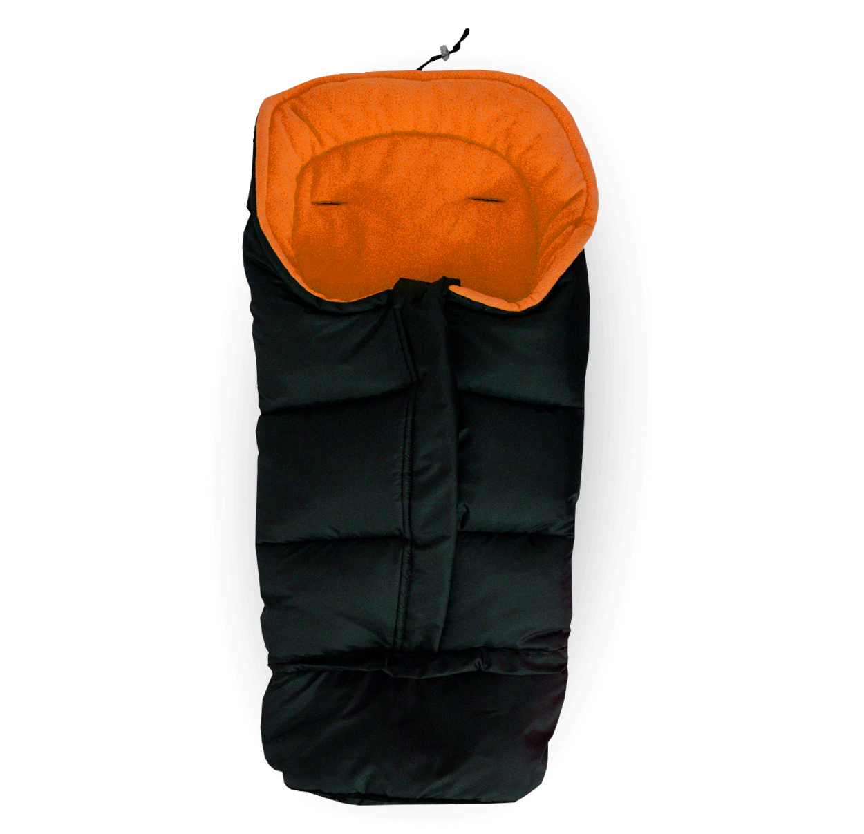 Sacul de dormit pentru copii are un fermoar care se poate deschide, orificii pentru centurile de siguranță în 5 puncte și prinderi elastice care permit fixarea de cărucior.