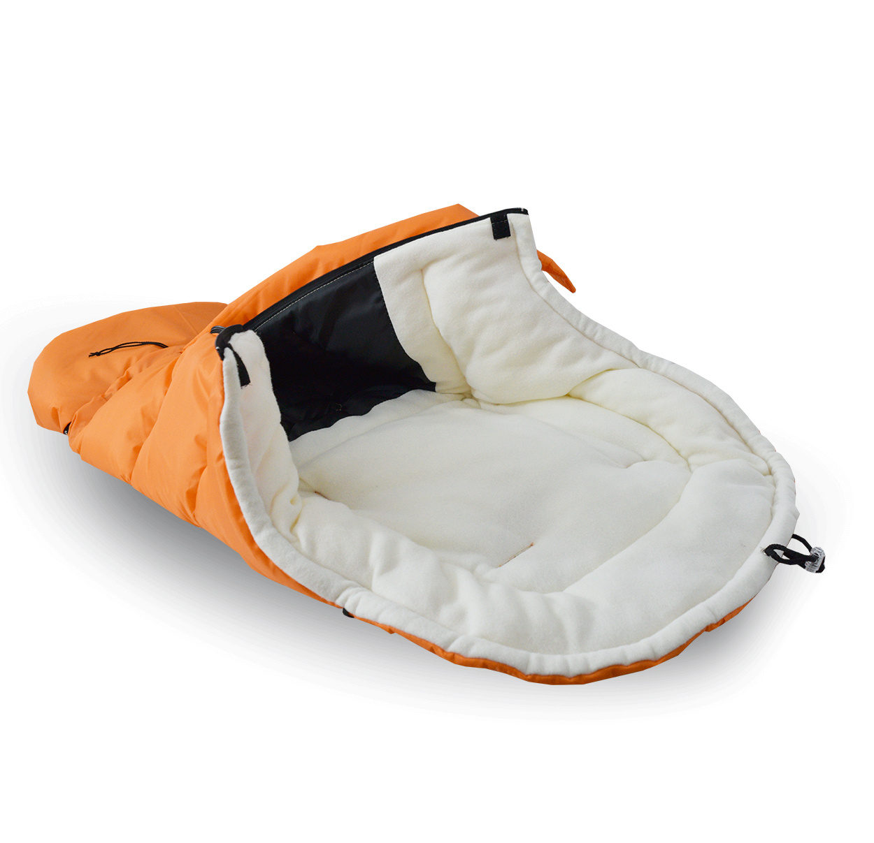 - Interiorul sacului de dormit este format dintr-un strat moale și plăcut din material fleece
