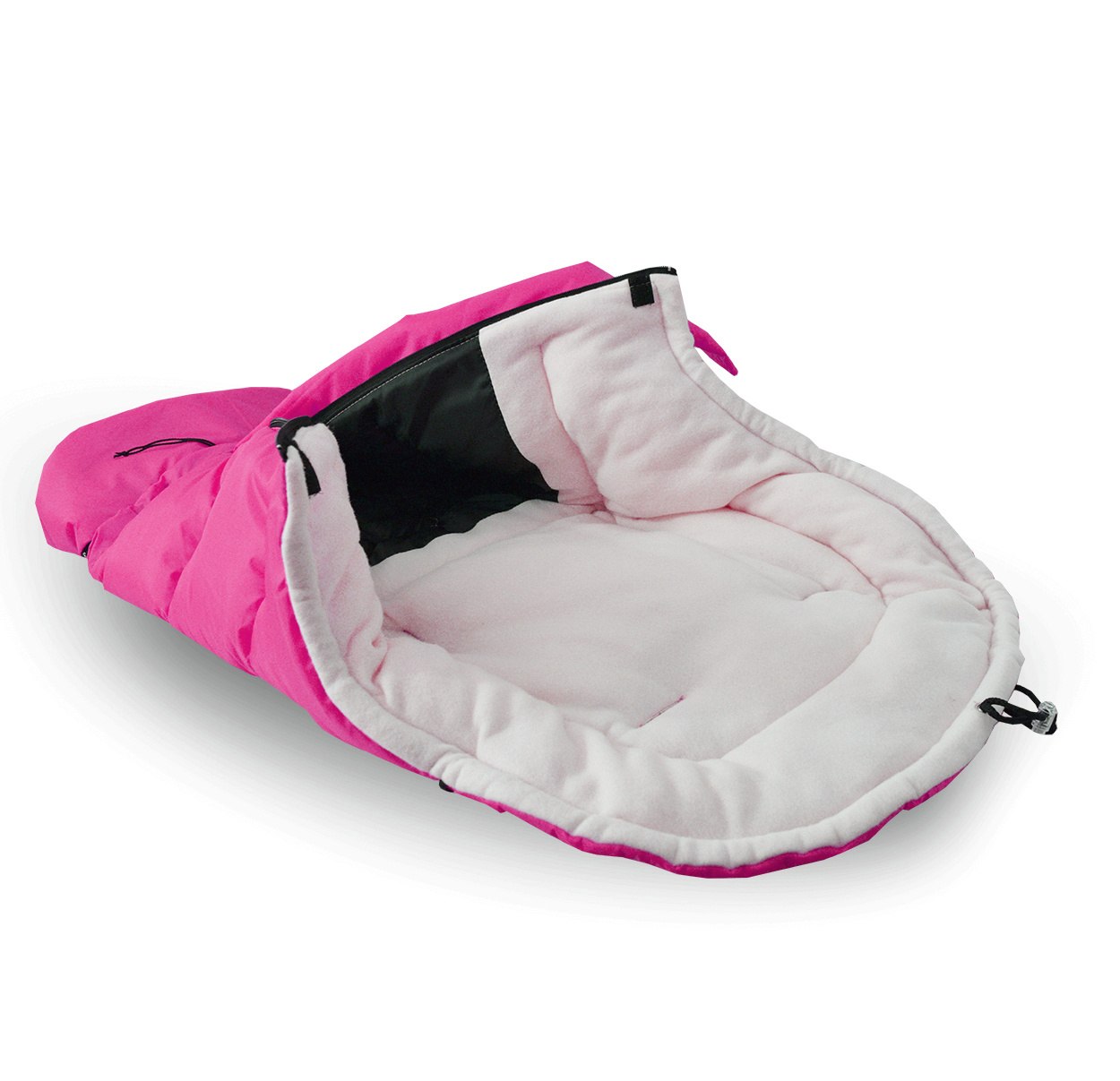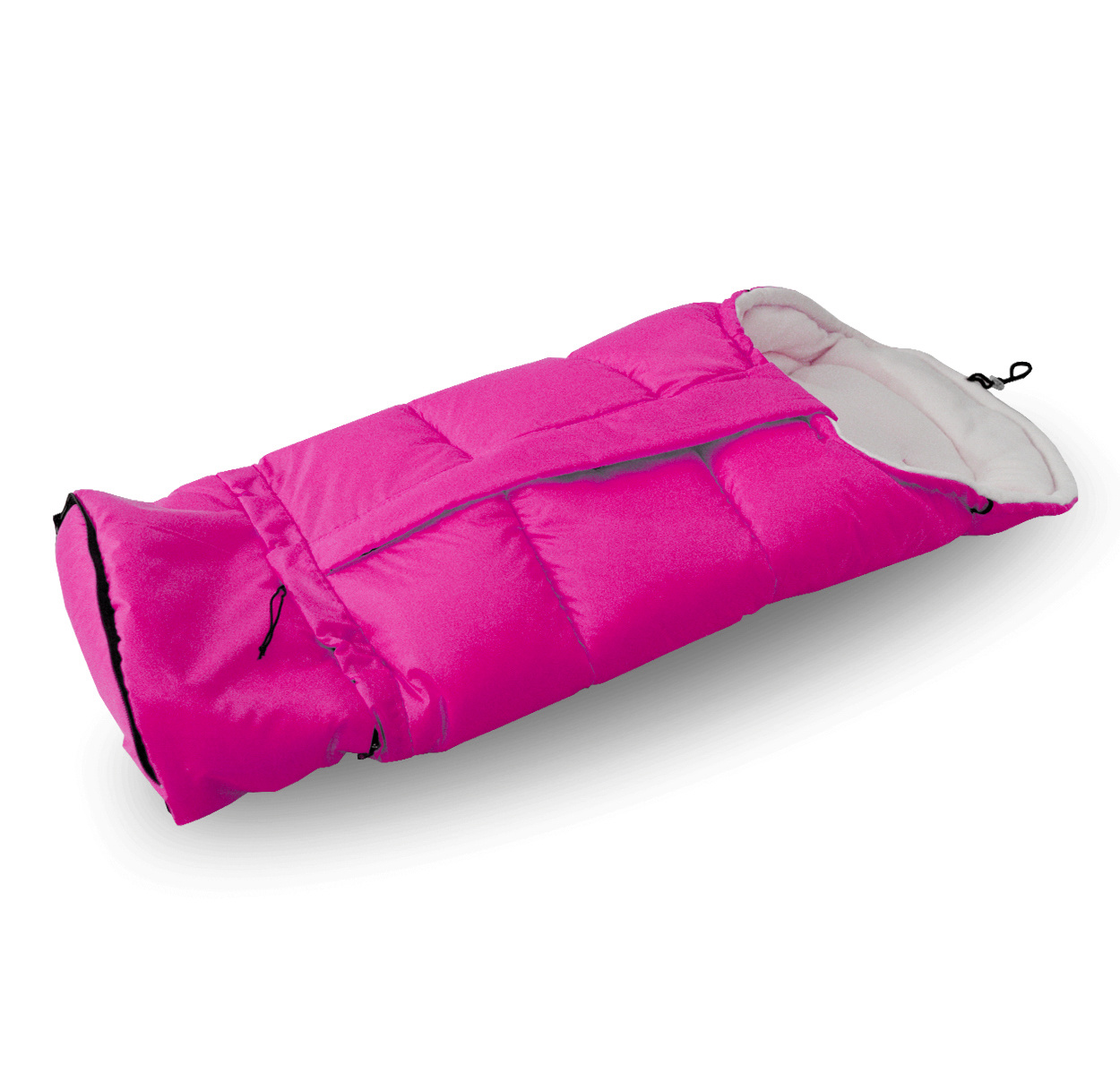 - Interiorul sacului de dormit este format dintr-un strat moale și plăcut din material fleece