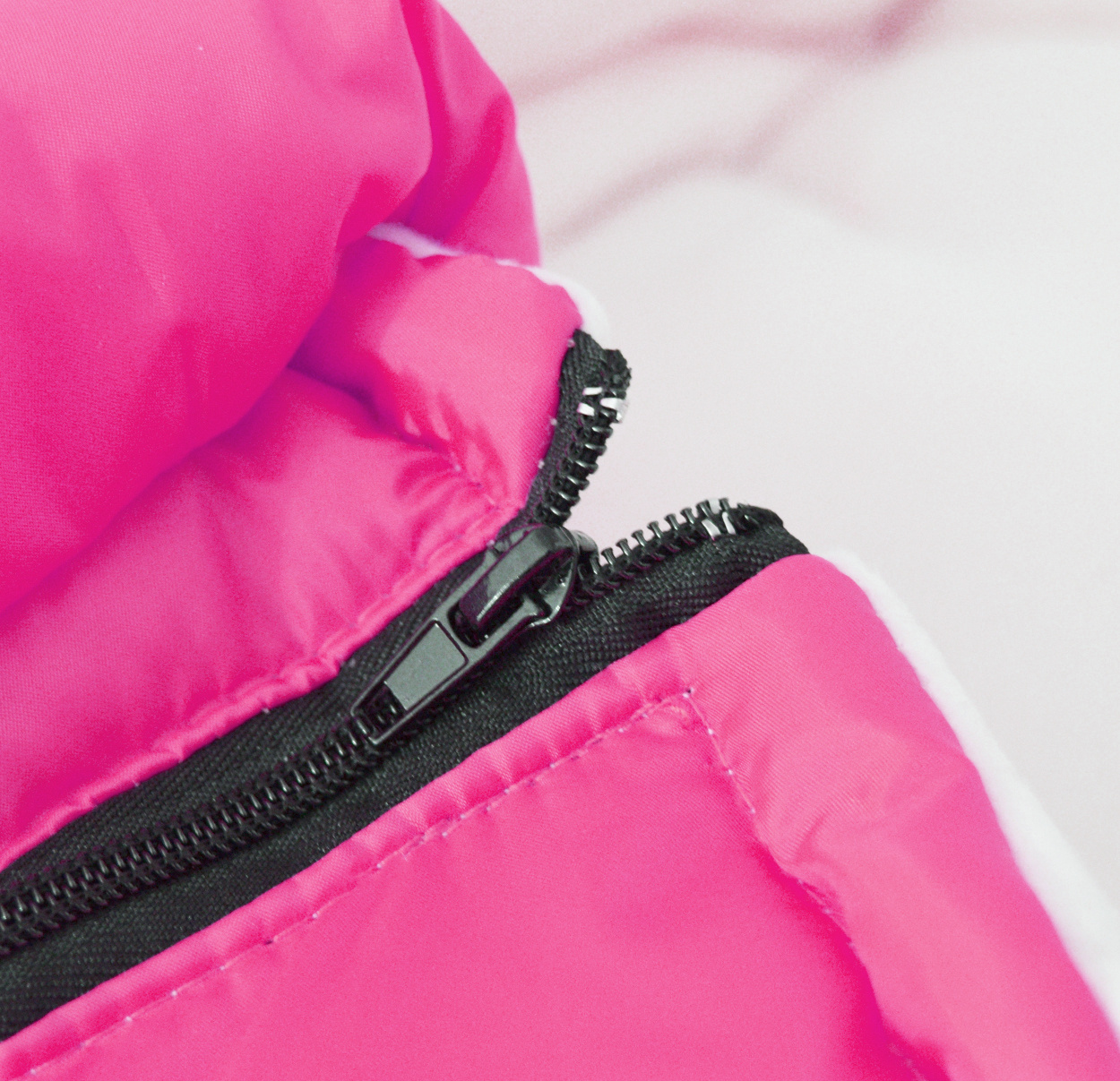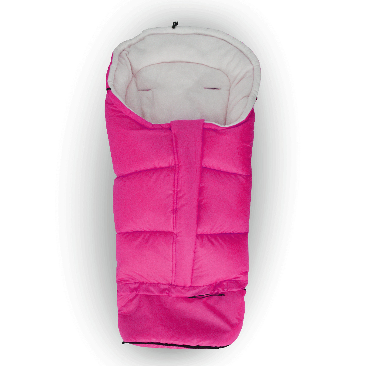 Sacul de dormit pentru copii are un fermoar care se poate deschide, orificii pentru centurile de siguranță în 5 puncte și prinderi elastice care permit fixarea de cărucior.