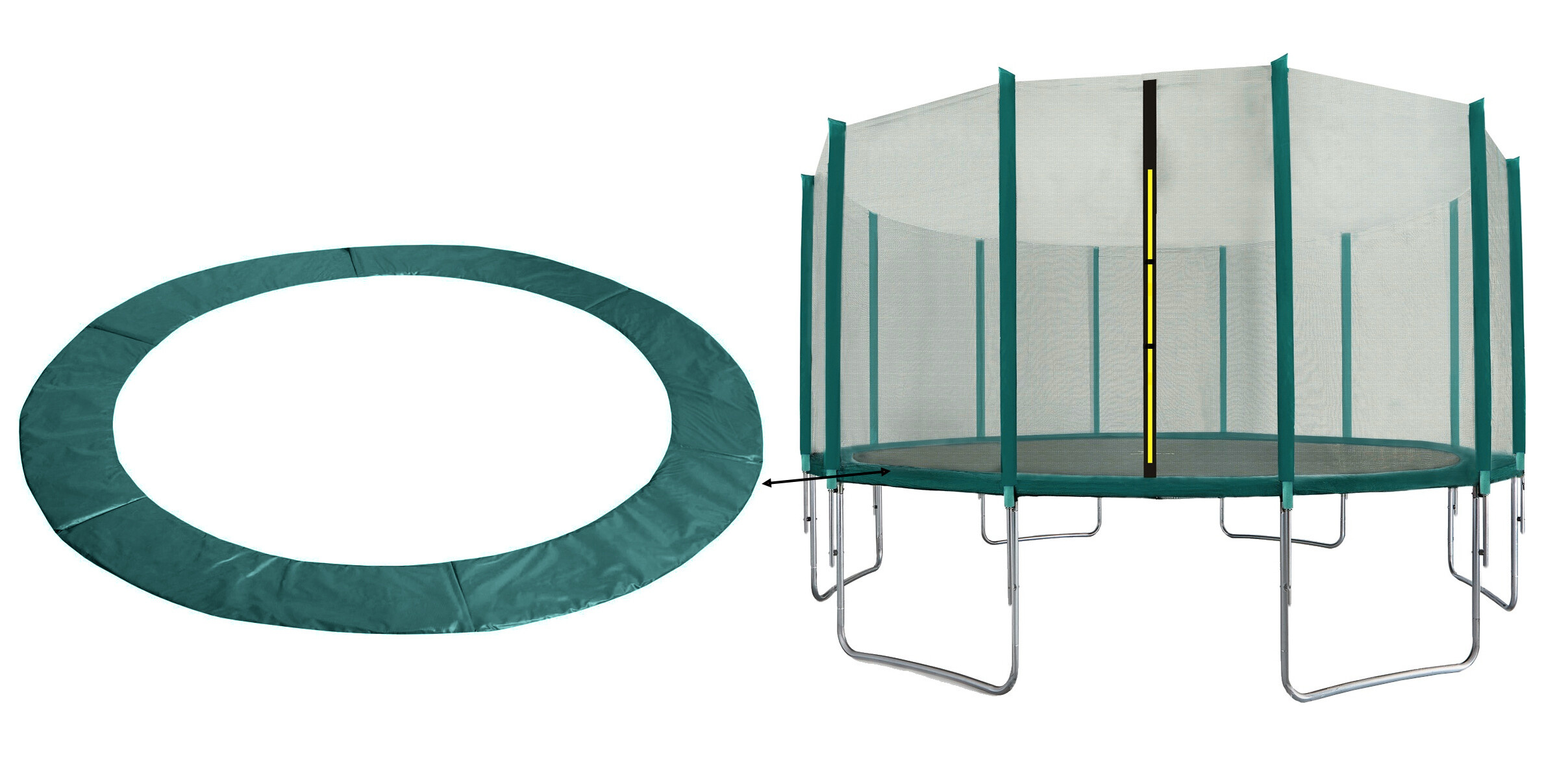 Capacul de protecție pentru arcuri (curea perimetrală căptușită) servește în principal pentru a asigura siguranța maximă posibilă în utilizarea trambulinei dumneavoastră.