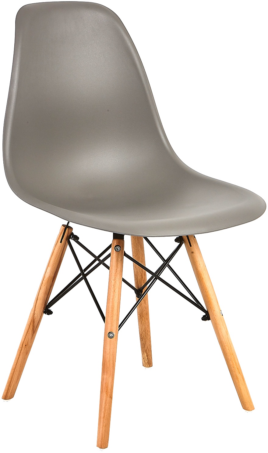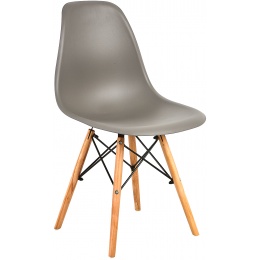 Un scaun care se remarcă printr-un design retro modern minunat, cu un șezut frumos conturat și picioare din lemn.