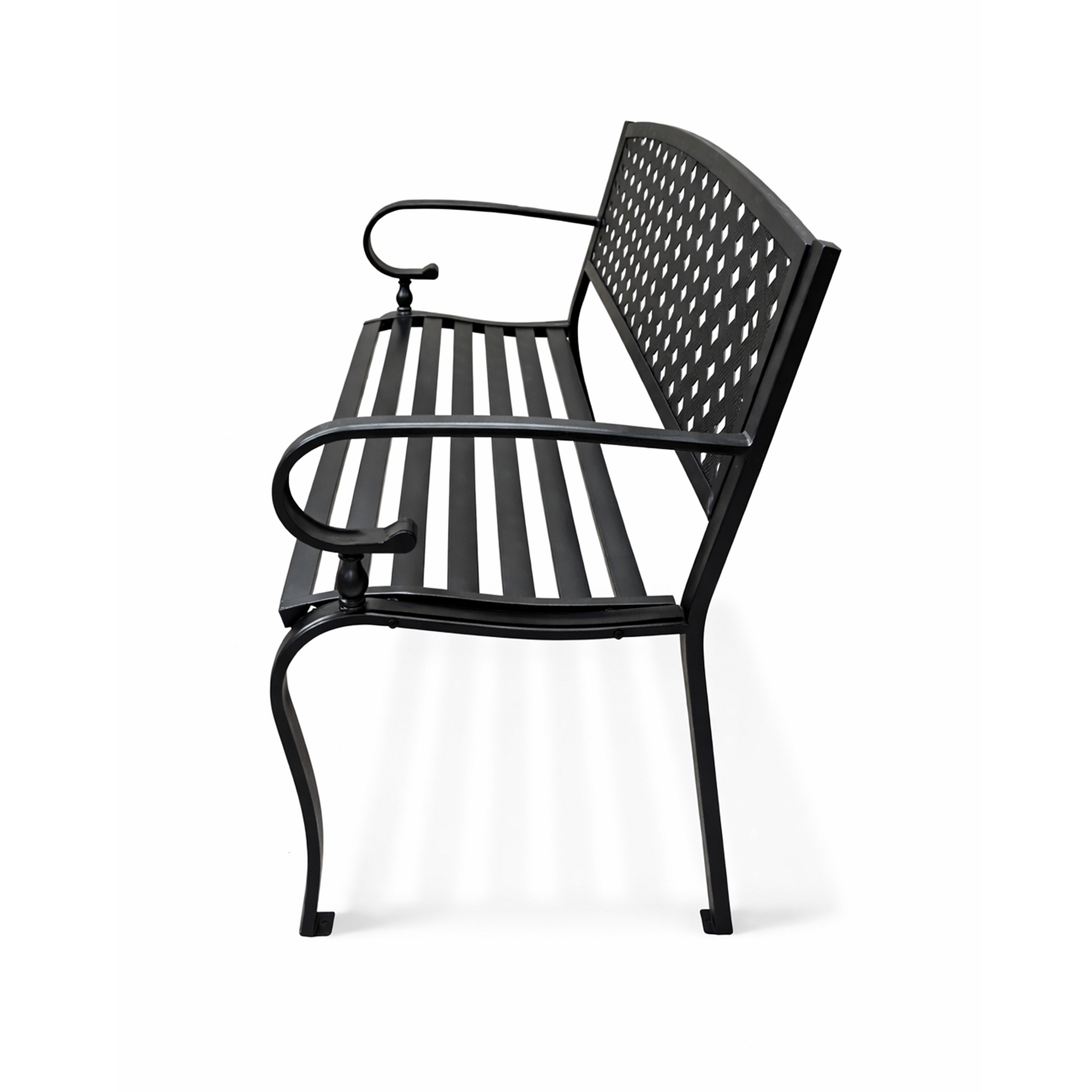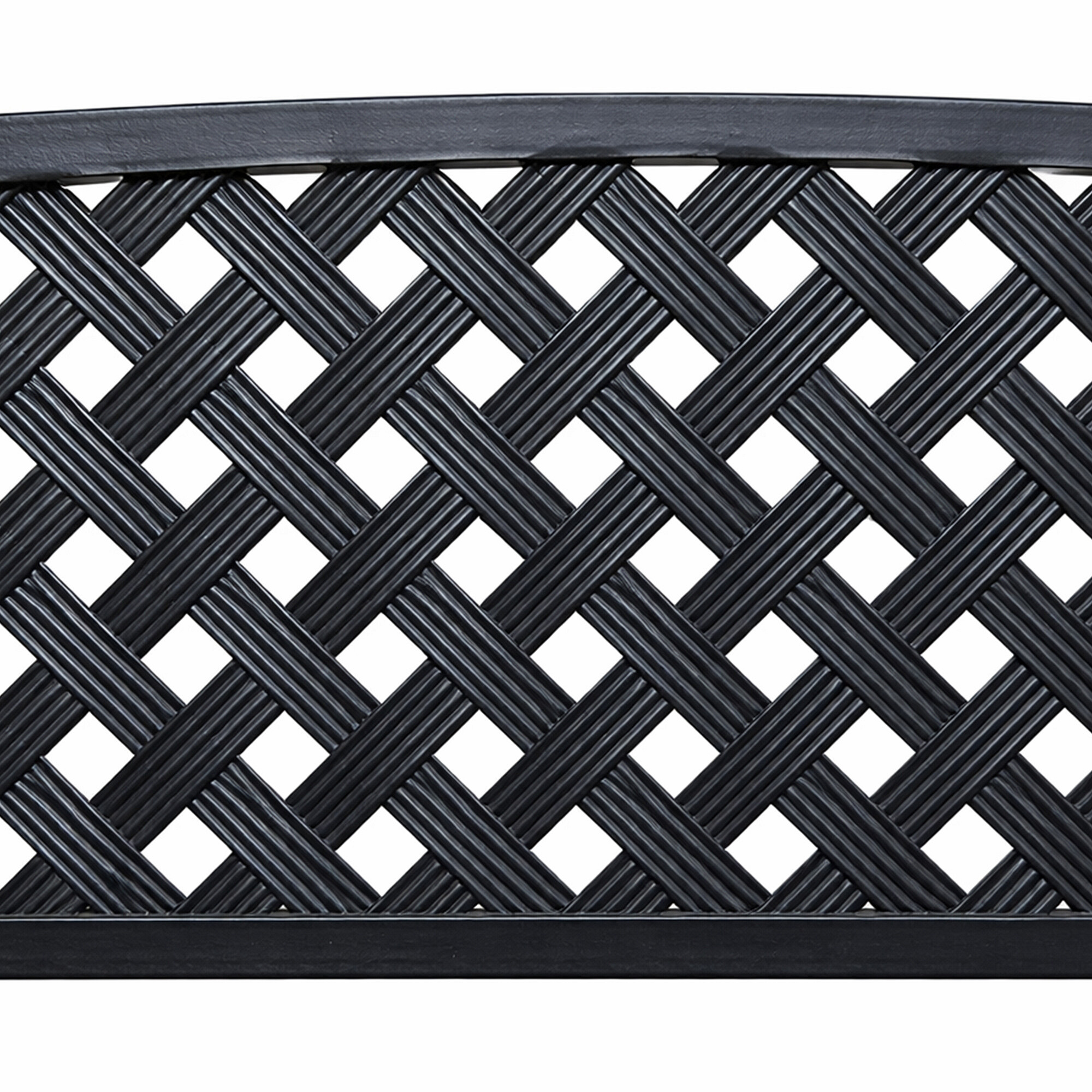 Construcția băncii de grădină este realizată din oțel și fontă, aceste materiale sunt rezistente și, în același timp, asigură stabilitatea. Construcția băncii este prevăzută cu un finisaj de vopsire în câmp electrostatic, astfel încât banca rezistă excelent la intemperii și are o durată de viață lungă.