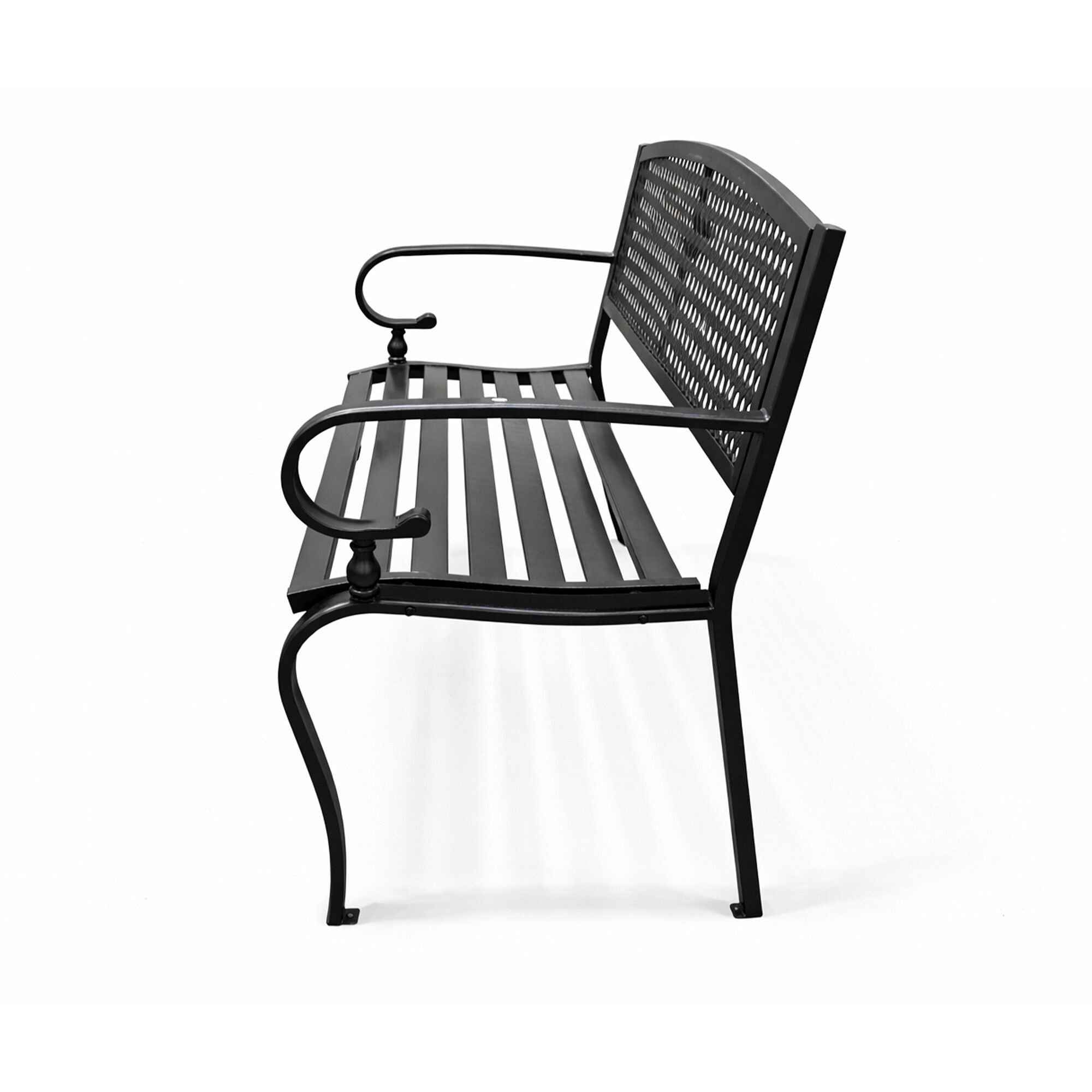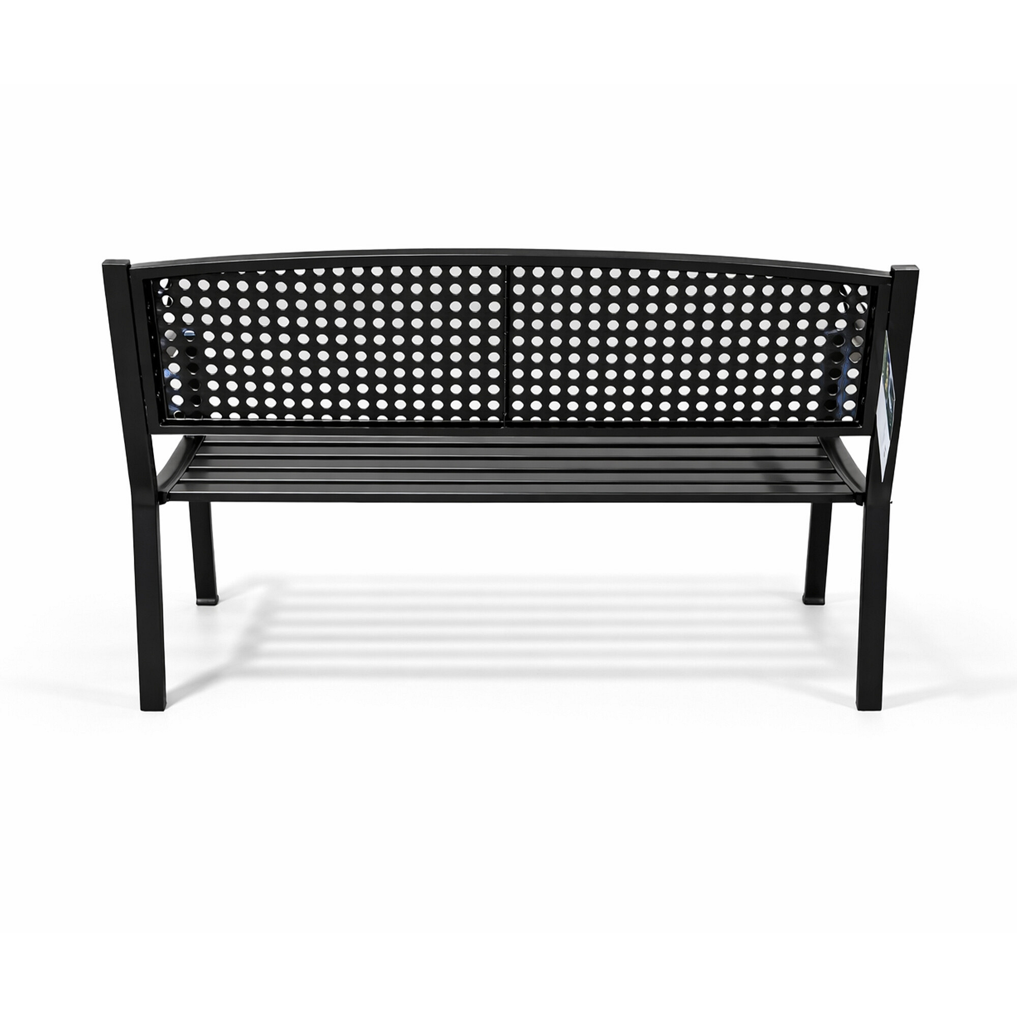 Construcția băncii de grădină este realizată din oțel și fontă, aceste materiale sunt rezistente și, în același timp, asigură stabilitatea. Construcția băncii este prevăzută cu un finisaj de vopsire în câmp electrostatic, astfel încât banca rezistă excelent la intemperii și are o durată de viață lungă.