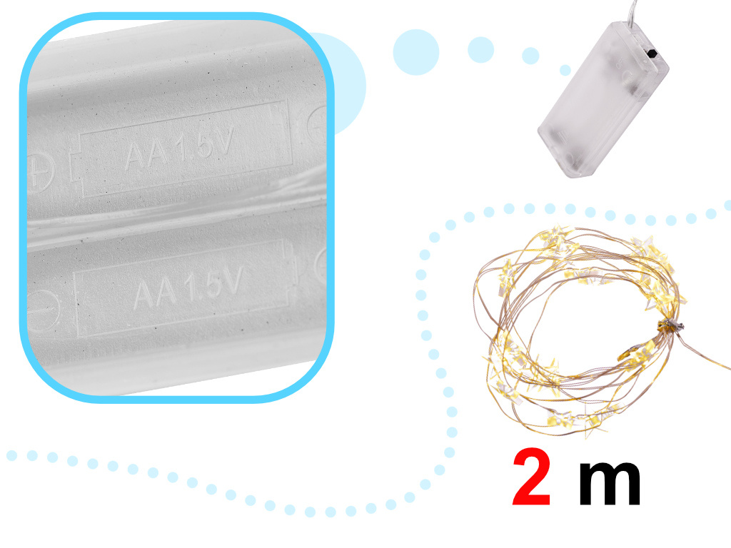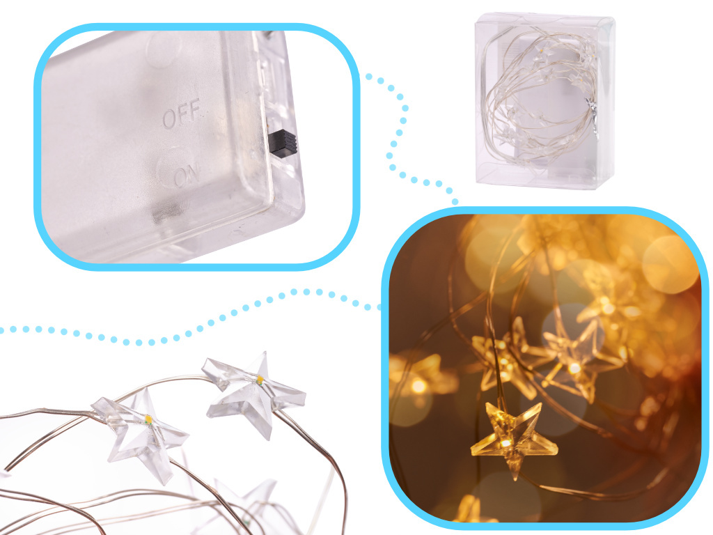 Set de lumini în formă de stea pe un fir subțire și flexibil, lung de 2 metri.