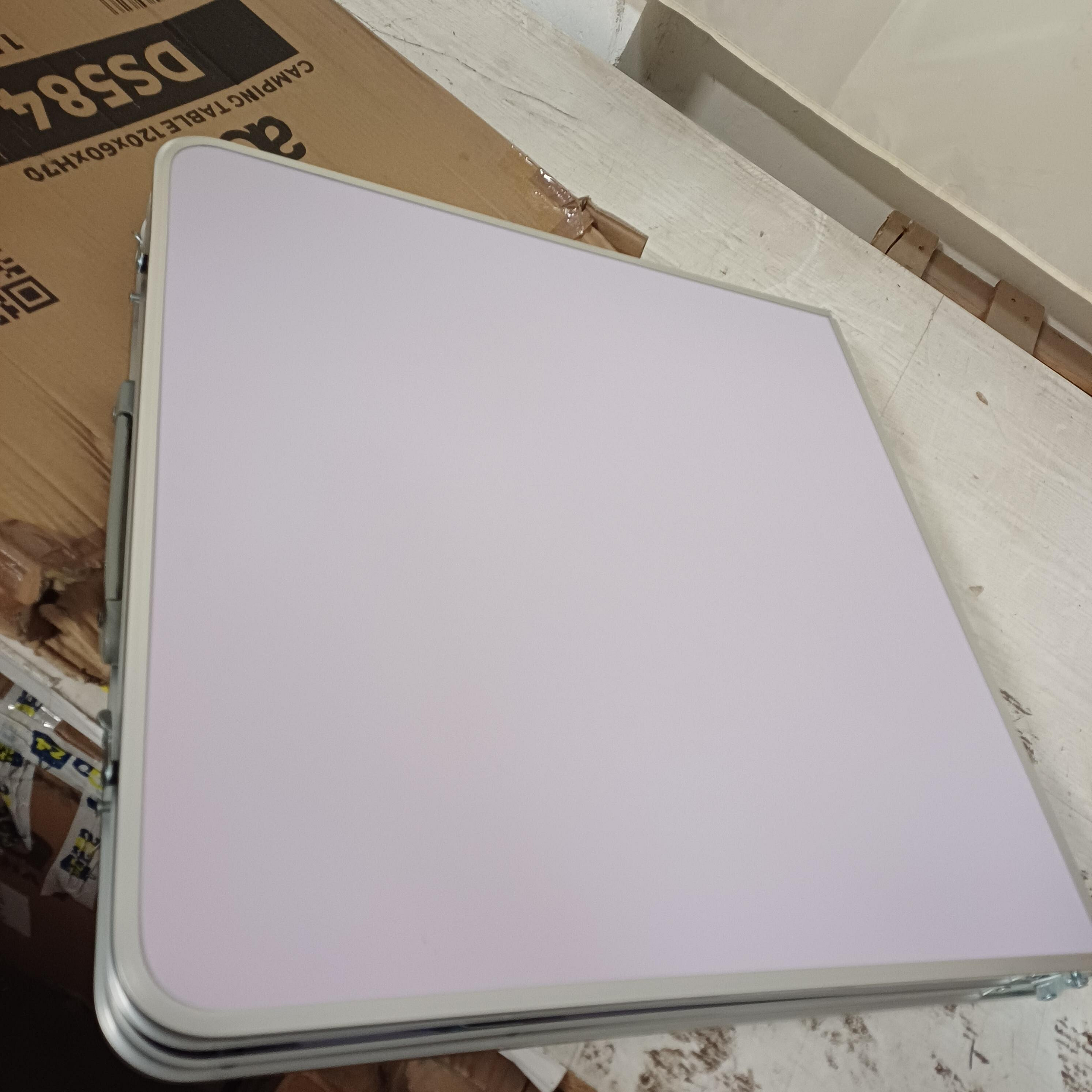- În stare pliată, masa este ușor de transportat sub forma unei plăci plate cu mâner