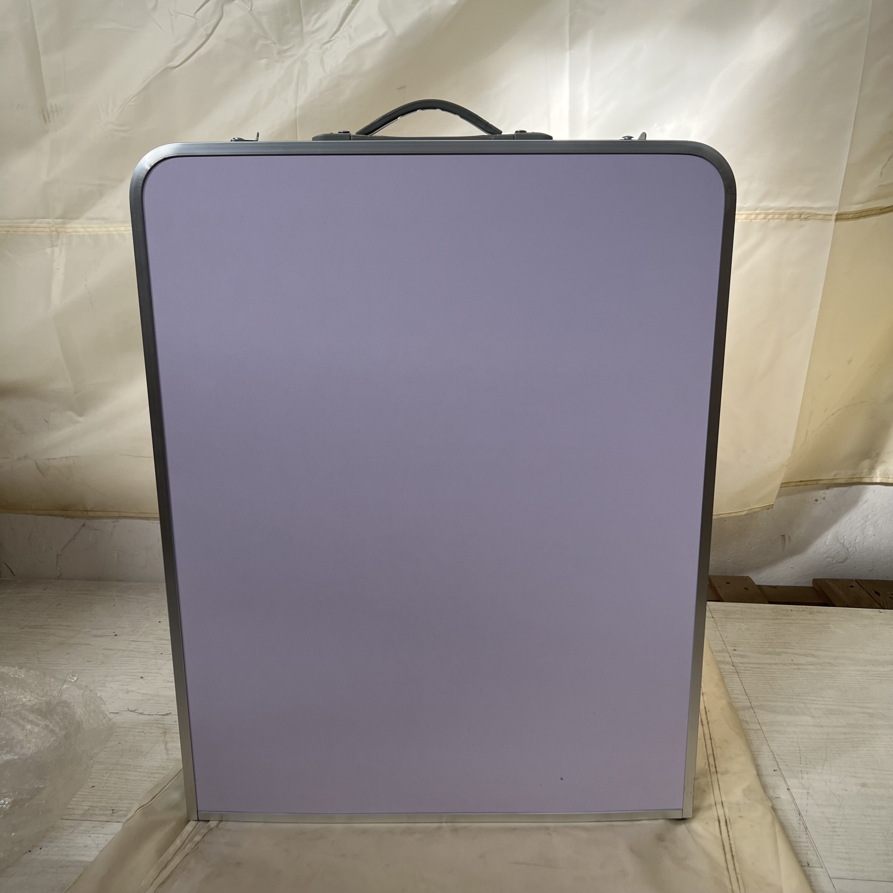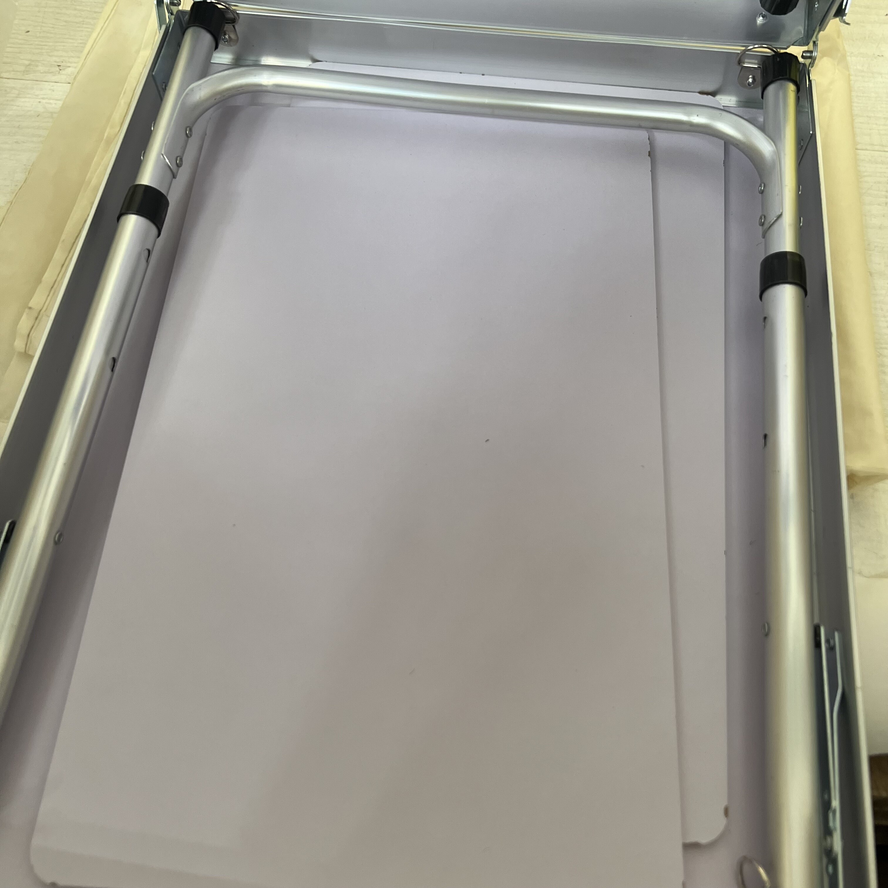 - În stare pliată, masa este ușor de transportat sub forma unei plăci plate cu mâner