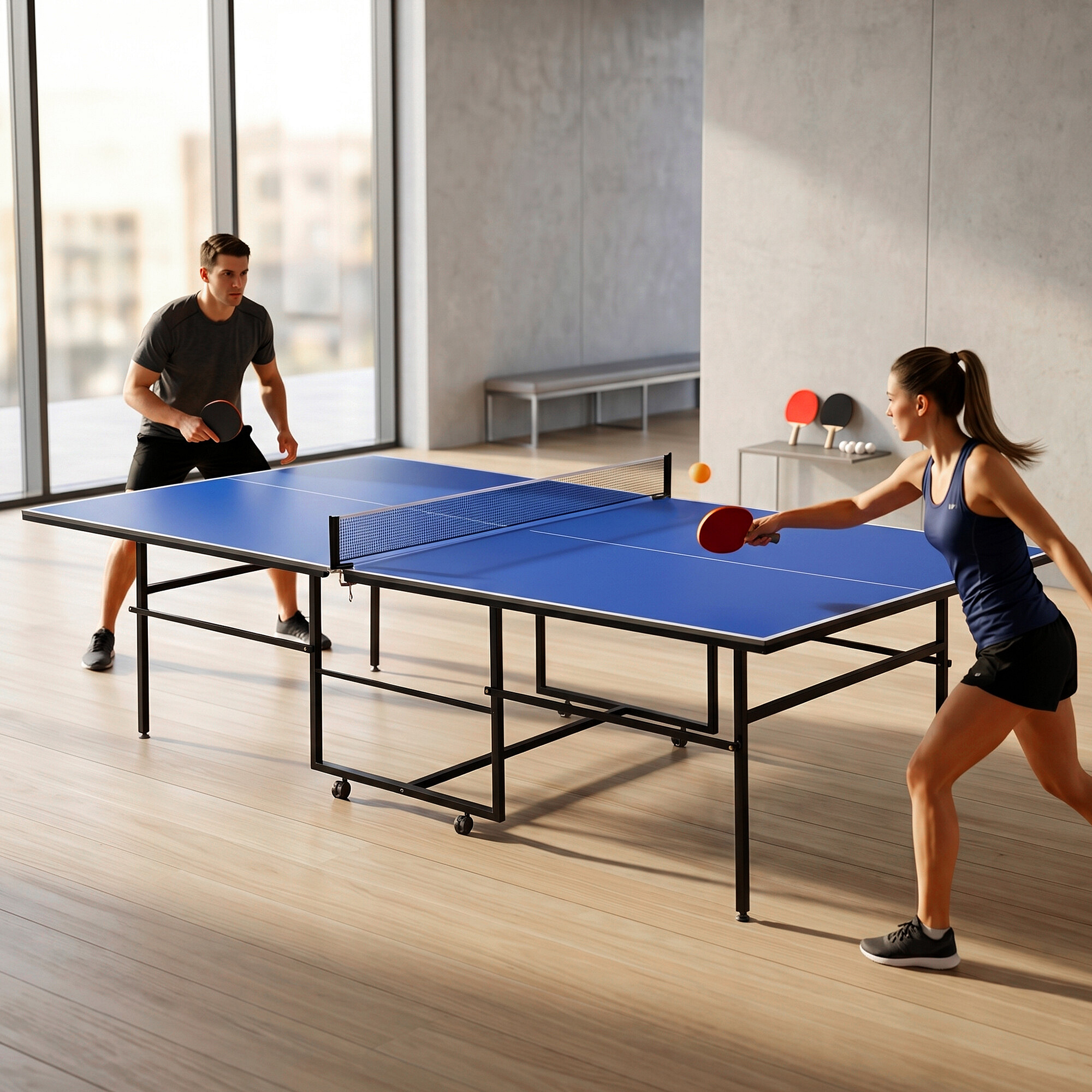 Datorită roților integrate și mecanismului pliabil, masa de tenis de masă Aga este foarte ușor de mutat și depozitat. Când nu folosiți masa, o puteți plia și depozita cu ușurință, fără a ocupa prea mult spațiu. Este ideal pentru gospodăriile unde spațiul este limitat.