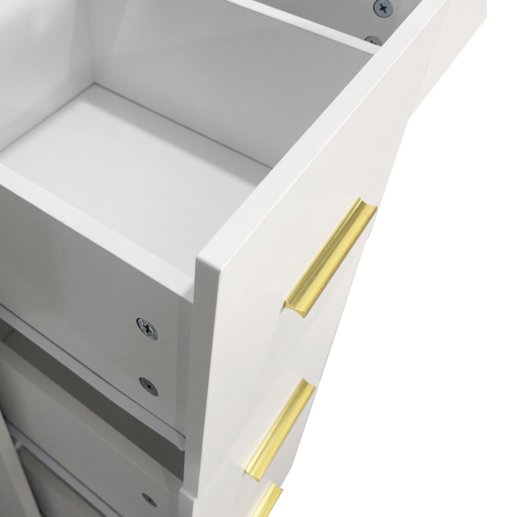 Lângă oglindă se află două rafturi deschise practice, pe care vă puteți expune produsele cosmetice preferate, parfumurile sau decorațiunile. Cele patru sertare spațioase oferă suficient spațiu de depozitare pentru machiaj, bijuterii și alte accesorii, pe care astfel le veți avea întotdeauna la îndemână.
