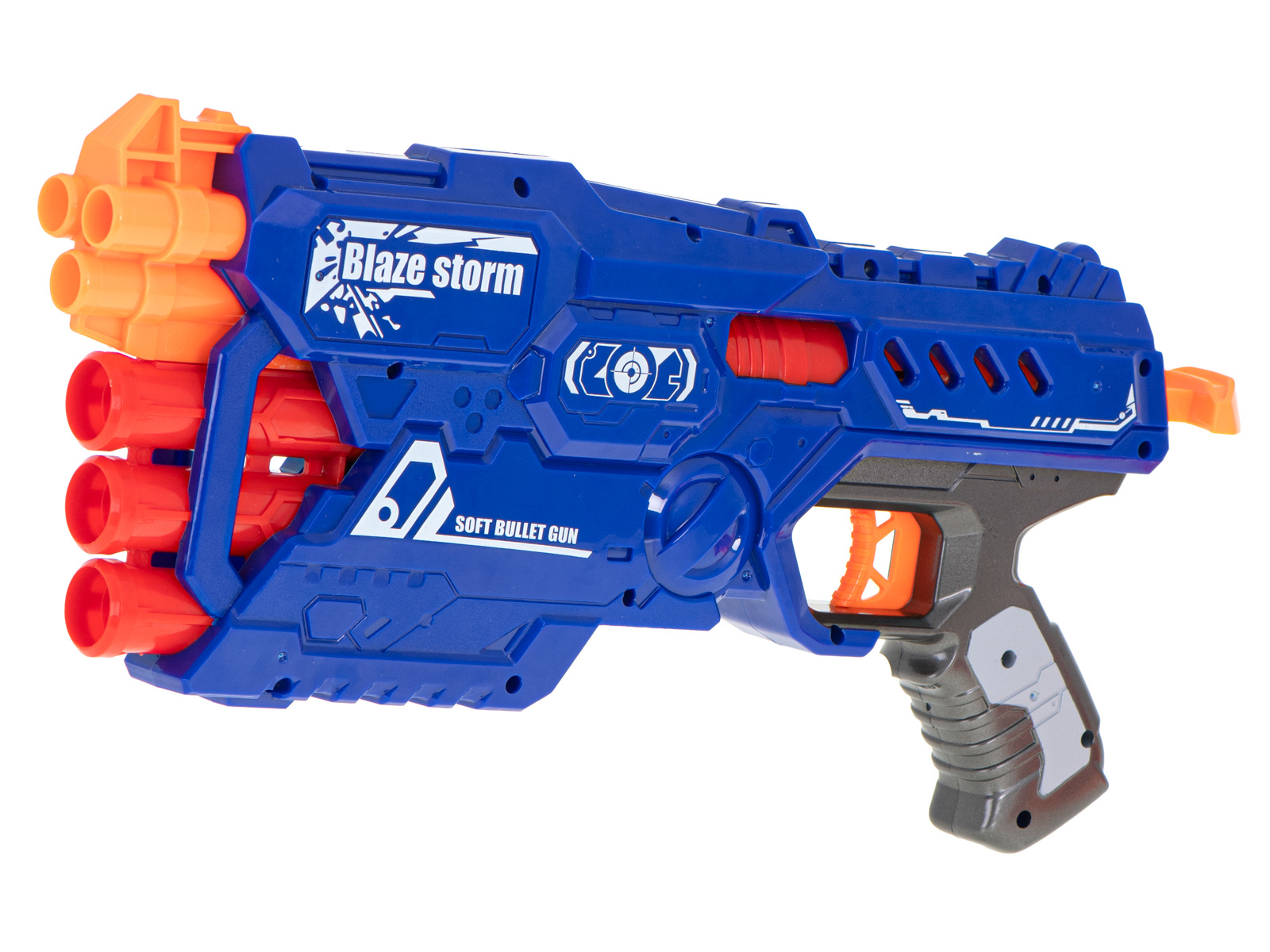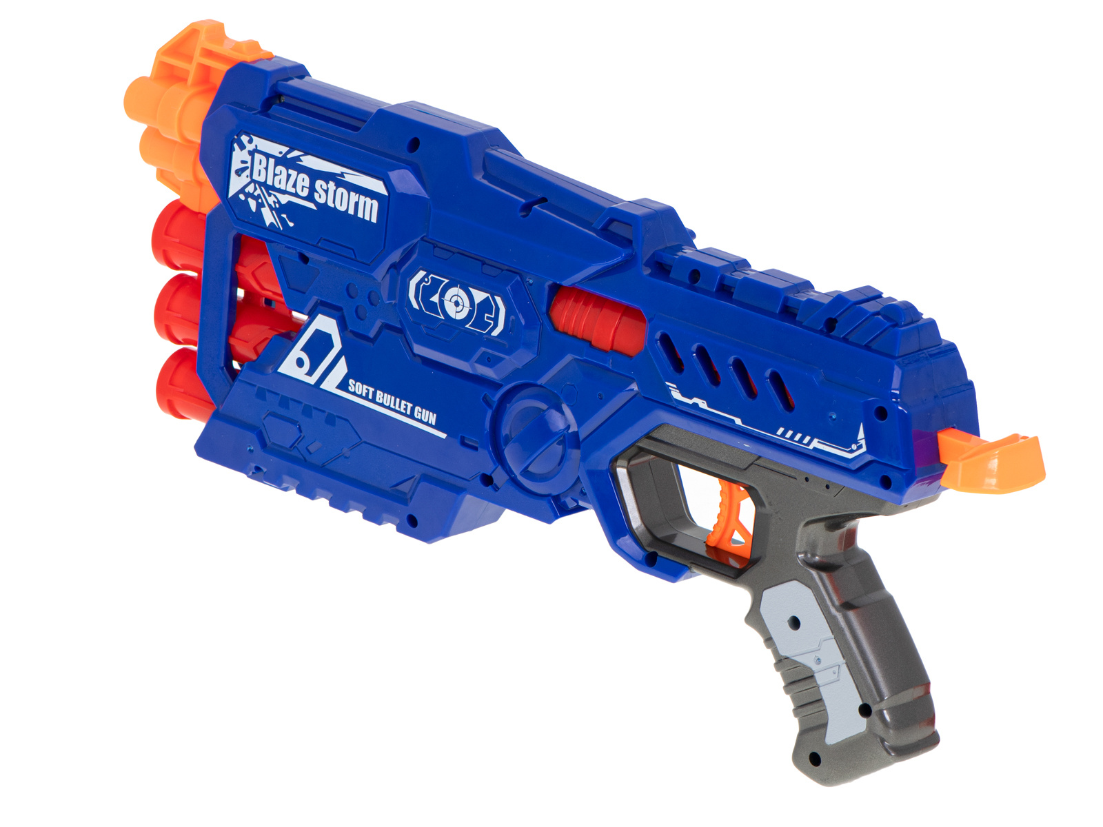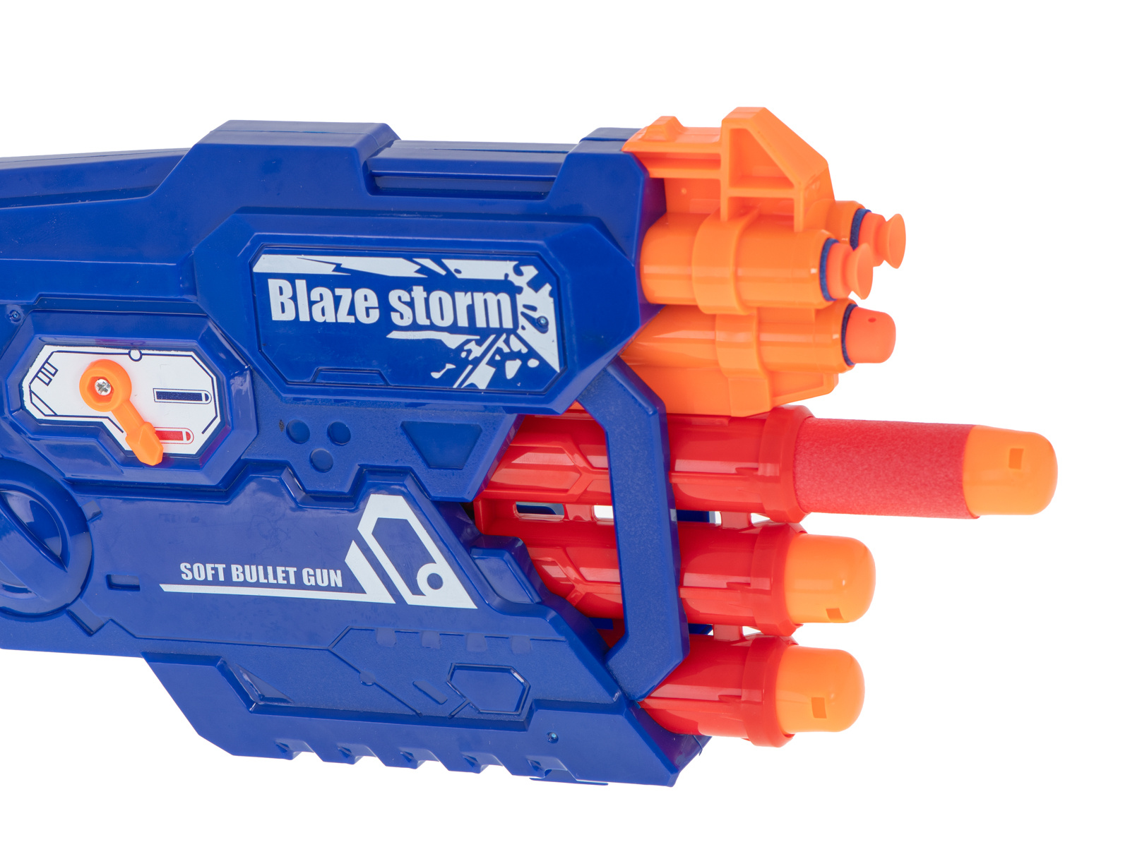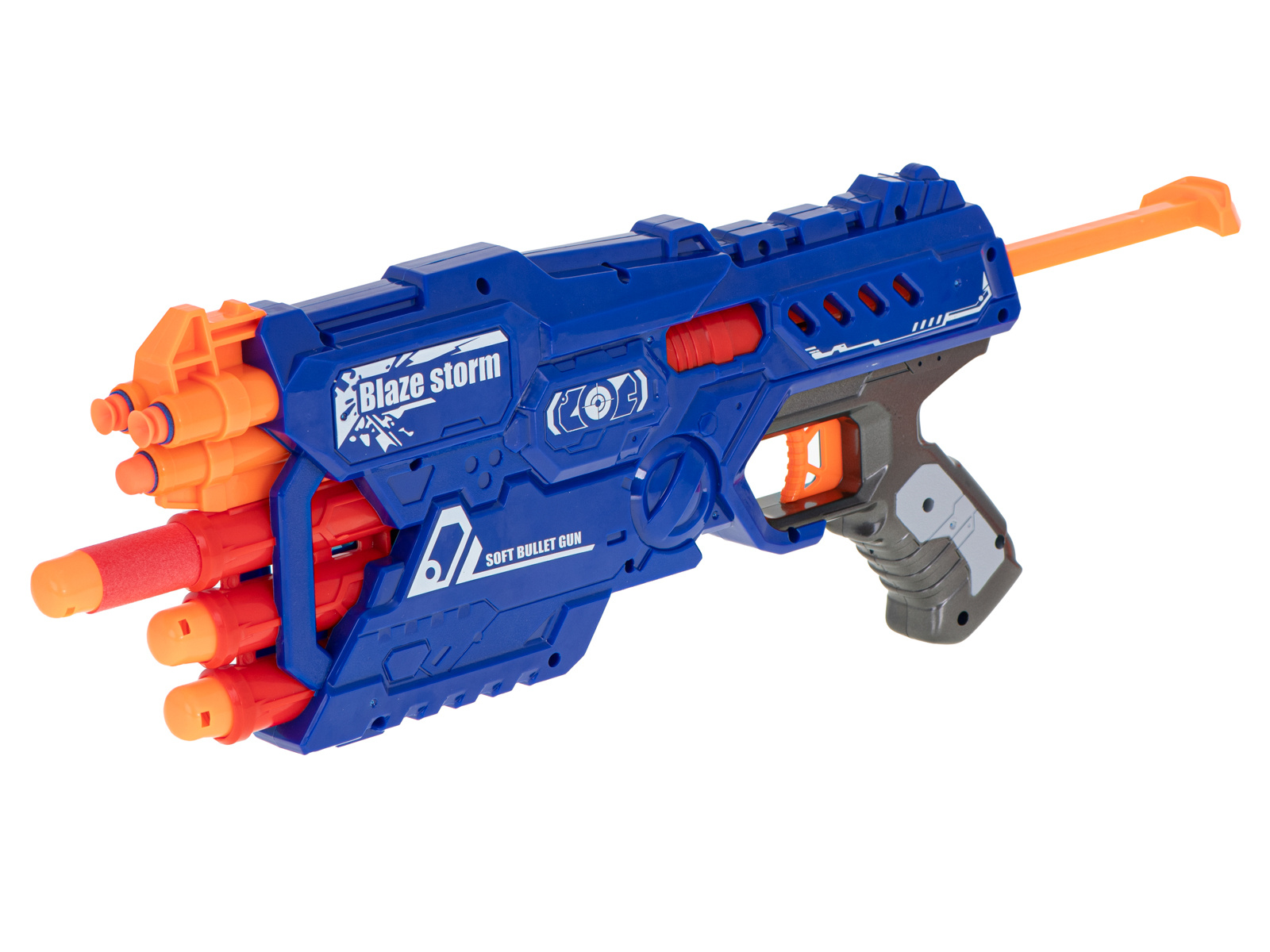 Fantastica pușcă BLAZE STORM echipată cu un încărcător cu șase focuri pentru 2 tipuri de gloanțe va fi arma perfectă pentru micul soldat.
