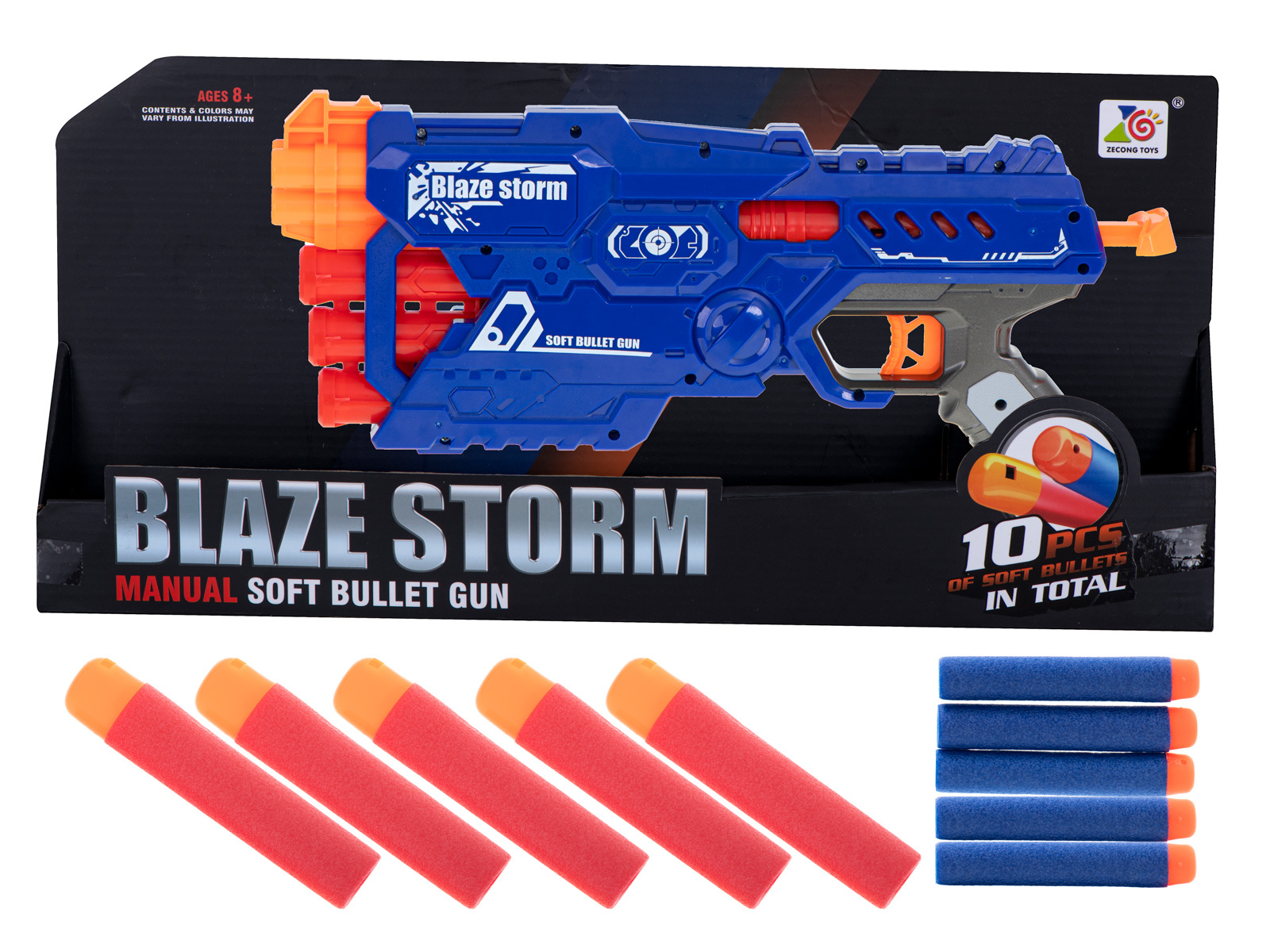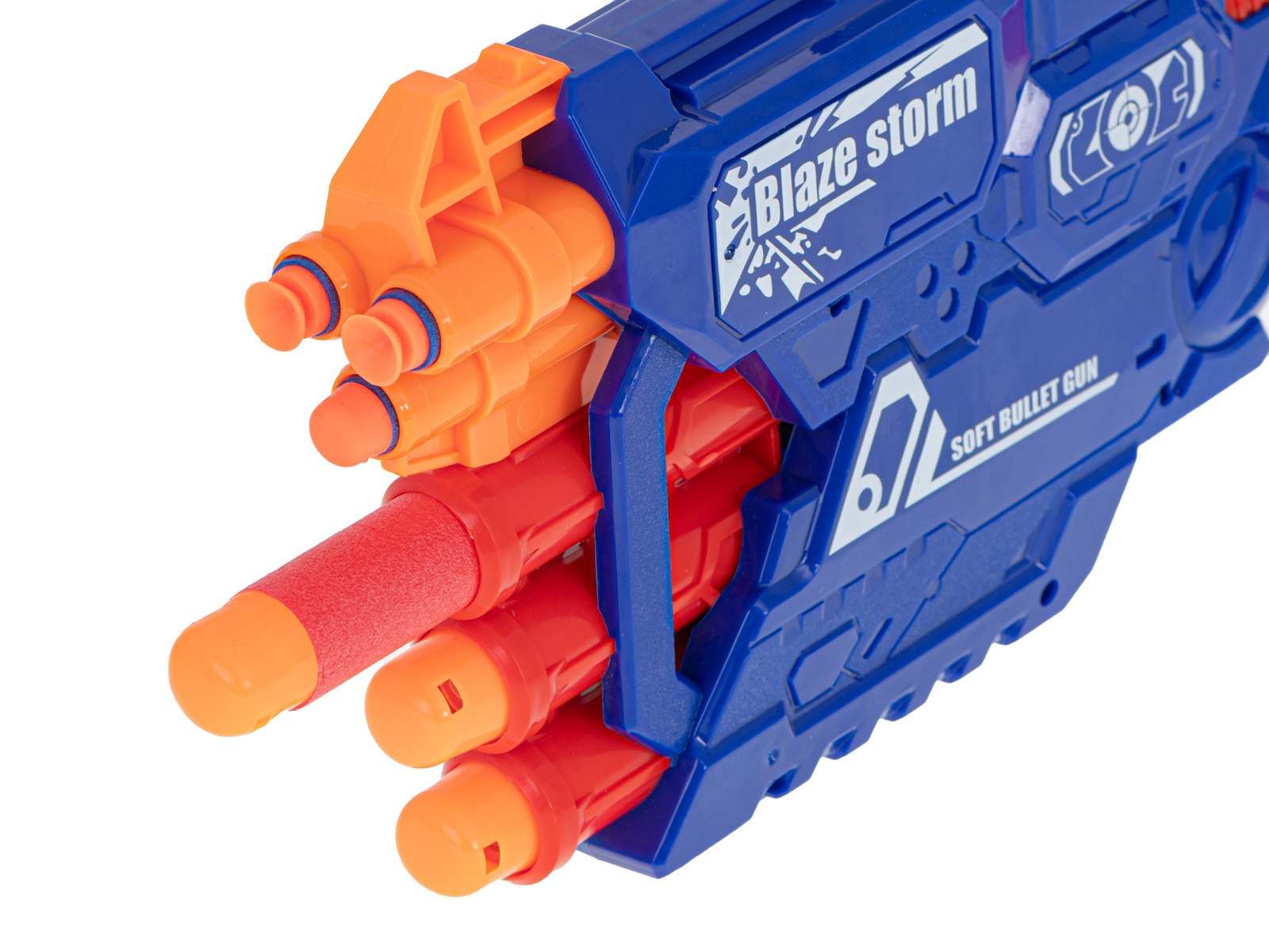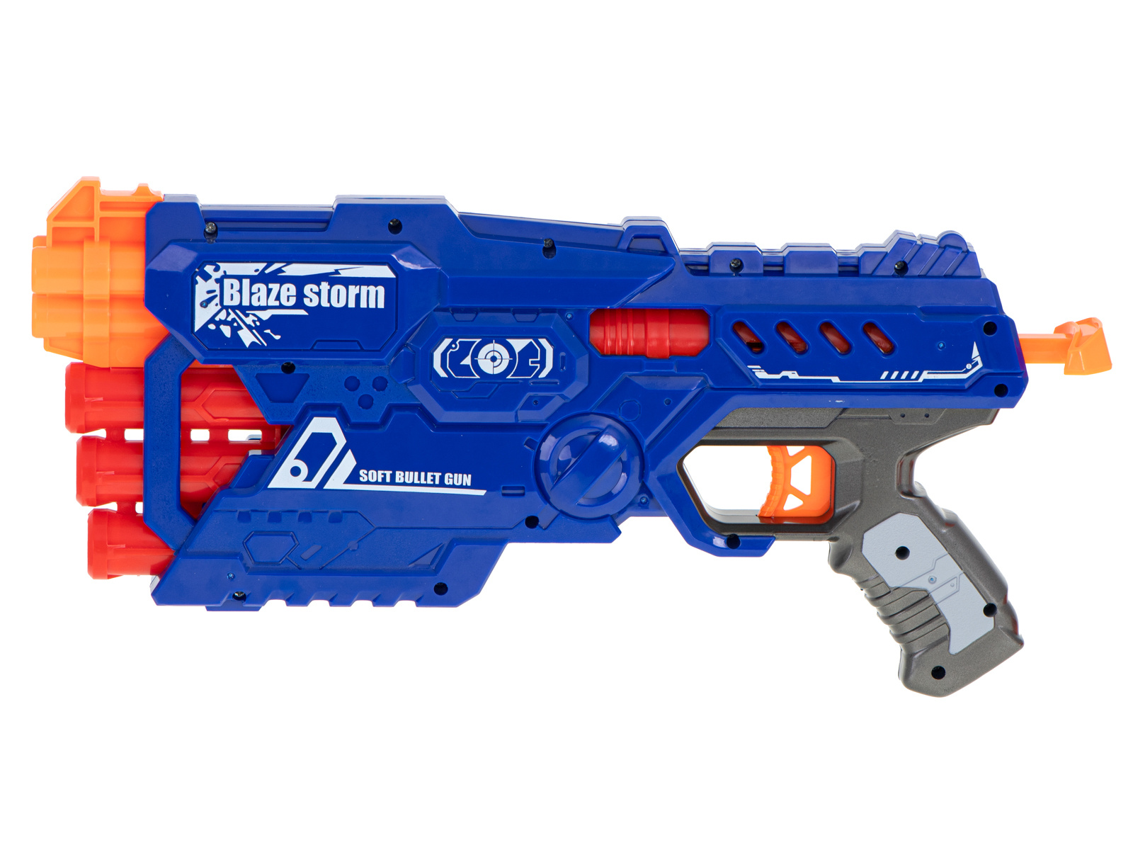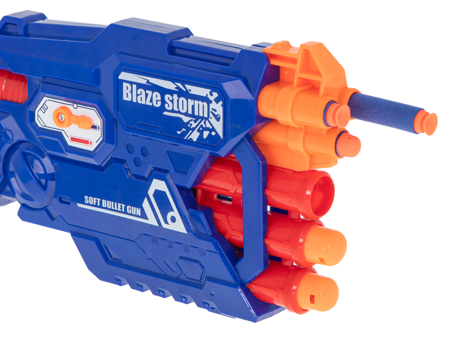 Fantastica pușcă BLAZE STORM echipată cu un încărcător cu șase focuri pentru 2 tipuri de gloanțe va fi arma perfectă pentru micul soldat.
