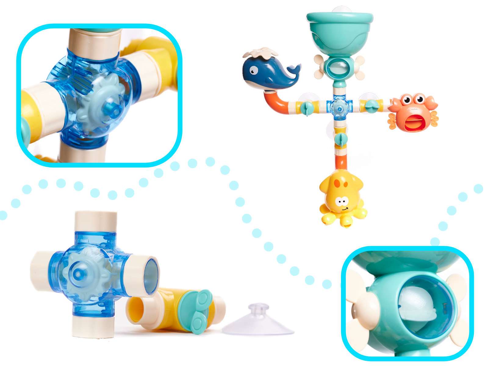 Jucăria multifuncțională colorată transformă fiecare baie într-o aventură fantastică.