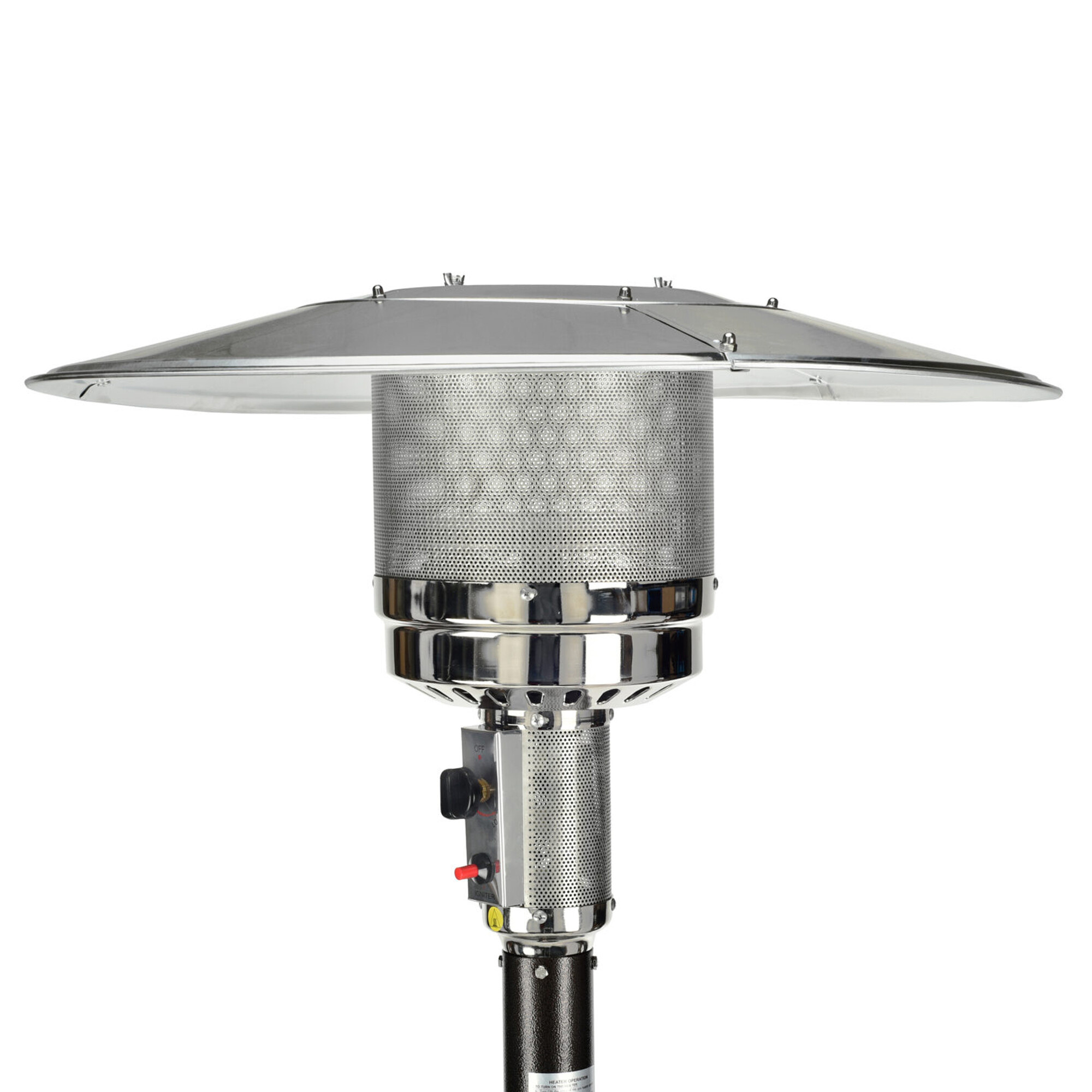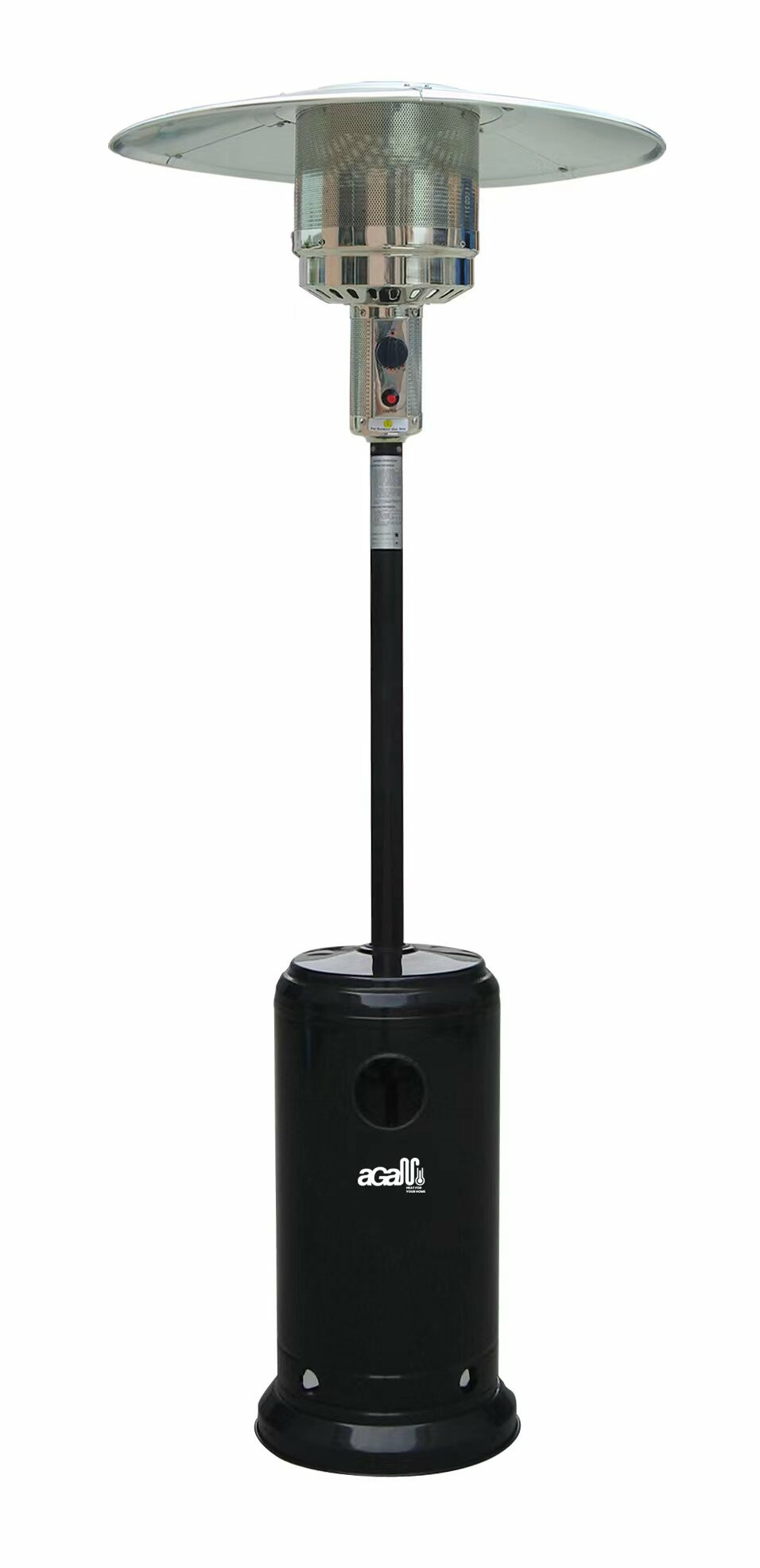 Controlul este simplu, trebuie doar să conectați radiatorul termic la o butelie de propan butan de 5 sau 10 kg, pentru care există un spațiu de depozitare în suportul încălzitorului. Apoi apăsați butonul de aprindere piezoelectrică mecanică și radiatorul termic exterior Aga începe să încălzească.
