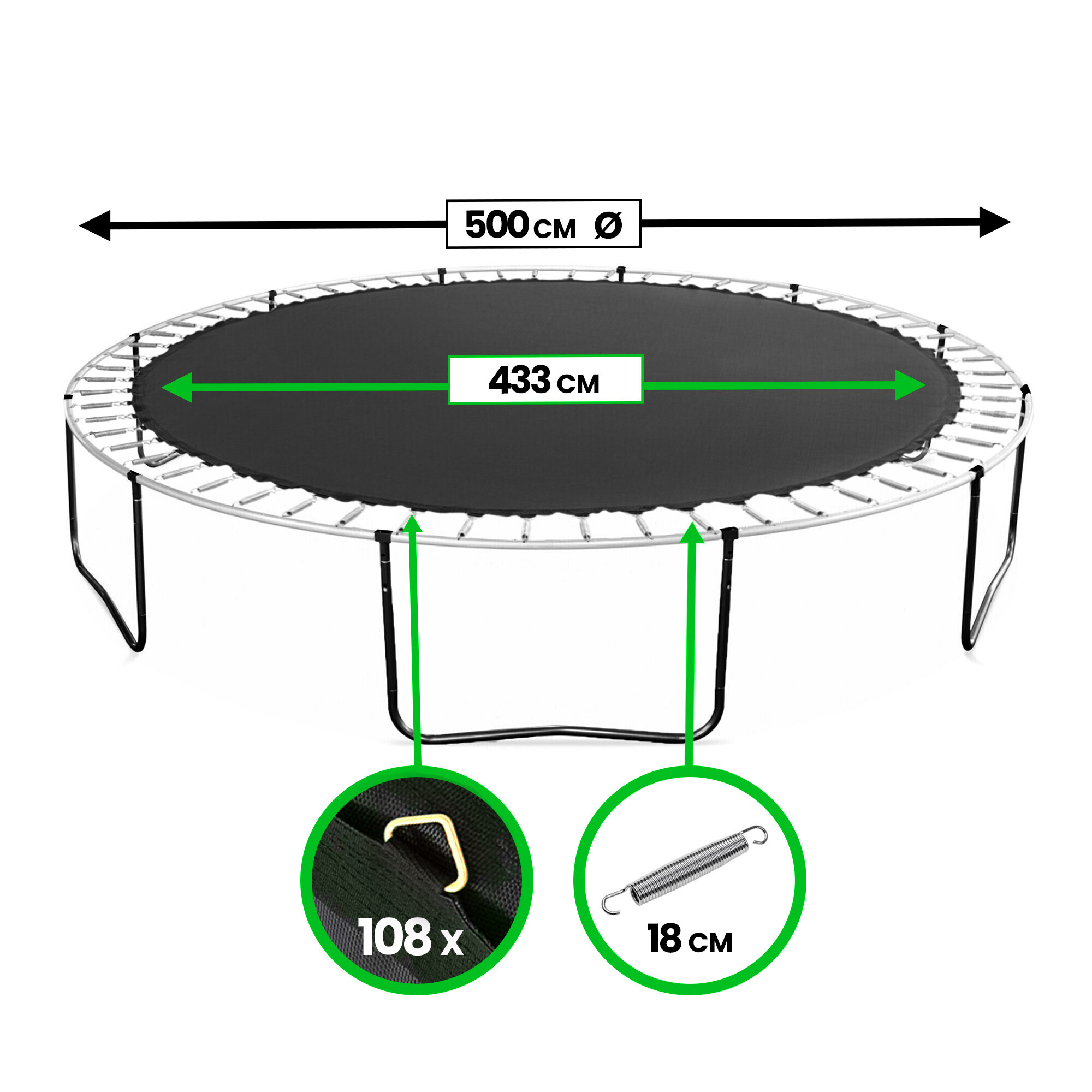 Este necesar doar să determinați numărul de ochiuri necesare pentru a fixa arcurile care întind suprafața de sărituri a trambulinei dumneavoastră și să respectați dimensiunea (mărimea) trambulinei.