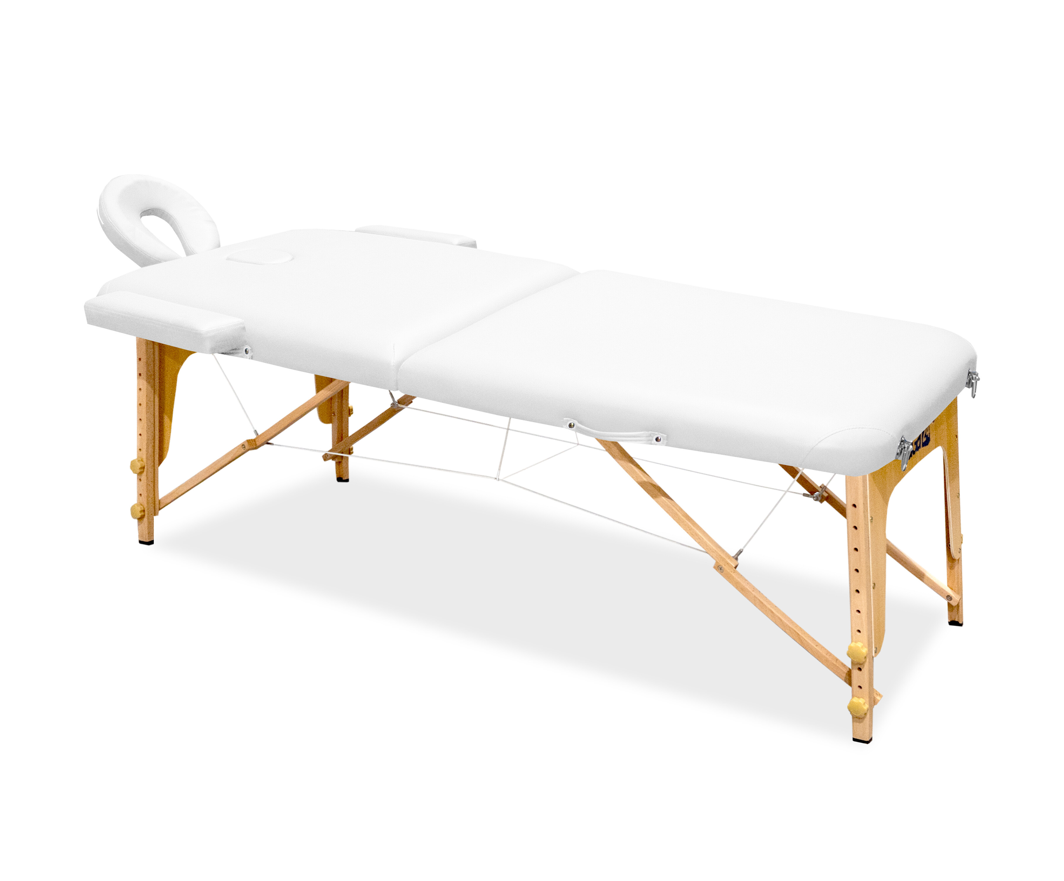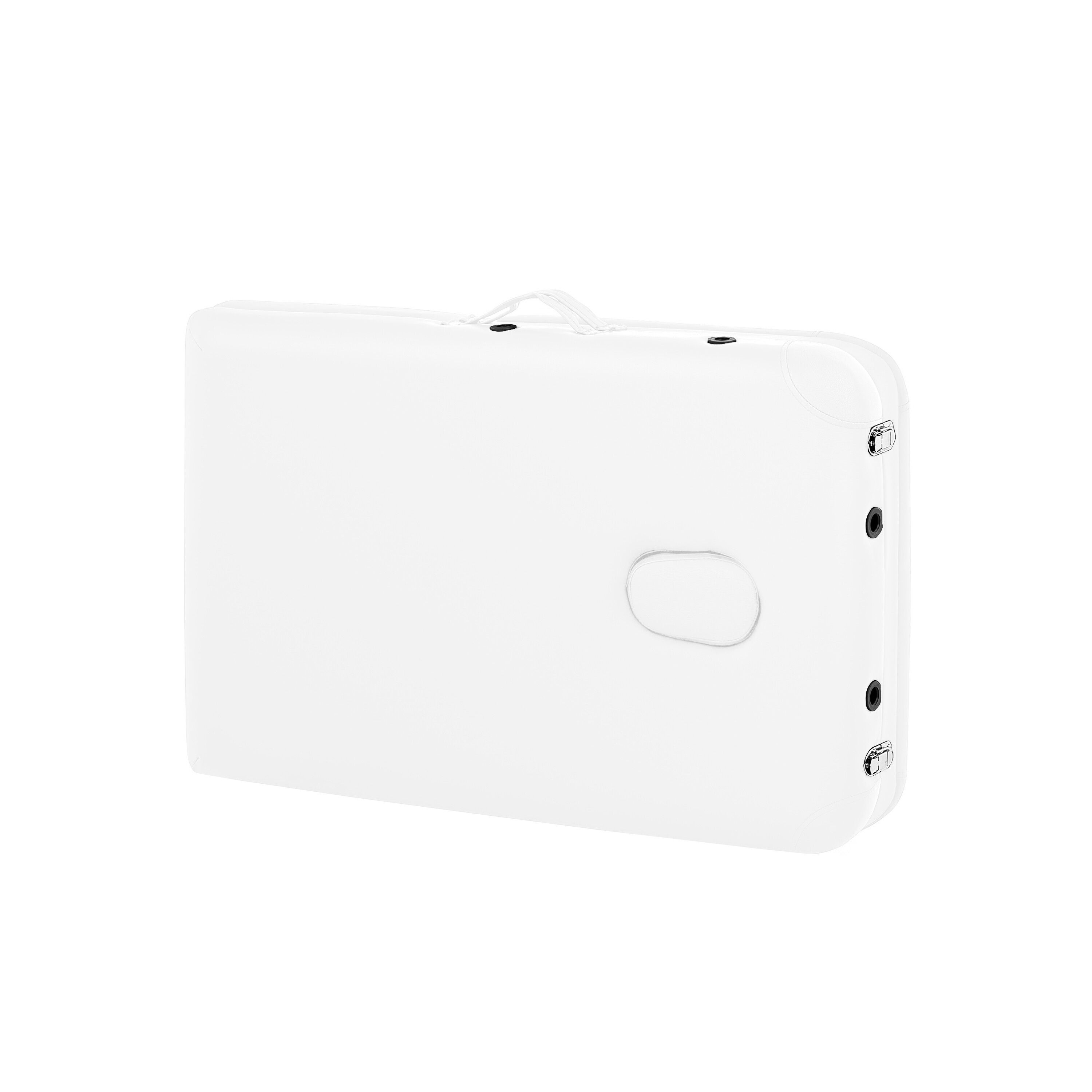 Un pat de masaj portabil foarte confortabil, din două piese, cu suport pentru cap, orificiu pentru față și suporturi pentru coate.Descriere completă
