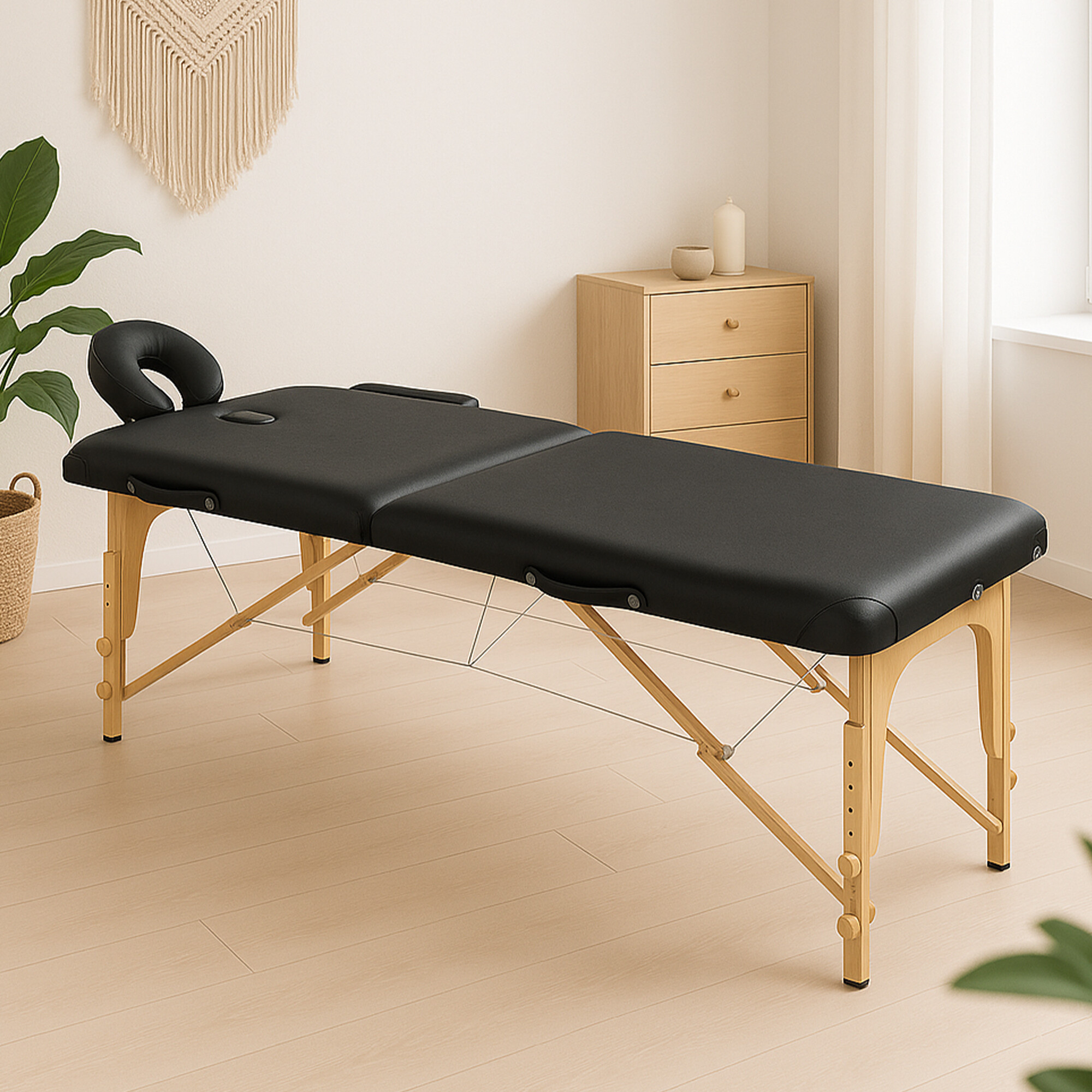 Foarte confortabil pat de masaj portabil din două piese cu suport pentru cap, orificiu pentru față, suporturi pentru coate.