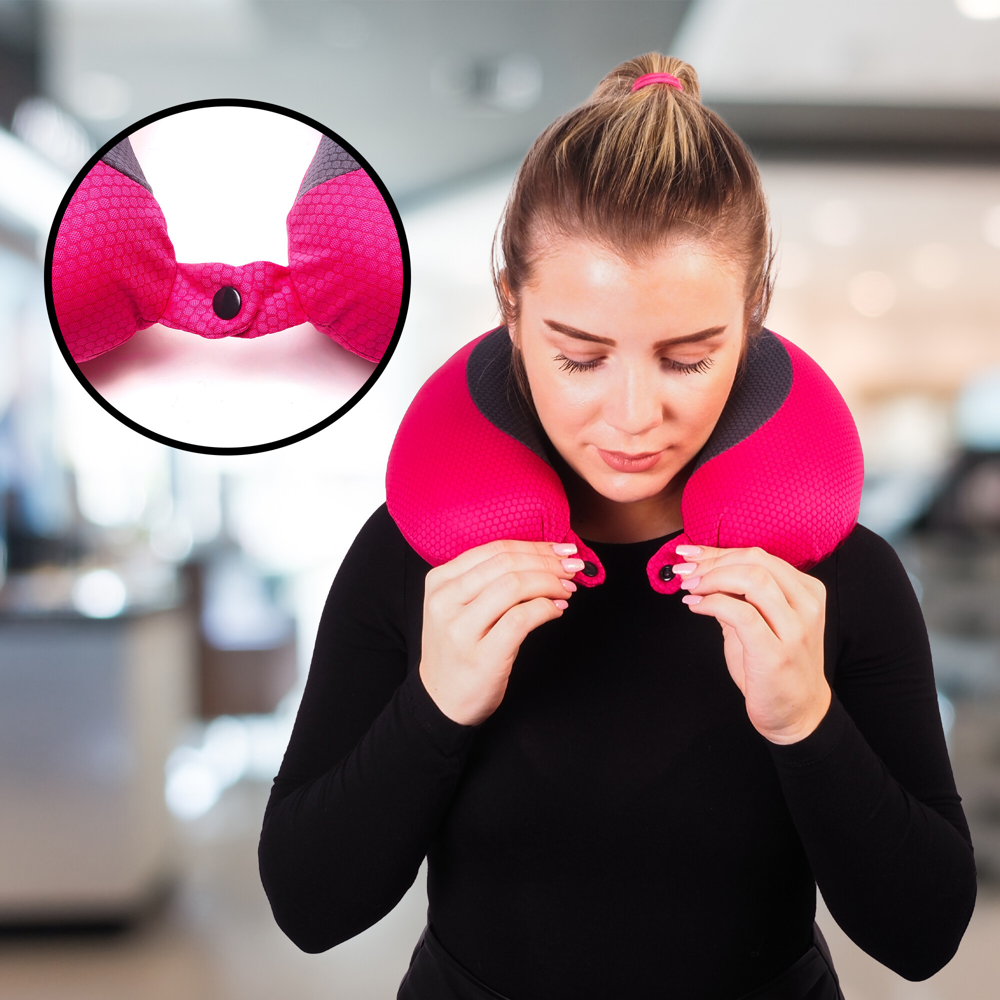 Designul ergonomic al pernei asigură că capul și gâtul dumneavoastră vor fi în poziția optimă, ceea ce ajută la prevenirea durerilor și rigidității. Indiferent dacă călătoriți pe distanțe scurte sau lungi, această pernă vă va oferi suportul și confortul necesar pentru a ajunge la destinație odihnit și revigorat.