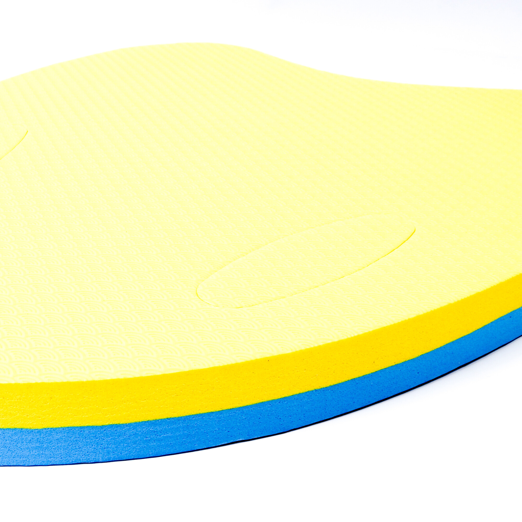 Placa de înot este fabricată din spumă eva de calitate, cunoscută pentru ușurința și durabilitatea sa. Acest material nu este doar plăcut la atingere, ci asigură și o durată lungă de viață a plăcii, chiar și în cazul utilizării frecvente. Datorită densității și elasticității sale, placa oferă o flotabilitate optimă, ceea ce facilitează înotul și îmbunătățește tehnica.