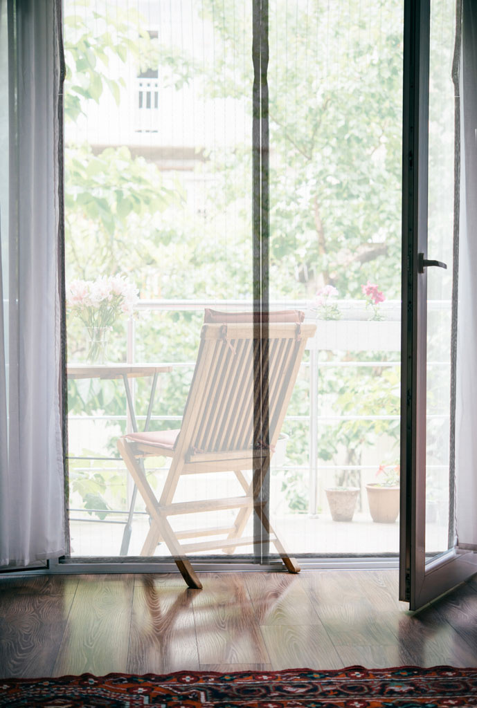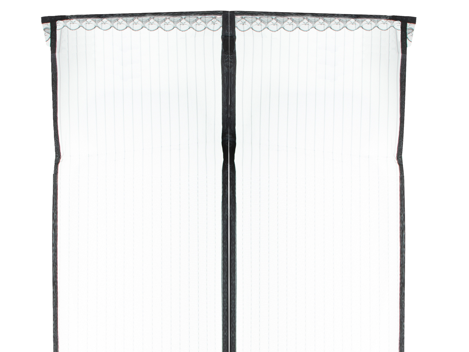 Plasa de țânțari este compusă din două părți. Este important ca părțile cu magneți să fie în mijloc - acest lucru asigură că plasa de țânțari se deschide și se închide automat la trecere.