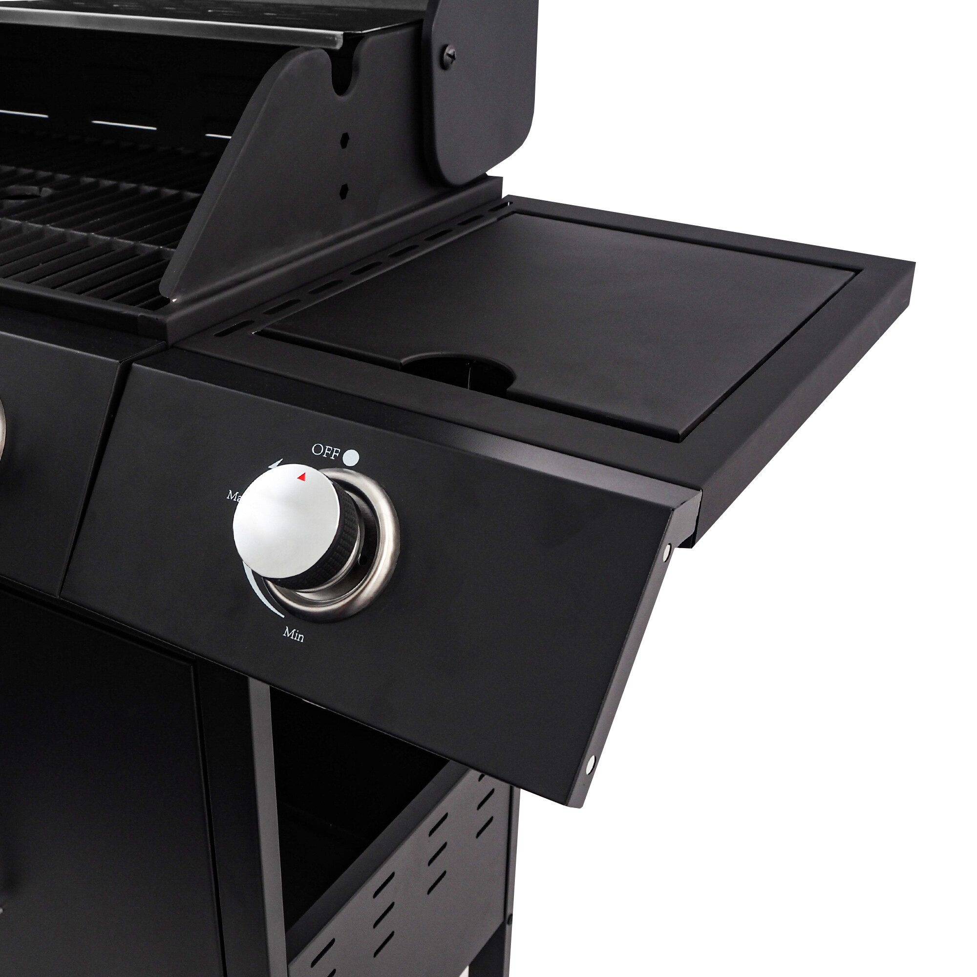 Grătarul este, de asemenea, echipat cu un arzător lateral încorporat, care este integrat în blatul de lucru - astfel puteți pregăti confortabil sosurile sau garniturile preferate în același timp cu grătarul. Capacul practic închis al arzătorului lateral permite utilizarea acestuia ca suprafață de lucru sau de depozitare atunci când este închis.