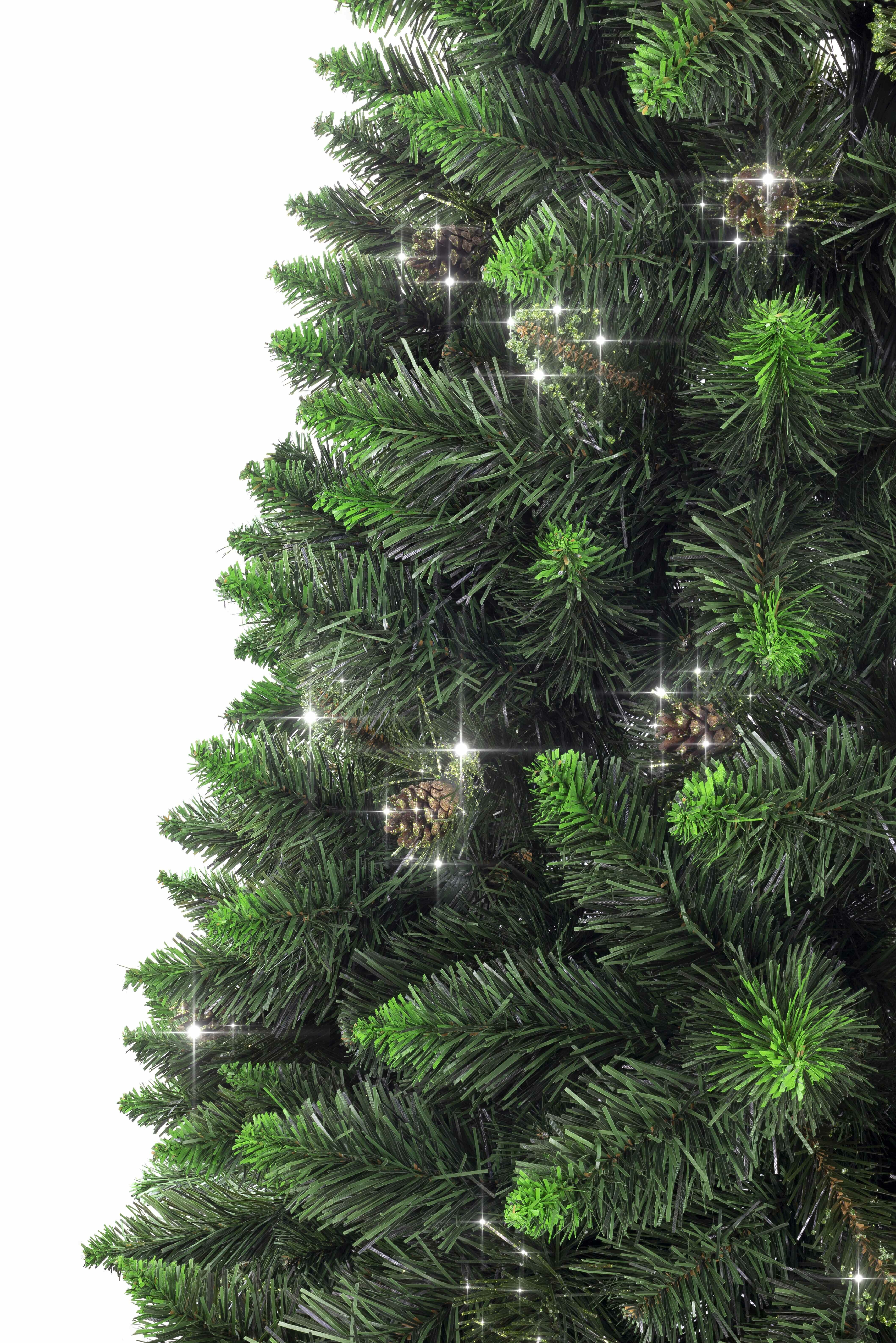 Pom de Crăciun artificial de lux cu o înălțime totală de 150 cm, având un aspect natural de pin verde dens și frumos, decorat cu sclipici verzi.
