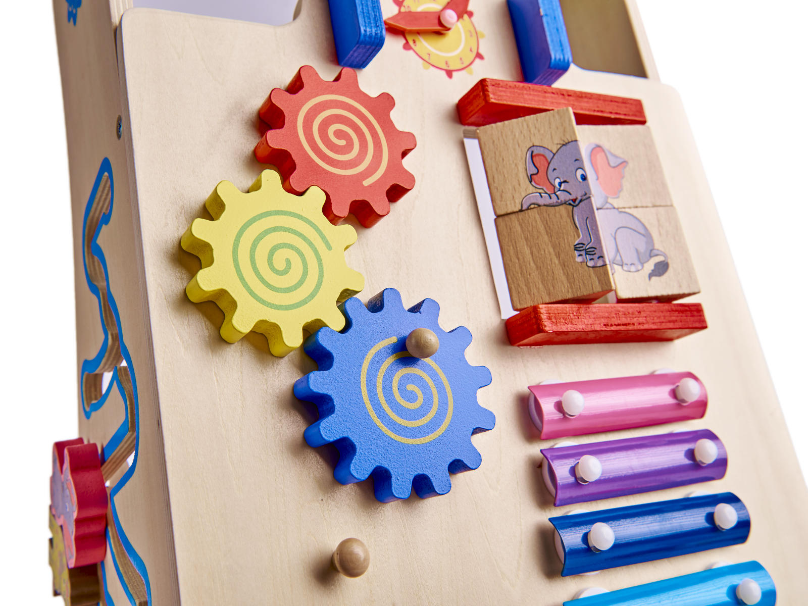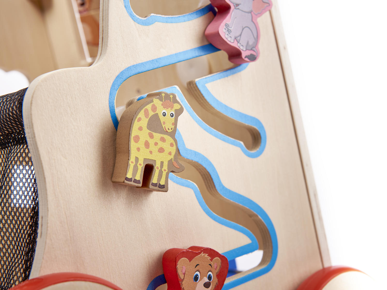 Datorită bazei neutre din lemn, jucăria nu oferă copilului stimuli excesivi.Toate piesele au fost șlefuite cu grijă pentru a proteja mâinile mici de așchii.
