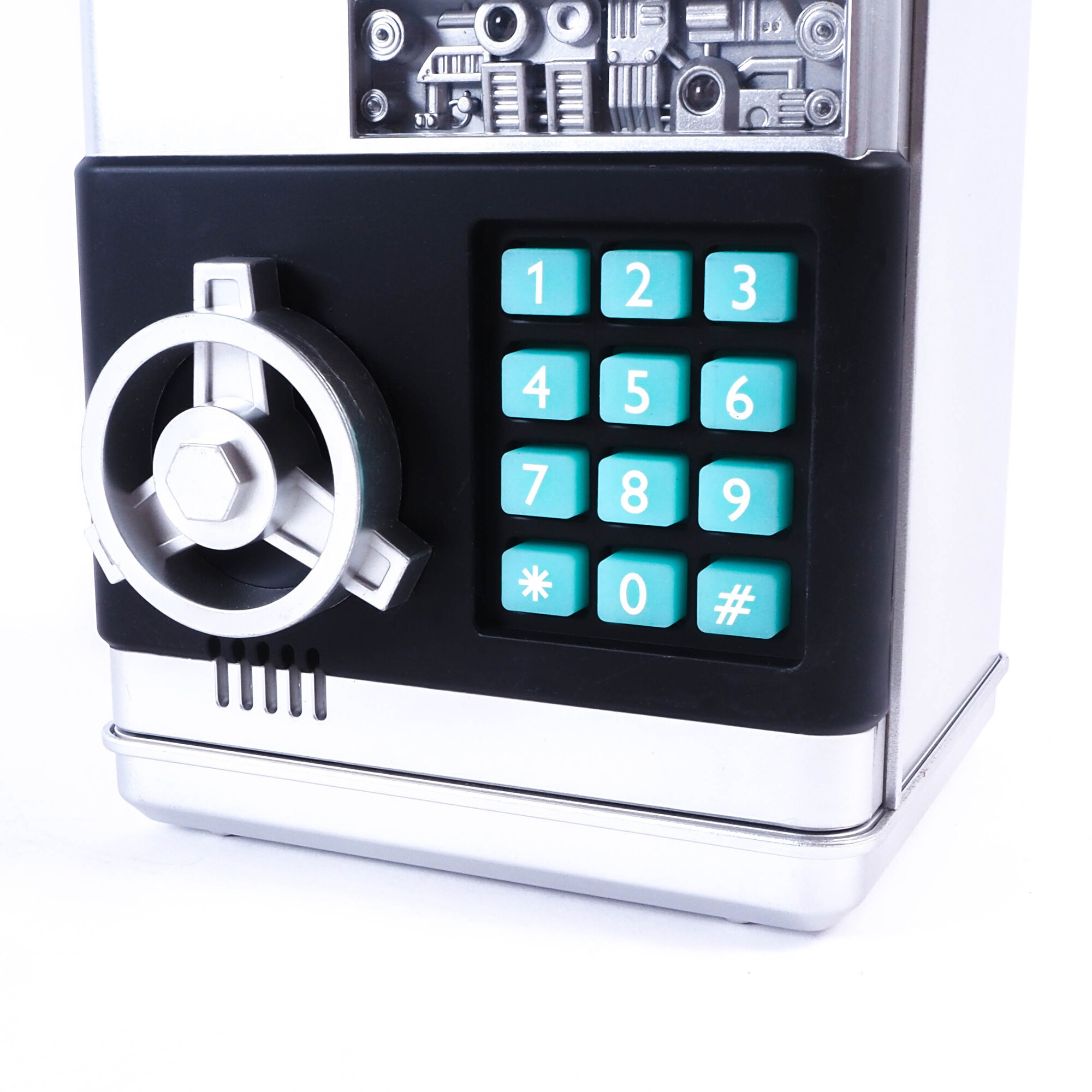 Această pușculiță nu este doar o cutie obișnuită pentru bani. Este un seif real care se deschide după introducerea unui cod PIN din 4 cifre. Copiii își pot astfel seta propria parolă și își pot proteja economiile de mâinile curioase. Și mai mult, după 20 de secunde, seiful vă va reaminti că ușile sunt deschise, așa că nu trebuie să vă faceți griji că copilul dumneavoastră ar uita să închidă pușculița.