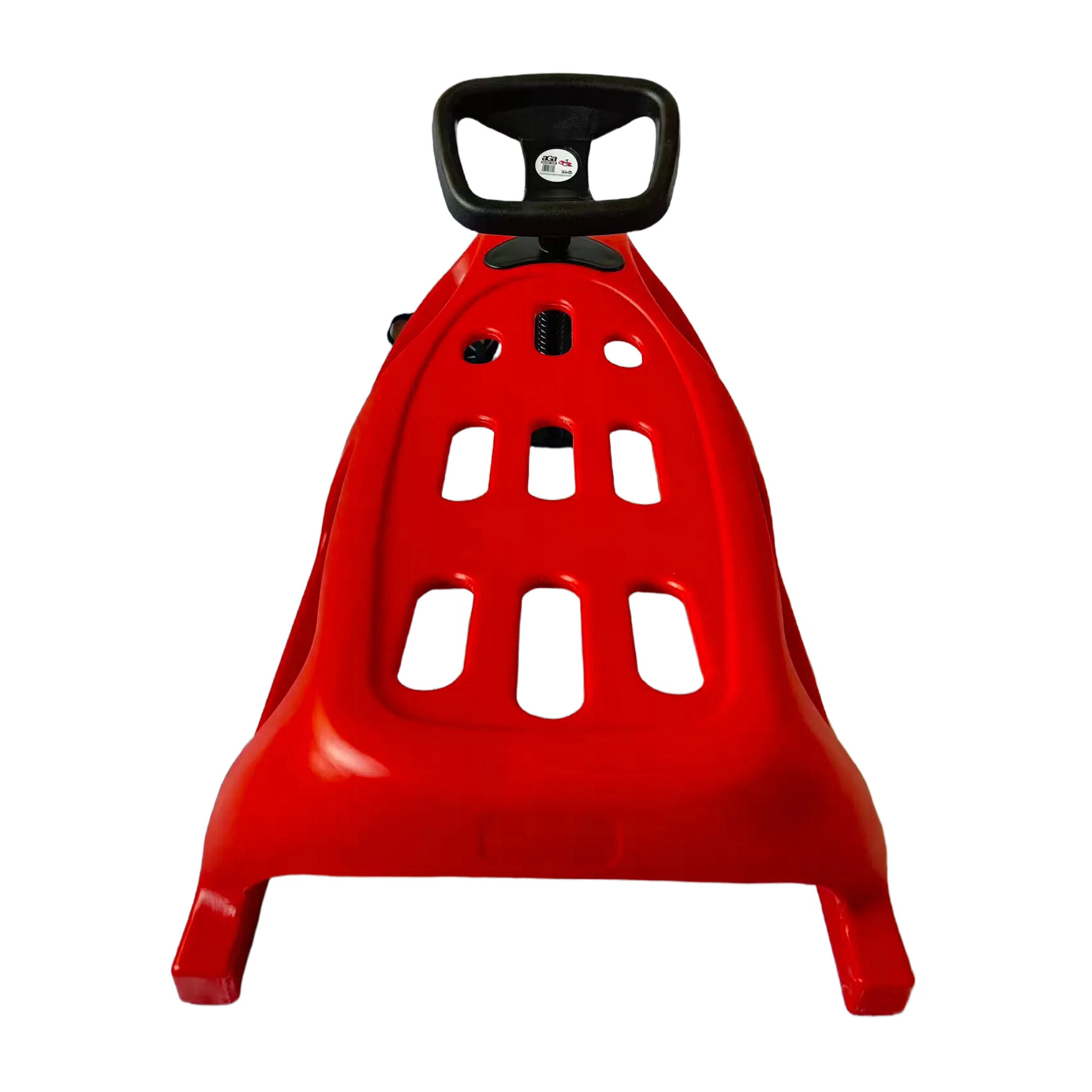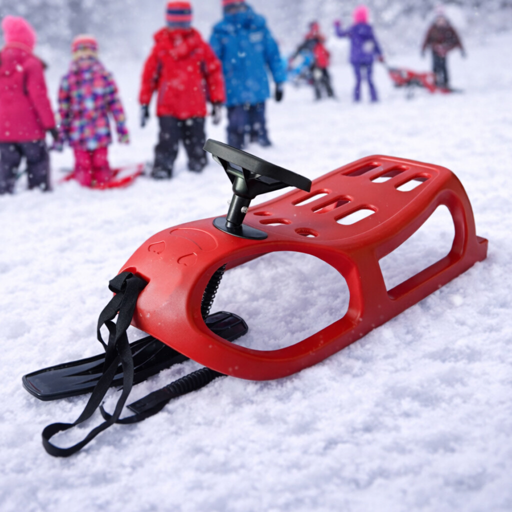 Săniile sunt fabricate din plastic de înaltă rezistență și sunt echipate cu tălpi de oțel, care asigură o alunecare perfectă pe zăpadă.Săniile se manevrează ușor datorită șinei de ghidare centrale care este controlabilă cu volanul.