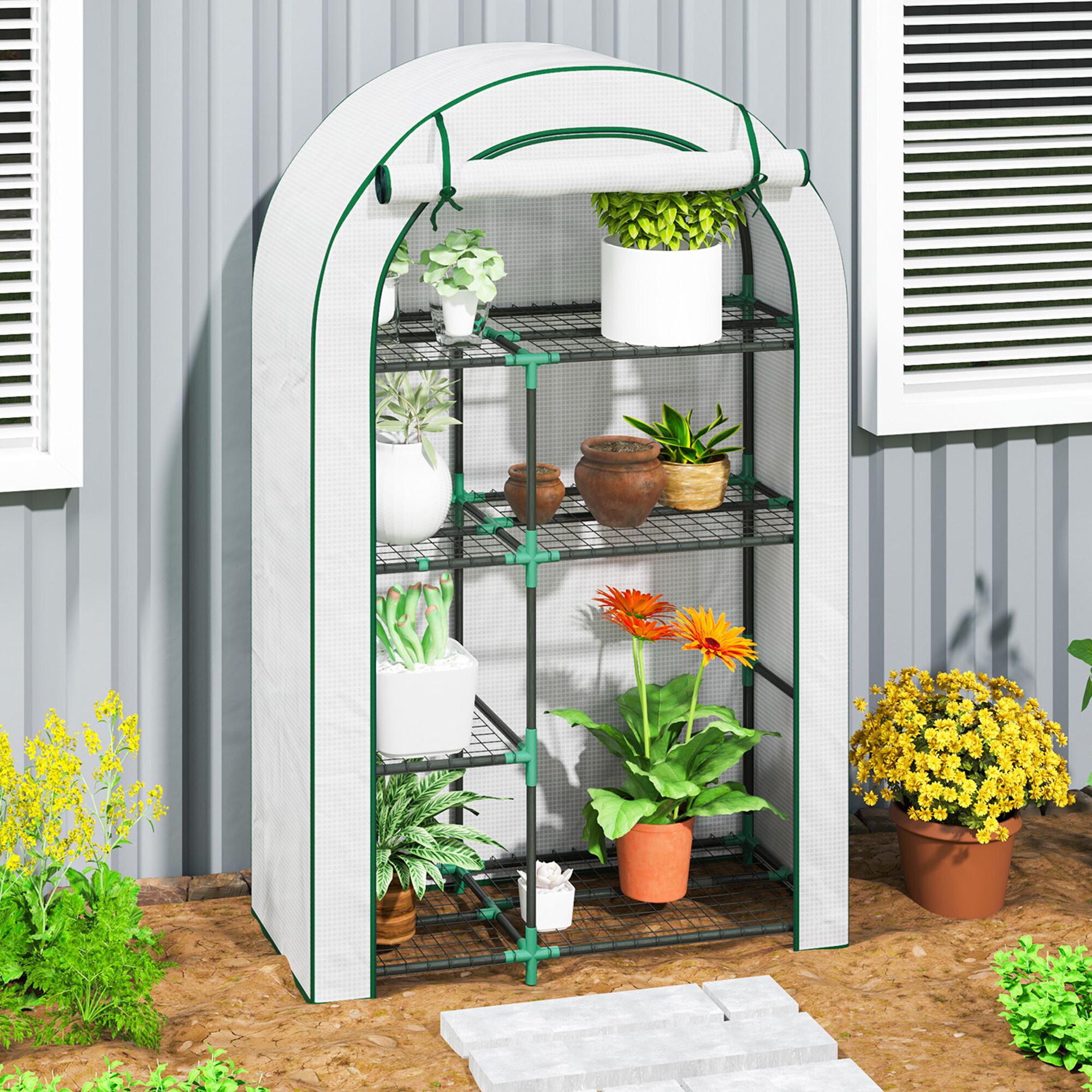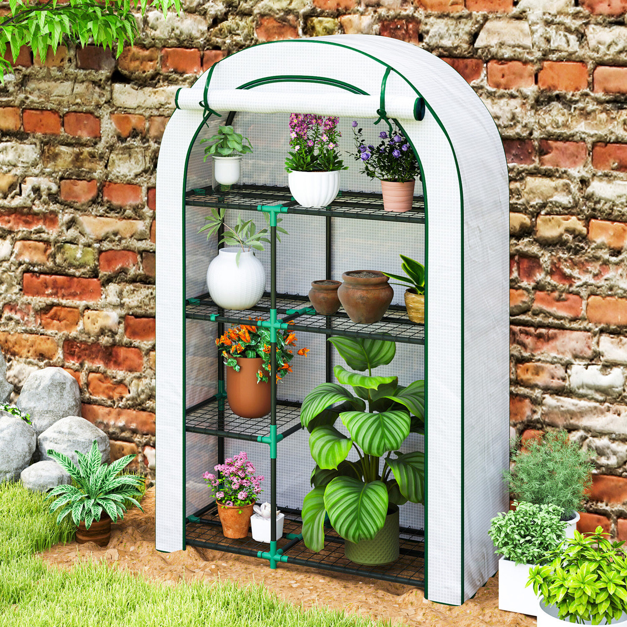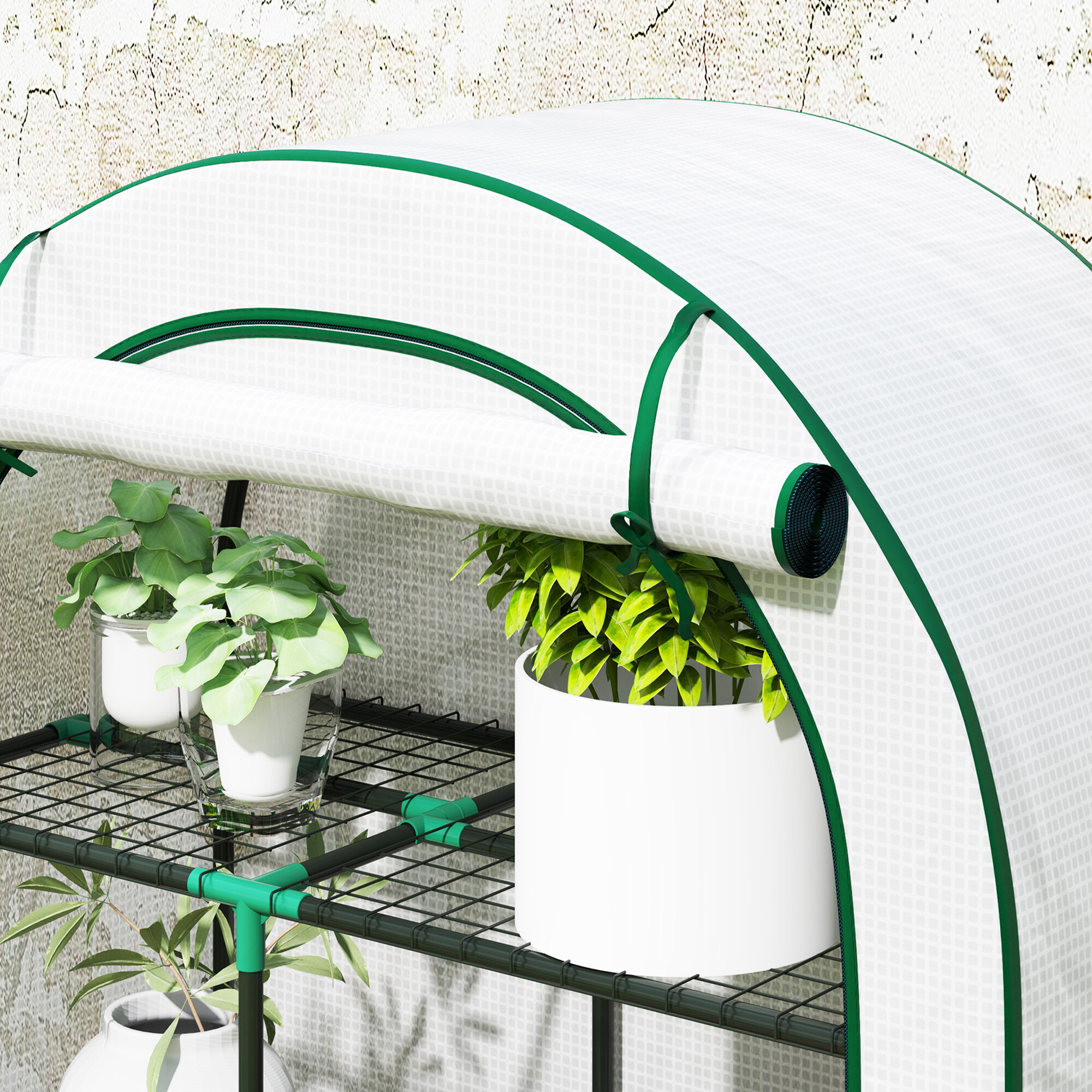 Seră este echipată cu patru rafturi și are, de asemenea, uși rulante.