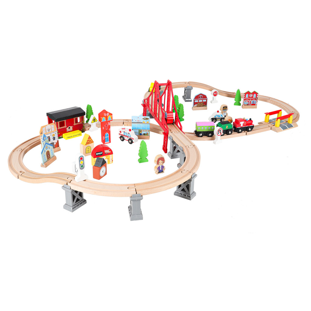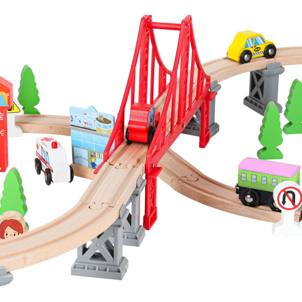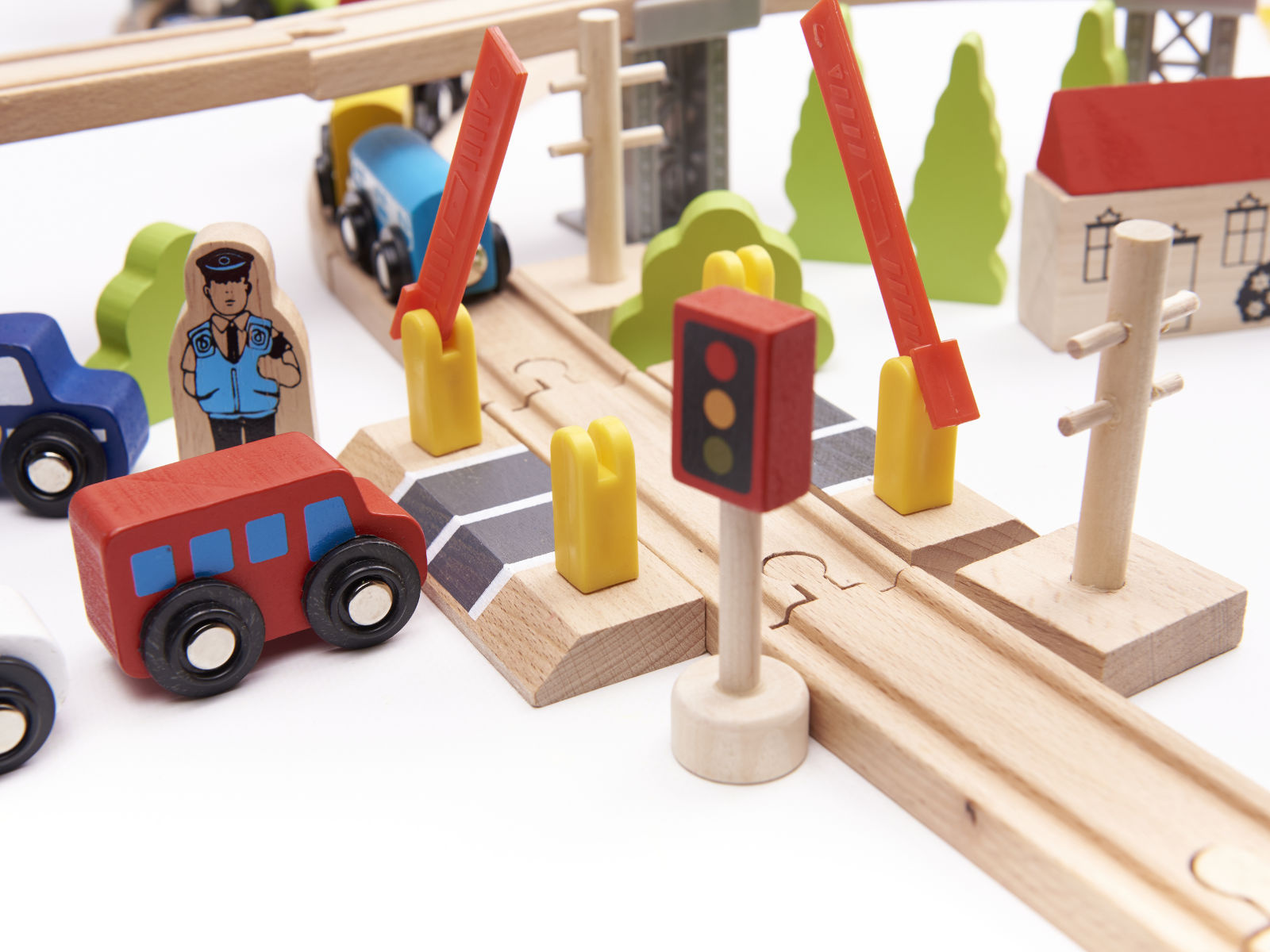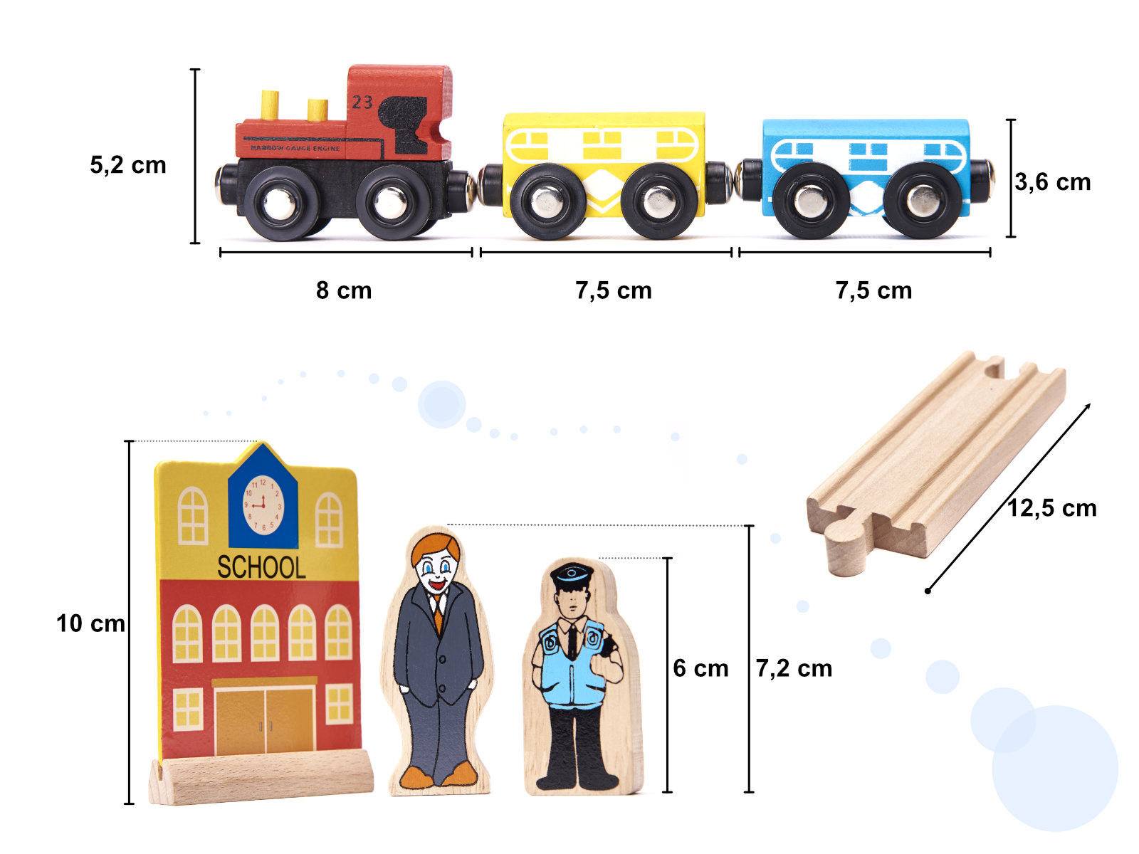 Jucăriile din lemn, care i-au încântat pe adulții de astăzi, revin în popularitate într-o formă reîmprospătată. Este pregătit să ofere copiilor de astăzi ore de distracție creativă și părinților o întoarcere nostalgică în trecut. Calea ferată din lemn este o adevărată experiență pentru cei mici! Elemente colorate din care iau naștere peisaje extraordinare. Set bogat - până la 70 de elemente! - oferă posibilități creative practic nelimitate.