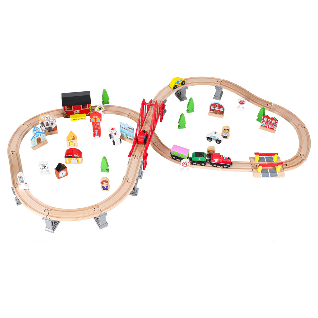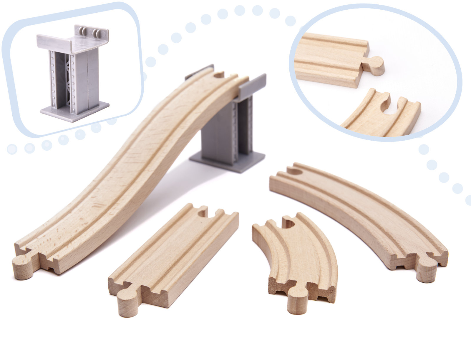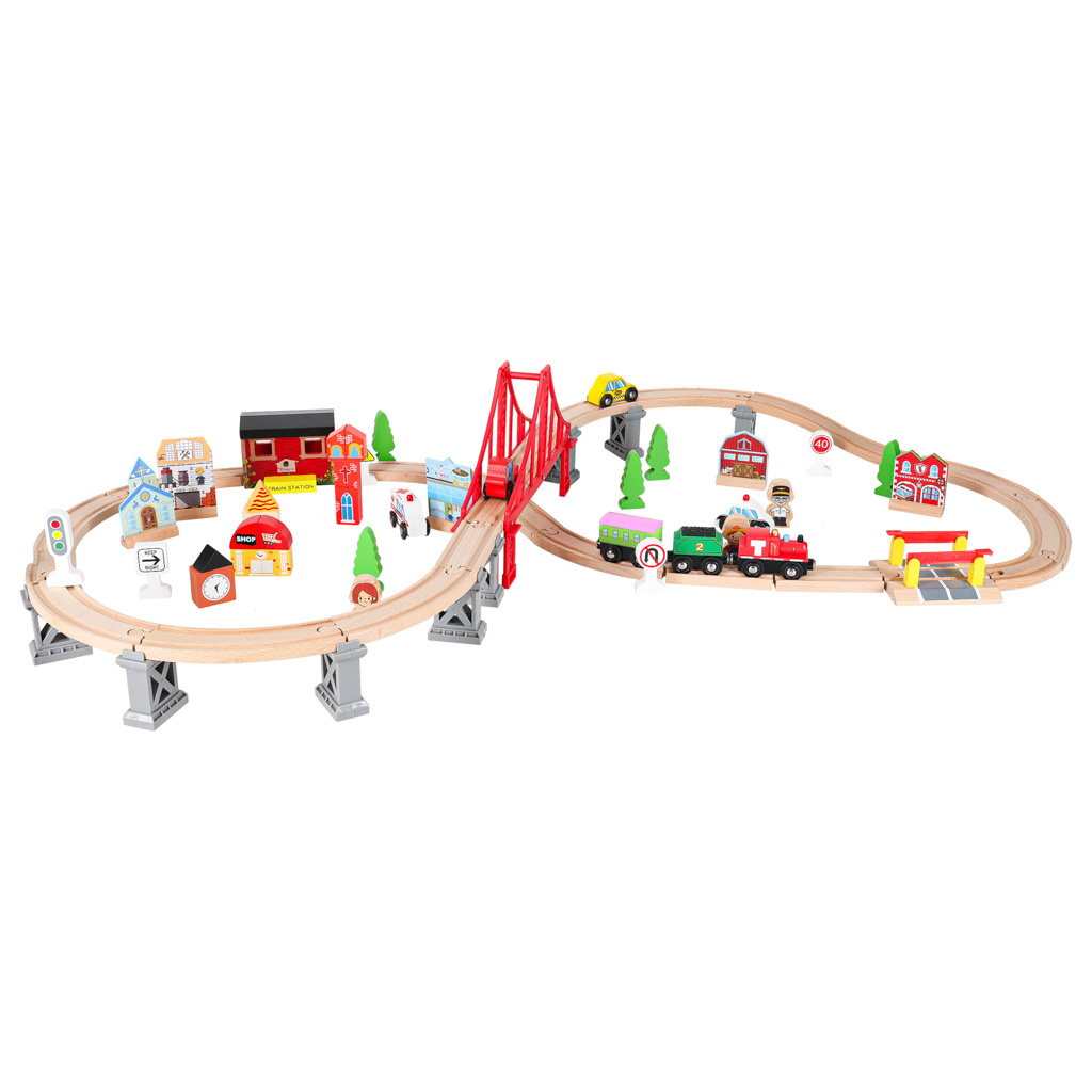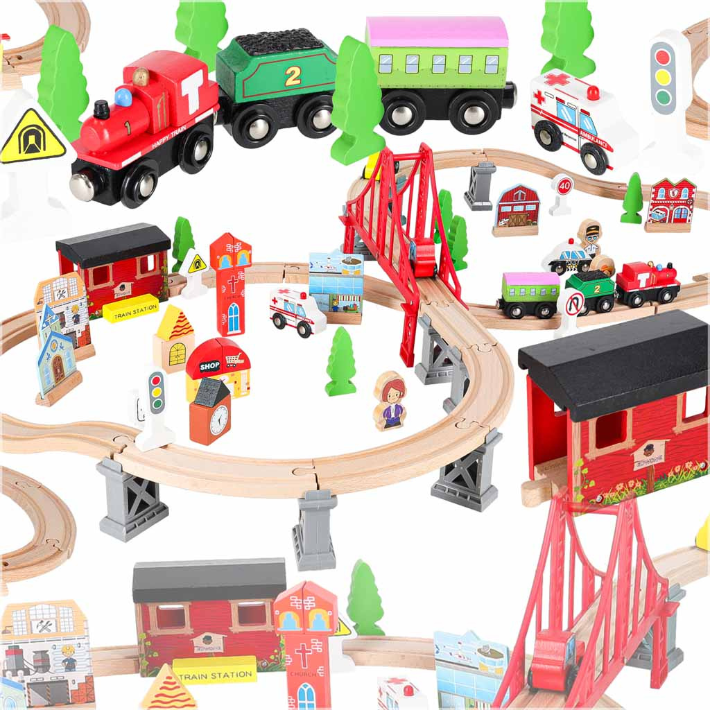 Jucăriile din lemn, care i-au încântat pe adulții de astăzi, revin în popularitate într-o formă reîmprospătată. Este pregătit să ofere copiilor de astăzi ore de distracție creativă și părinților o întoarcere nostalgică în trecut. Calea ferată din lemn este o adevărată experiență pentru cei mici! Elemente colorate din care iau naștere peisaje extraordinare. Set bogat - până la 70 de elemente! - oferă posibilități creative practic nelimitate.