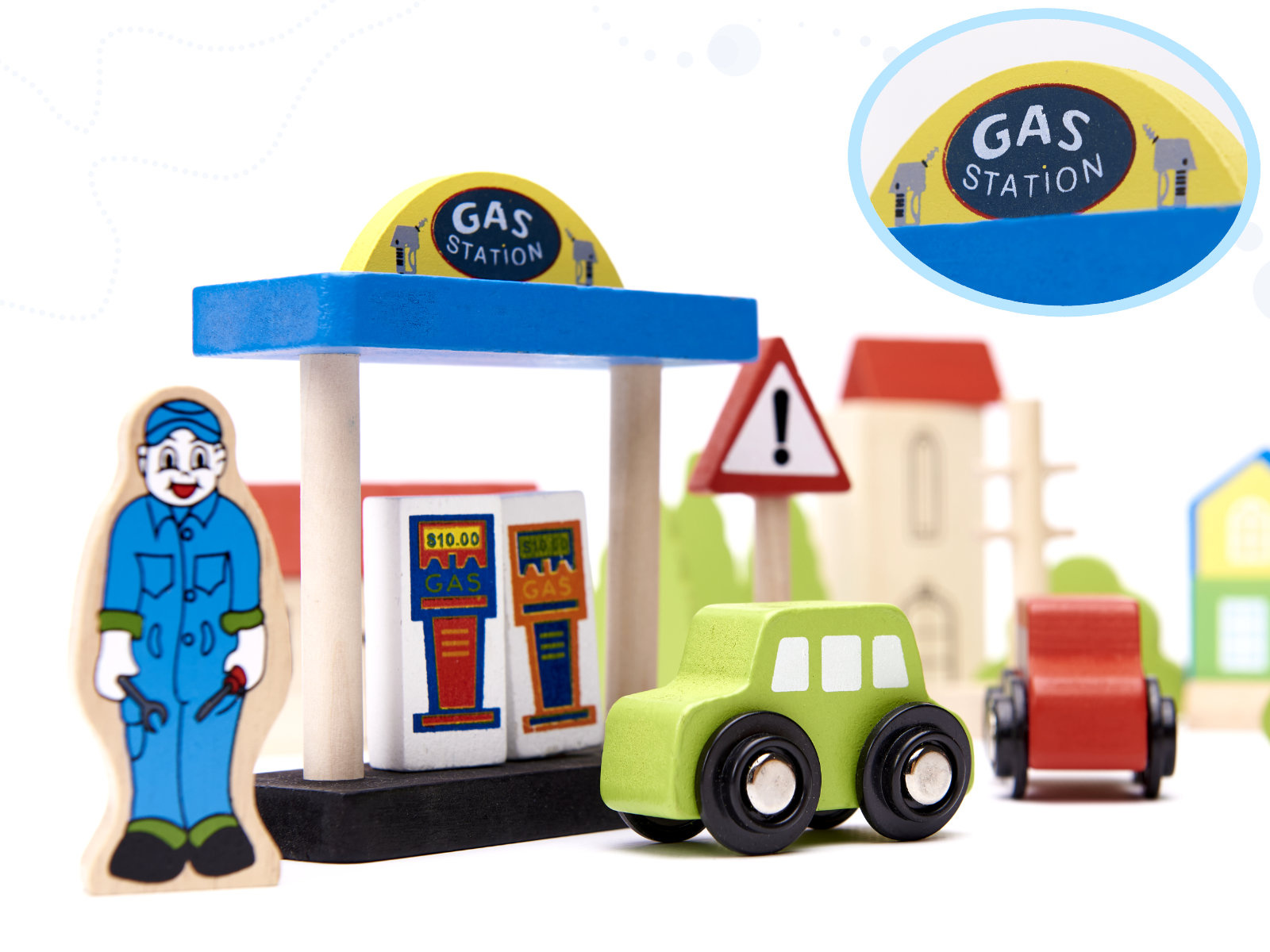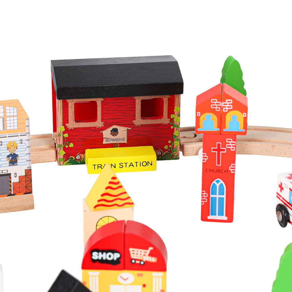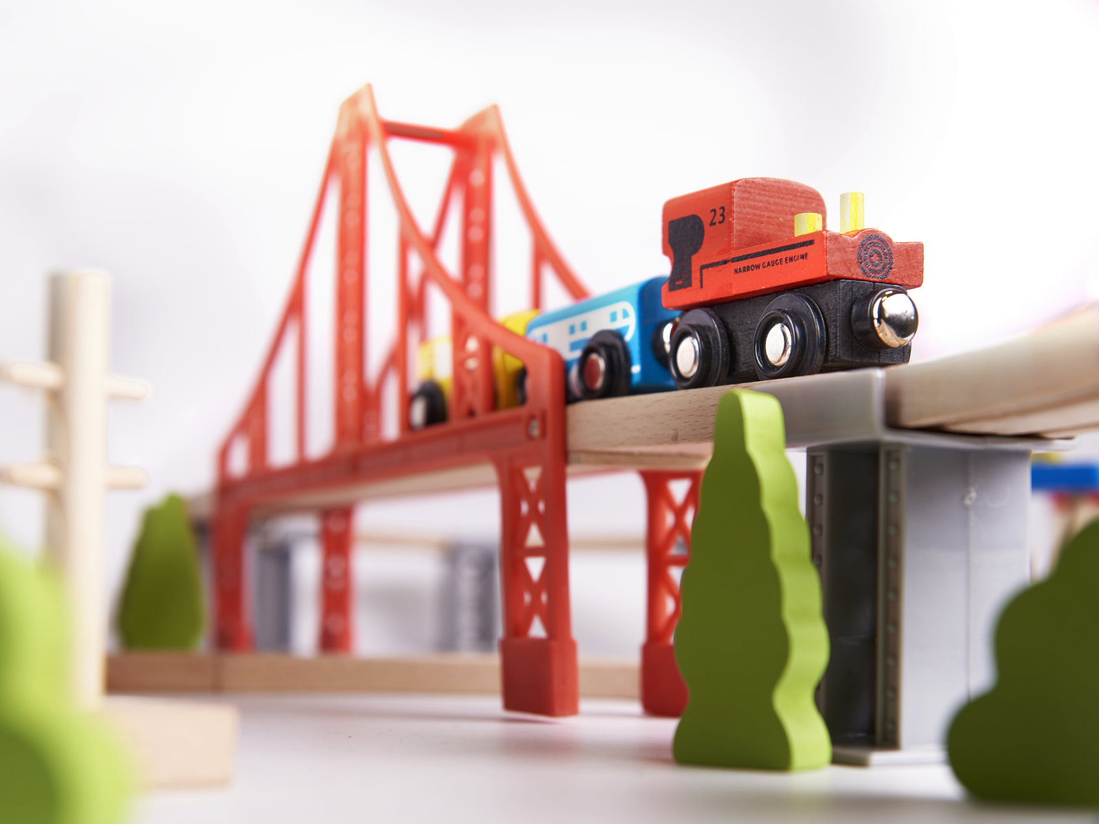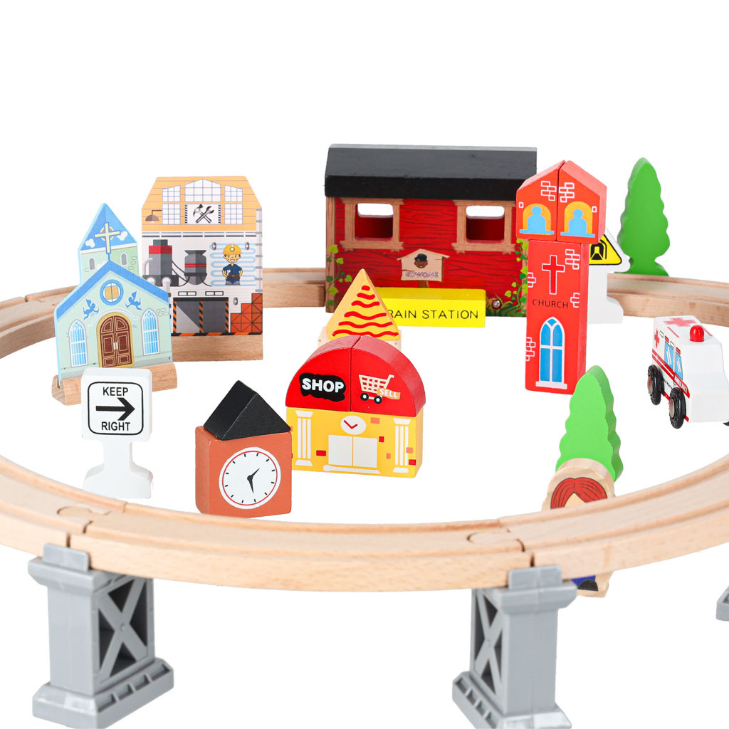 Jucăriile din lemn, care i-au încântat pe adulții de astăzi, revin în popularitate într-o formă reîmprospătată. Este pregătit să ofere copiilor de astăzi ore de distracție creativă și părinților o întoarcere nostalgică în trecut. Calea ferată din lemn este o adevărată experiență pentru cei mici! Elemente colorate din care iau naștere peisaje extraordinare. Set bogat - până la 70 de elemente! - oferă posibilități creative practic nelimitate.